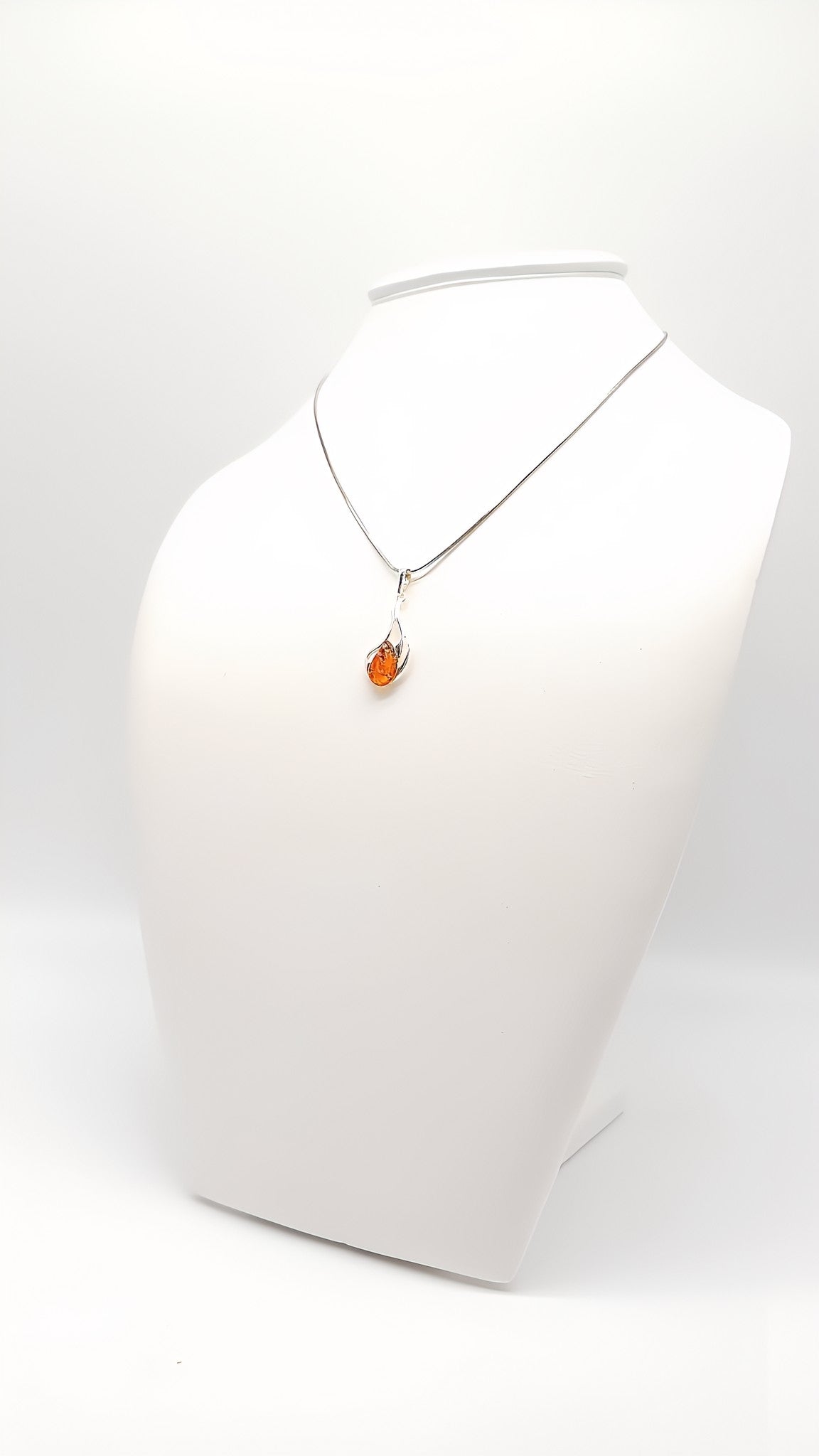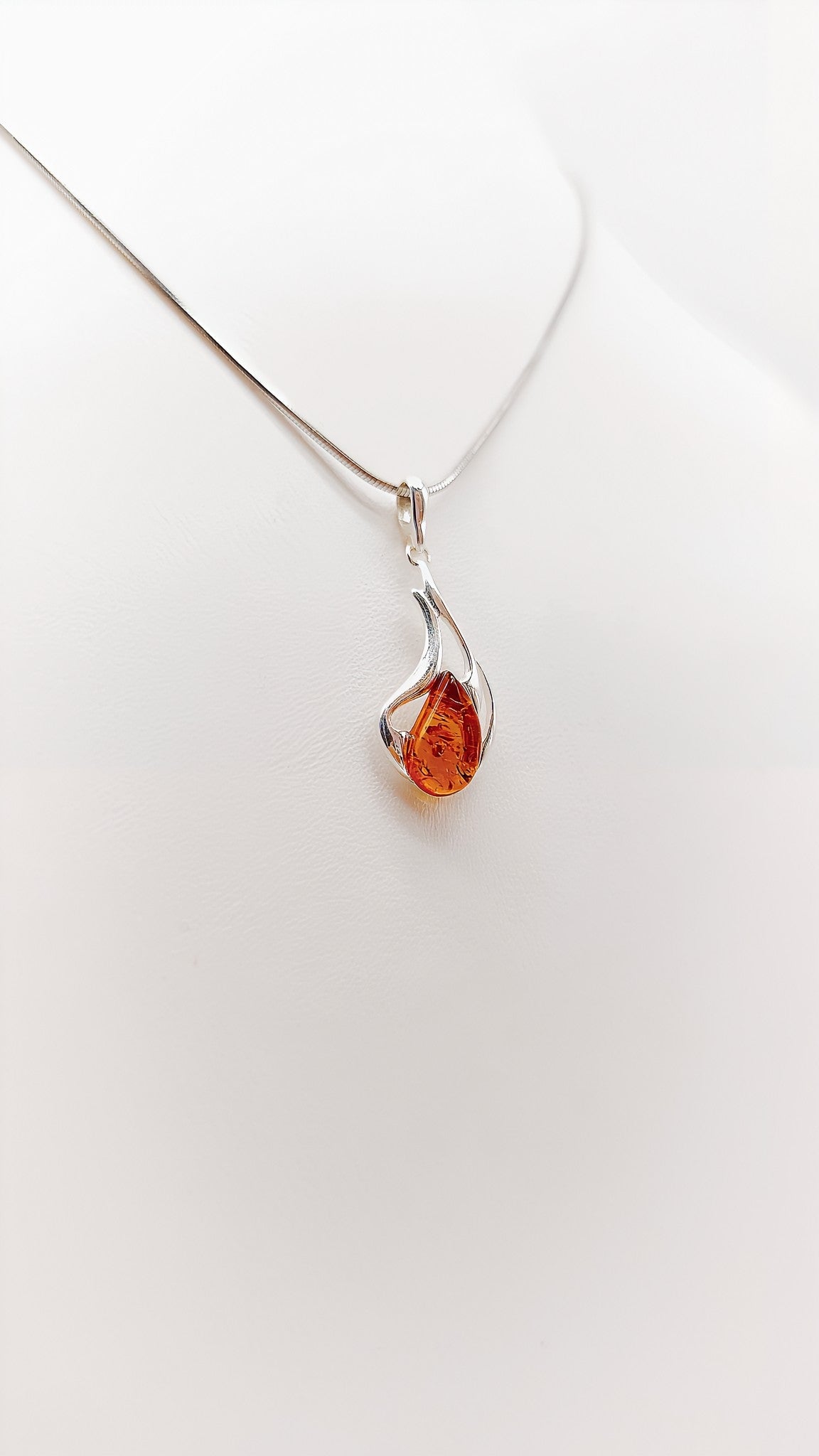 This elegant pendant crafted from 925 sterling silver combines the warm radiance of amber with a delicate, flame-shaped design. The amber, perfectly set into the cool silver, shines like a glowing flame in this stylish setting. This piece of jewelry is an expression of timeless elegance and is perfect for anyone looking to add a special touch to their style. Whether for special occasions or everyday wear, this pendant is guaranteed to turn heads.