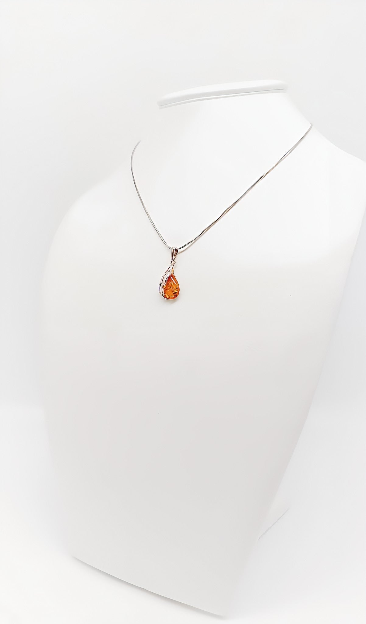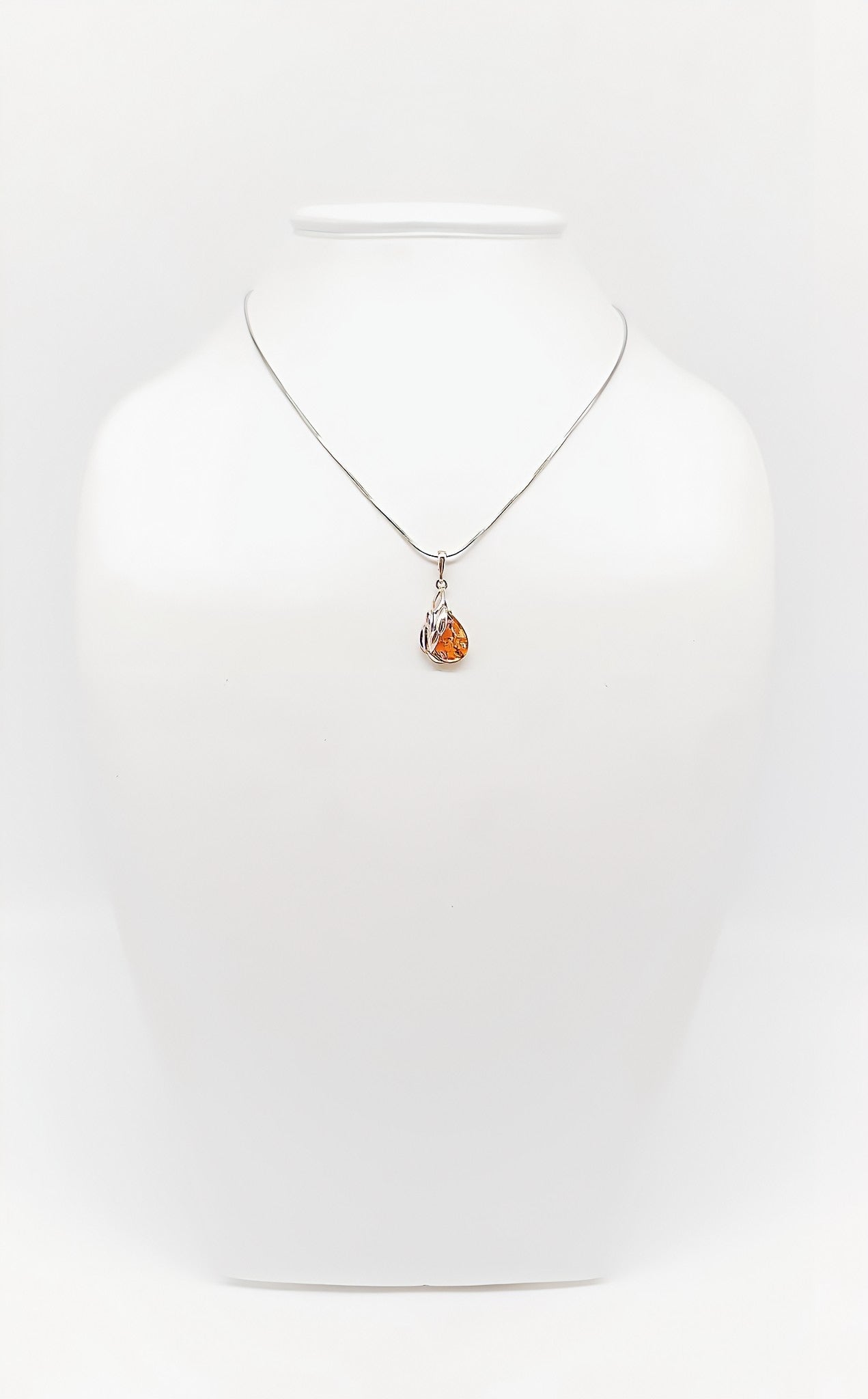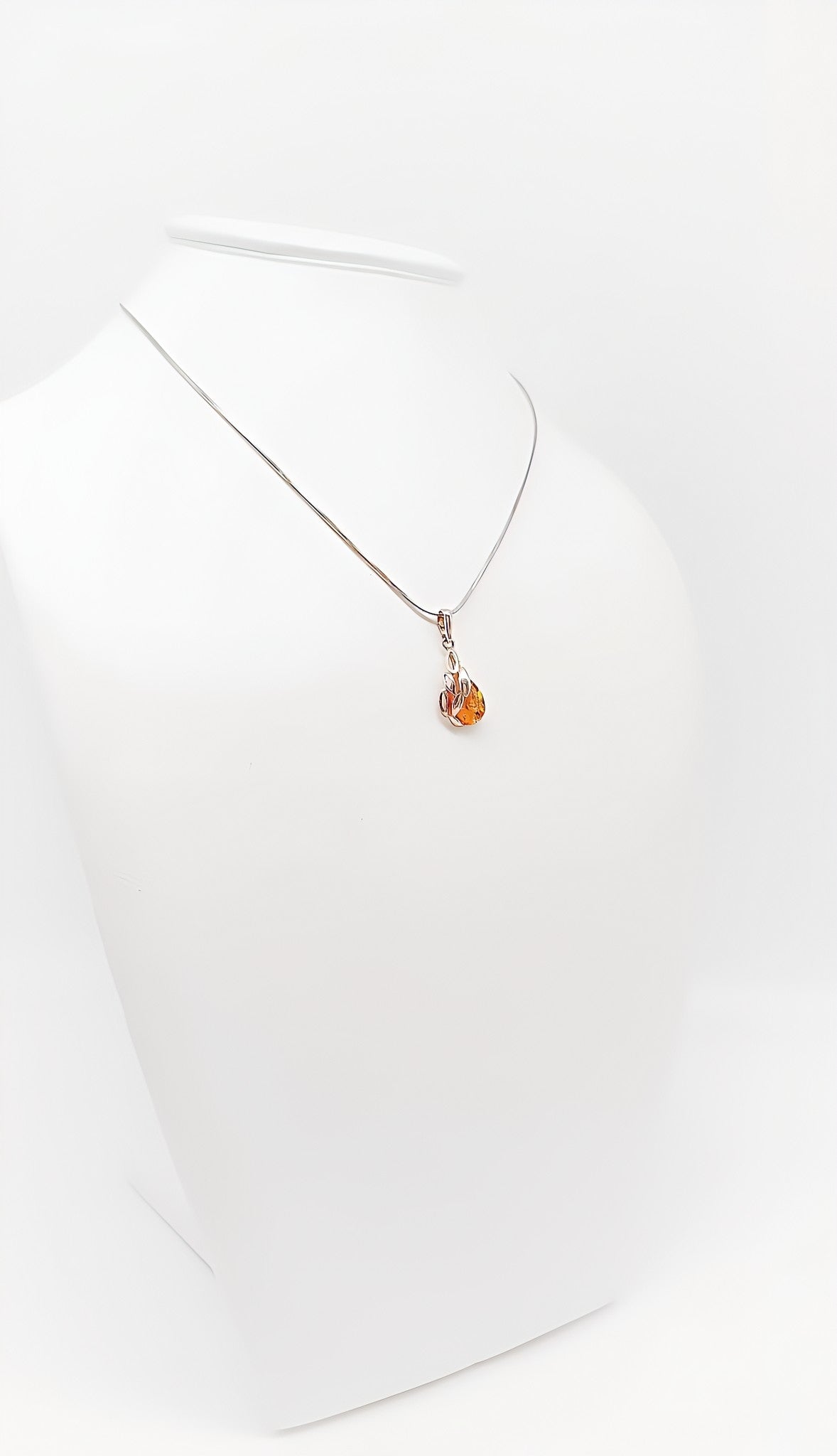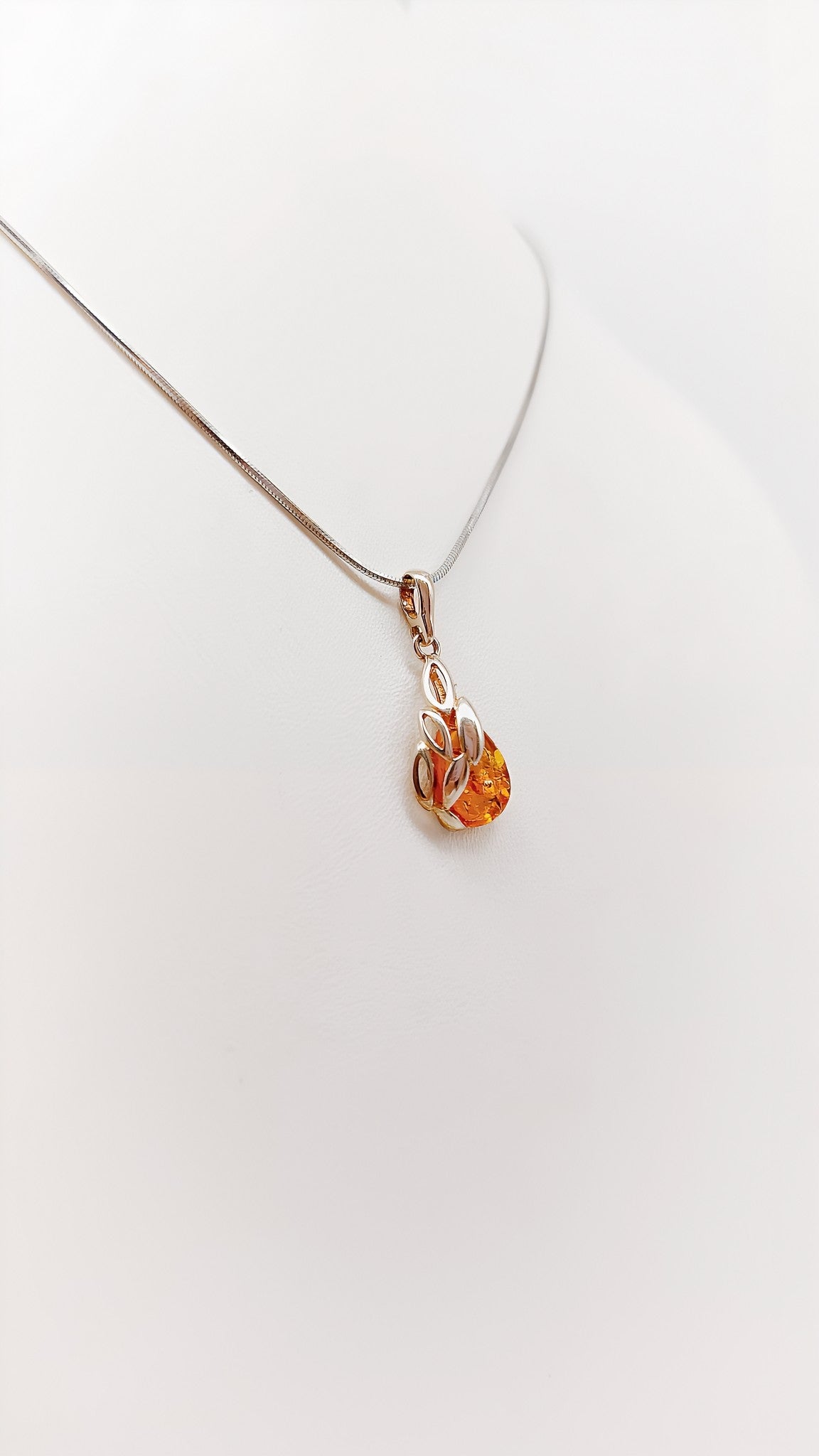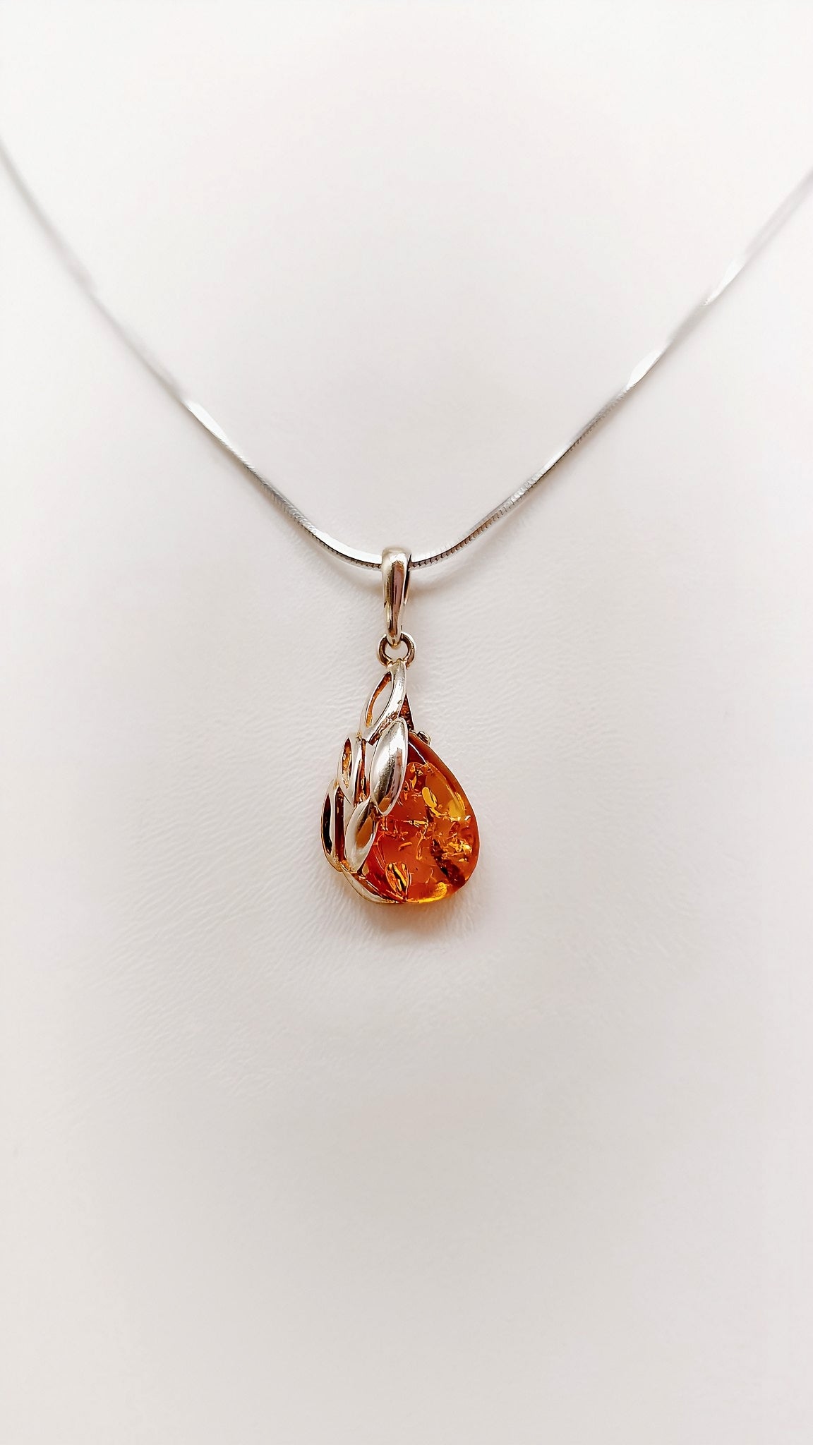 This enchanting pendant crafted from 925 sterling silver combines the warm, golden radiance of amber with a delicate leaf design. The amber, set in silver, is framed by delicate leaves, giving it a natural yet refined appeal. This piece of jewelry is perfect for anyone who wants to combine the beauty of nature with a touch of elegance. Whether for everyday wear or special occasions, this pendant always makes a stylish statement.