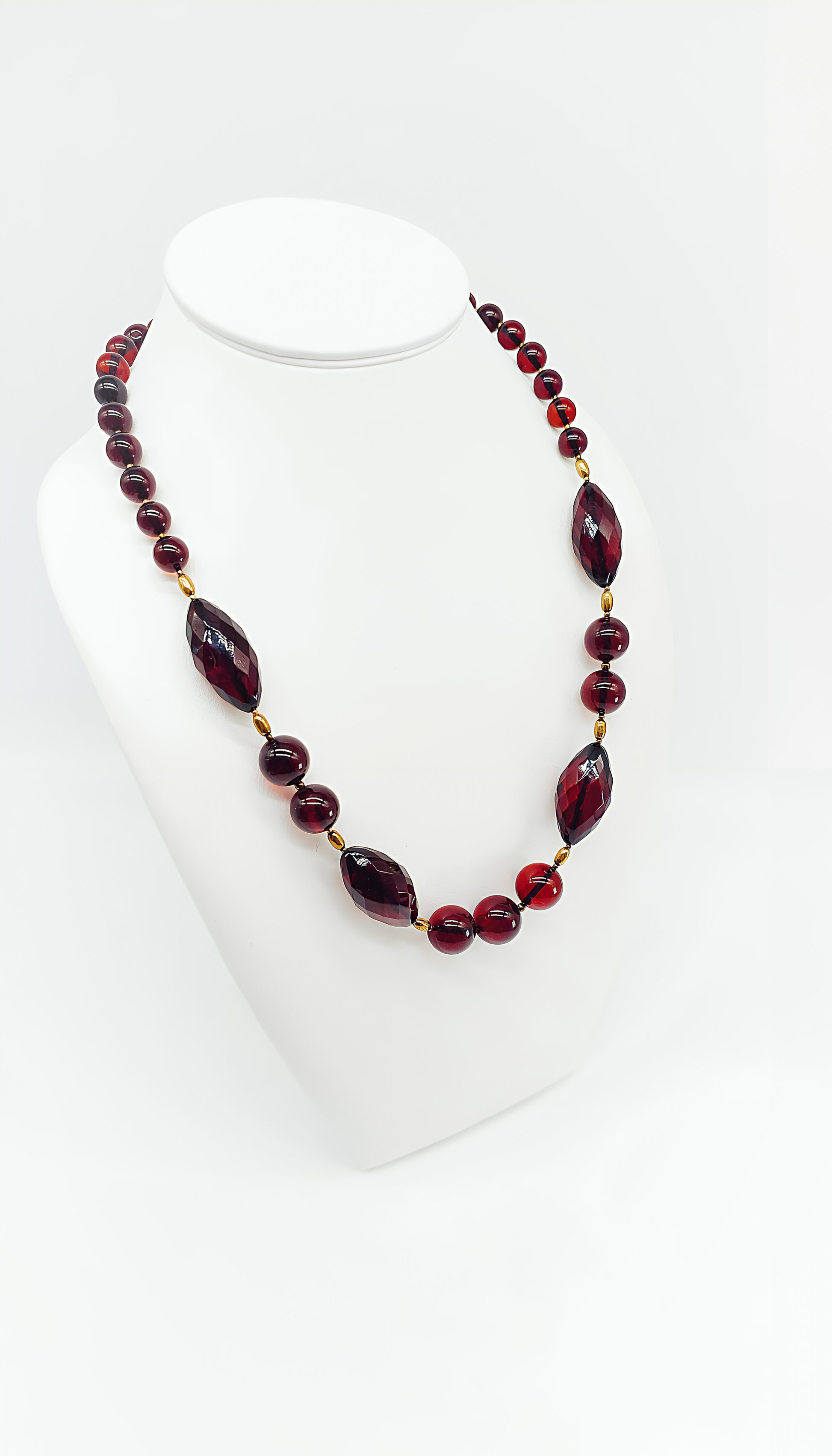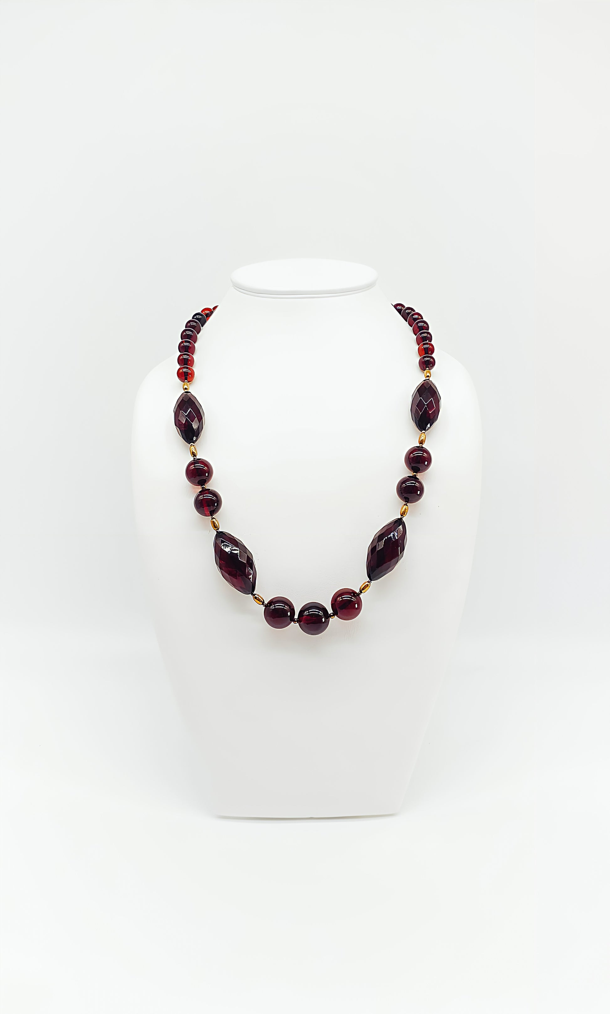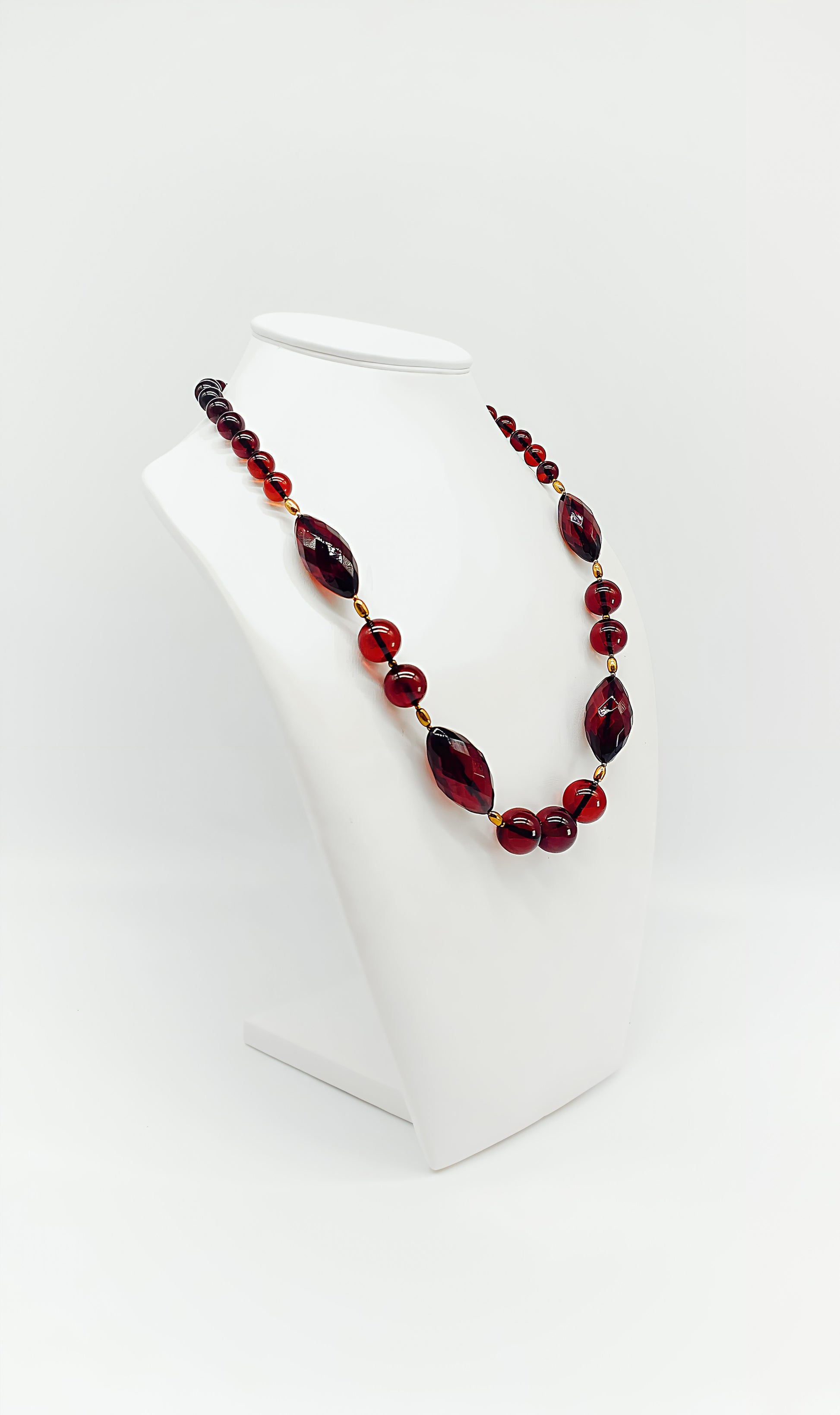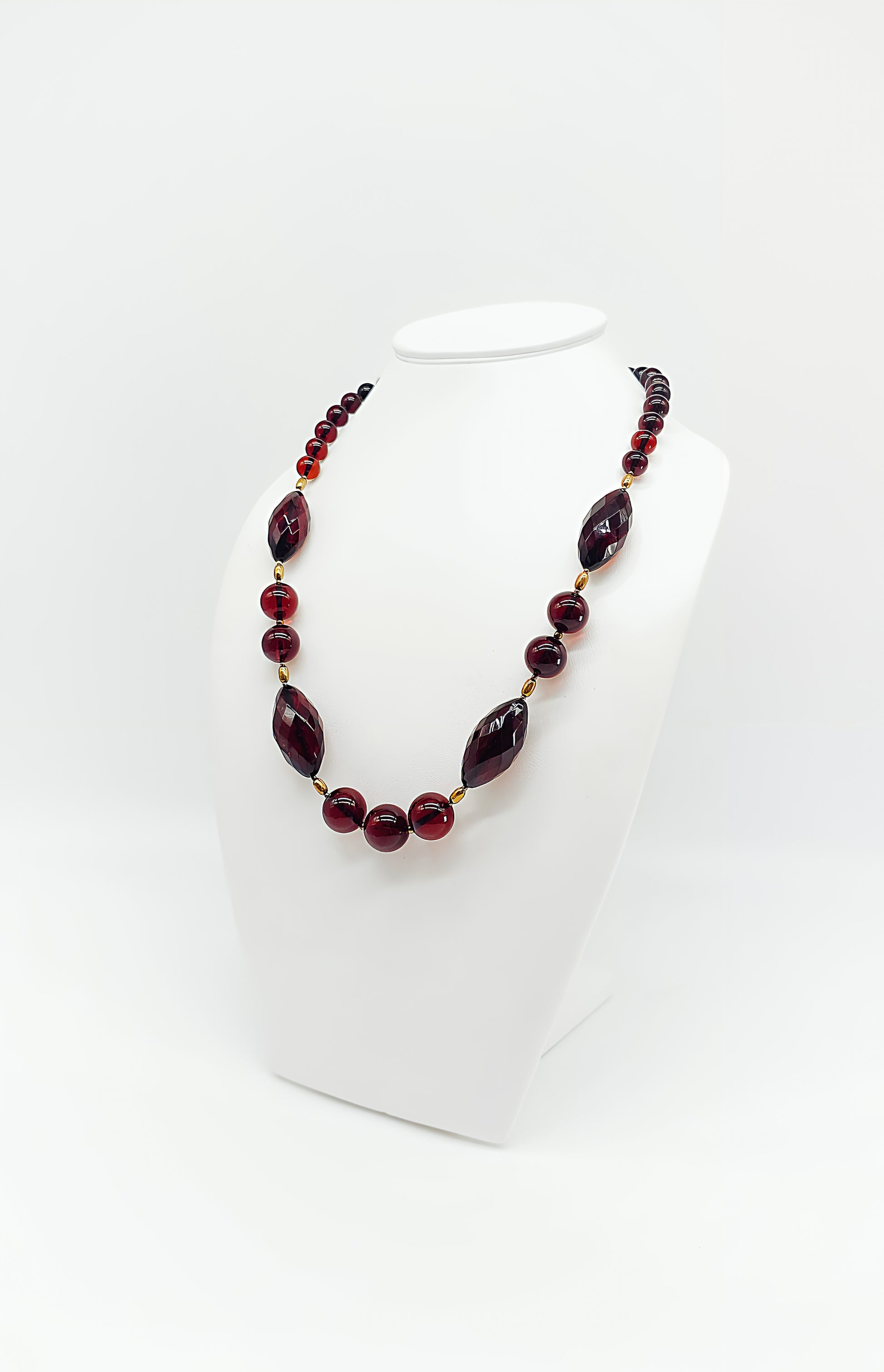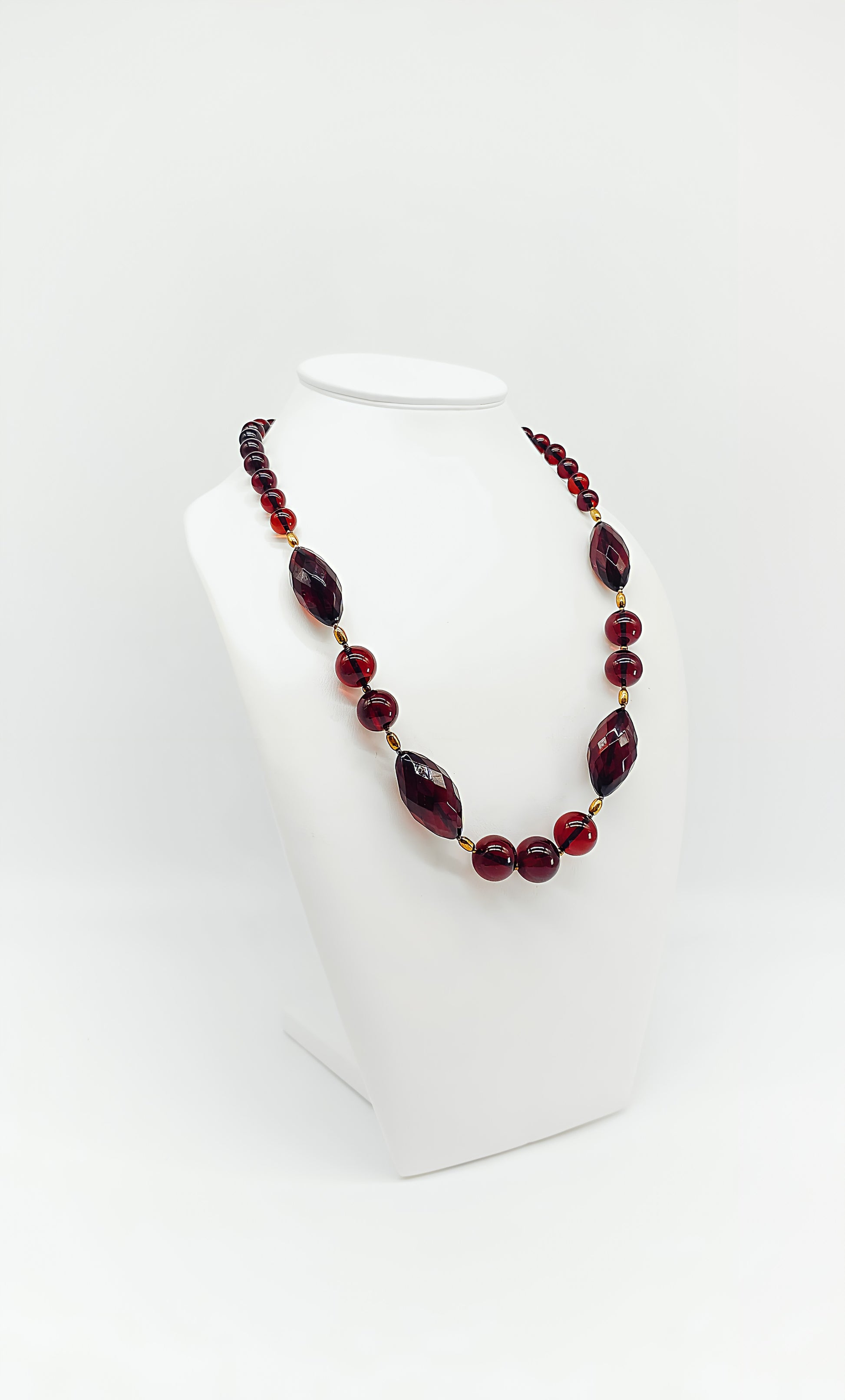 This handcrafted amber necklace is an expression of natural beauty and timeless elegance. The warm, deep red amber stones shimmer in various nuances and are artfully arranged into a harmonious design. Each piece is unique , crafted from genuine natural amber , known for its healing and positive energies.