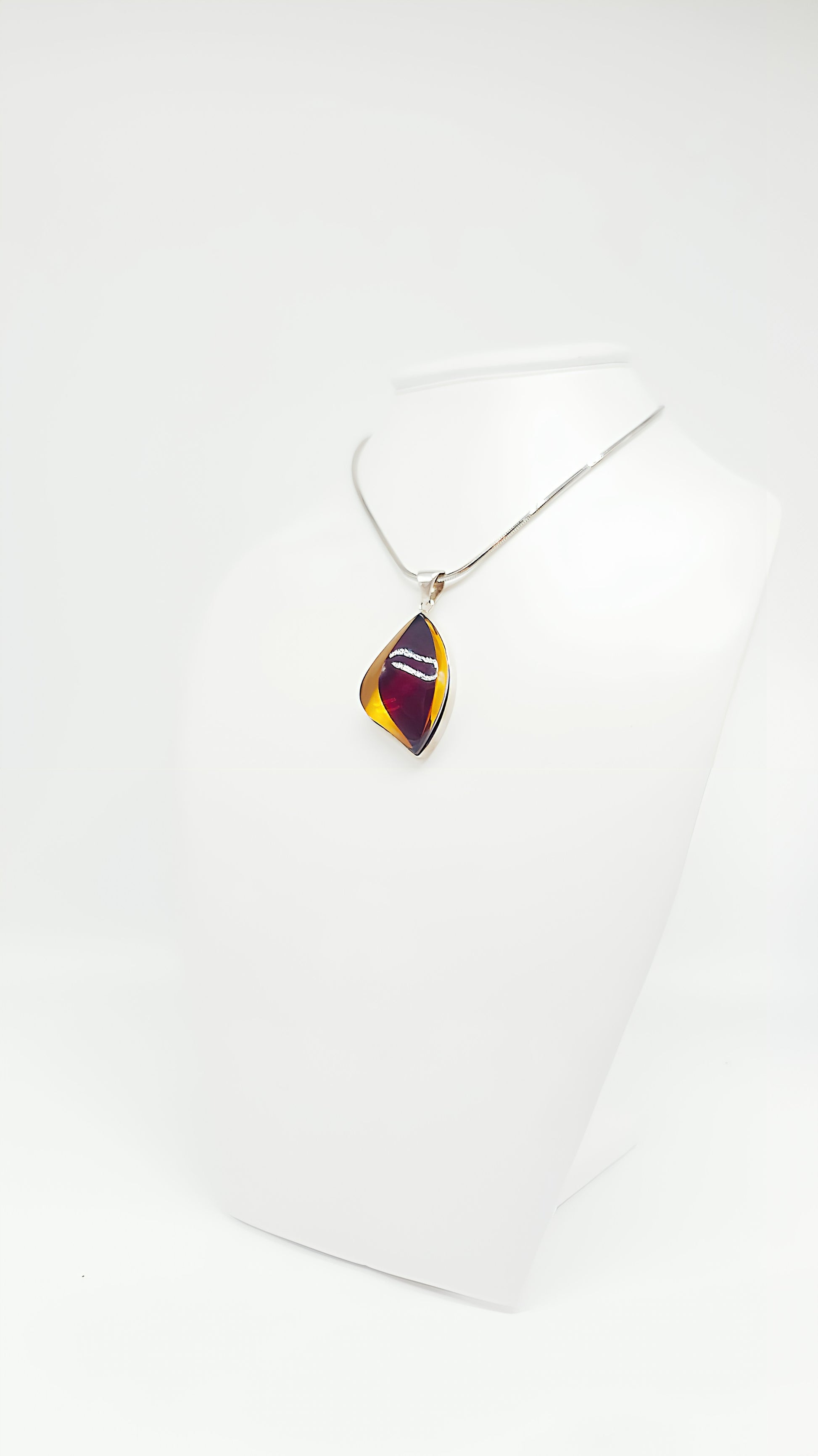 This handcrafted amber pendant crafted from 925 sterling silver captivates with its simple elegance and natural beauty. The drop-shaped amber impresses with warm, golden and cognac-colored nuances that beautifully capture the light. This piece of jewelry is truly unique and brings the timeless elegance of amber to any look. Perfect for lovers of unique, natural jewelry that combines design and nature.