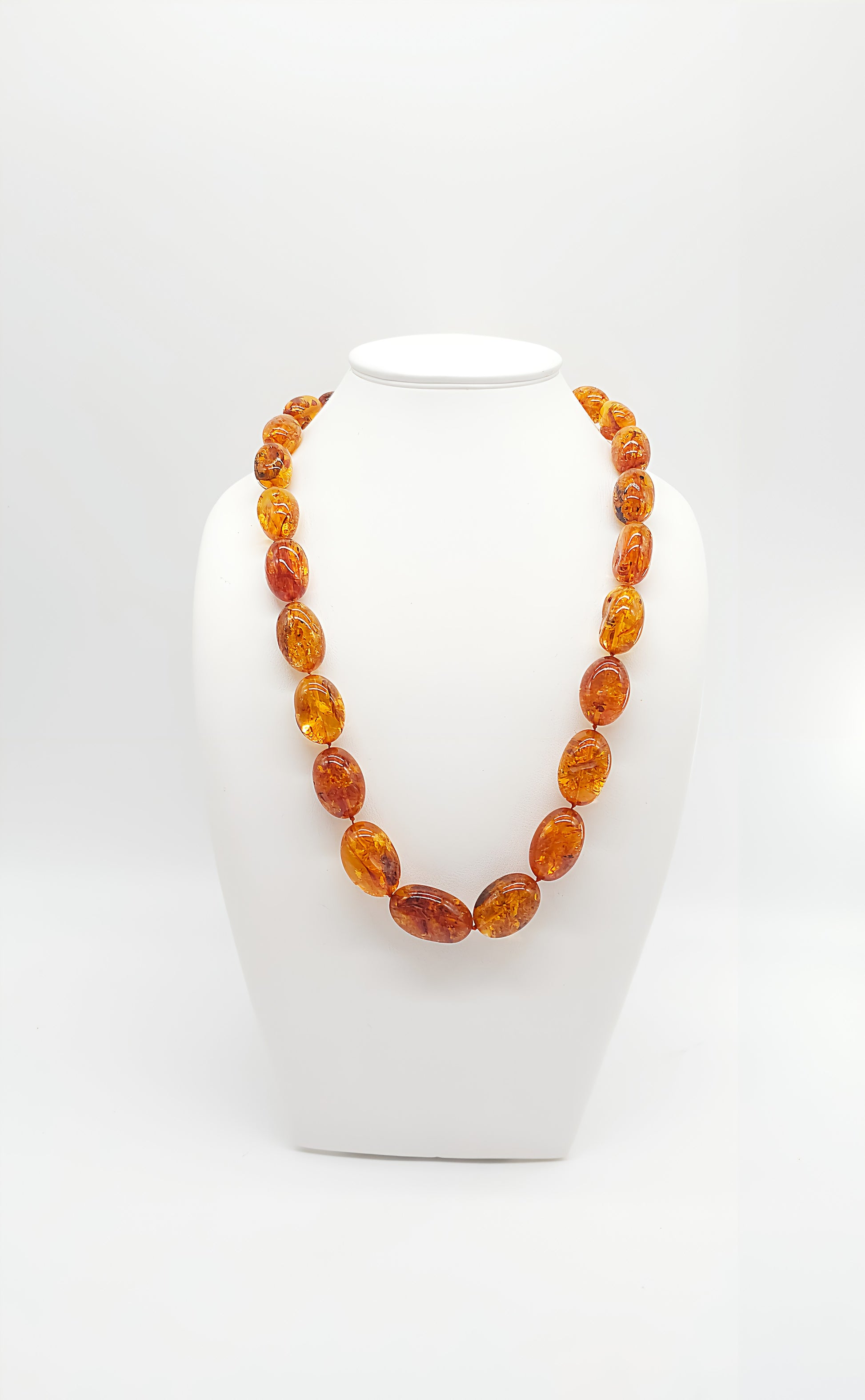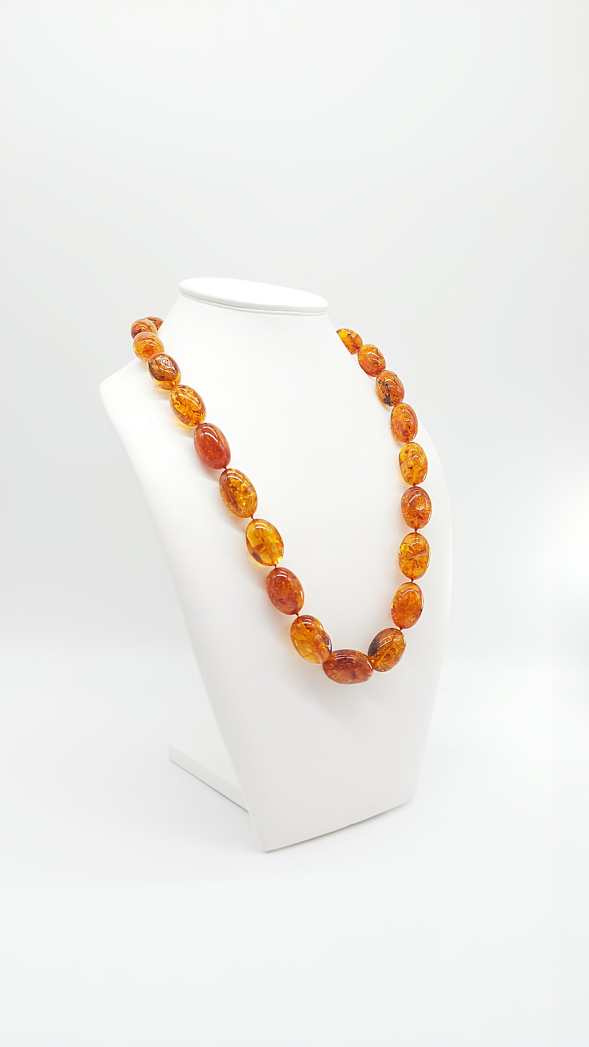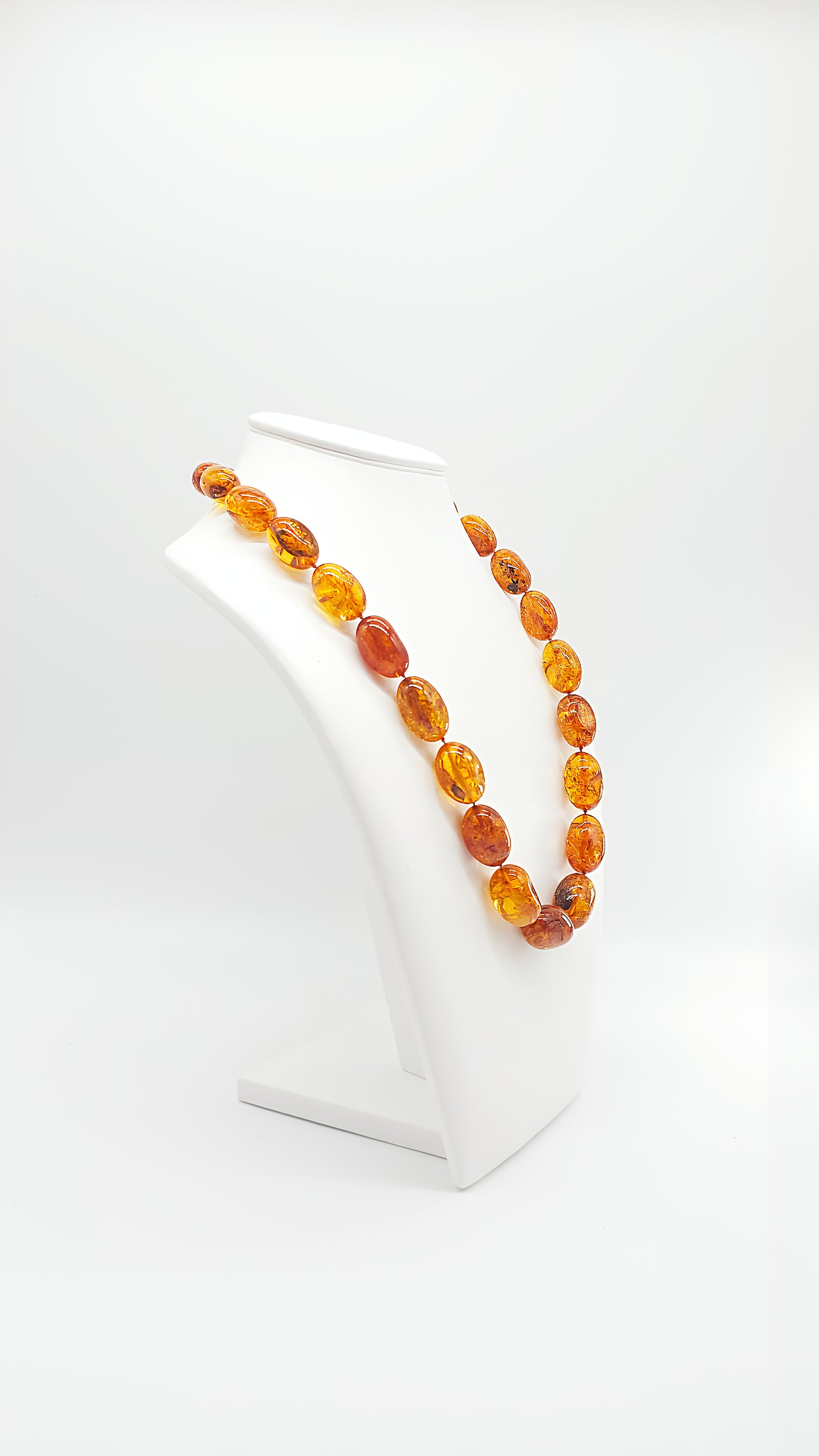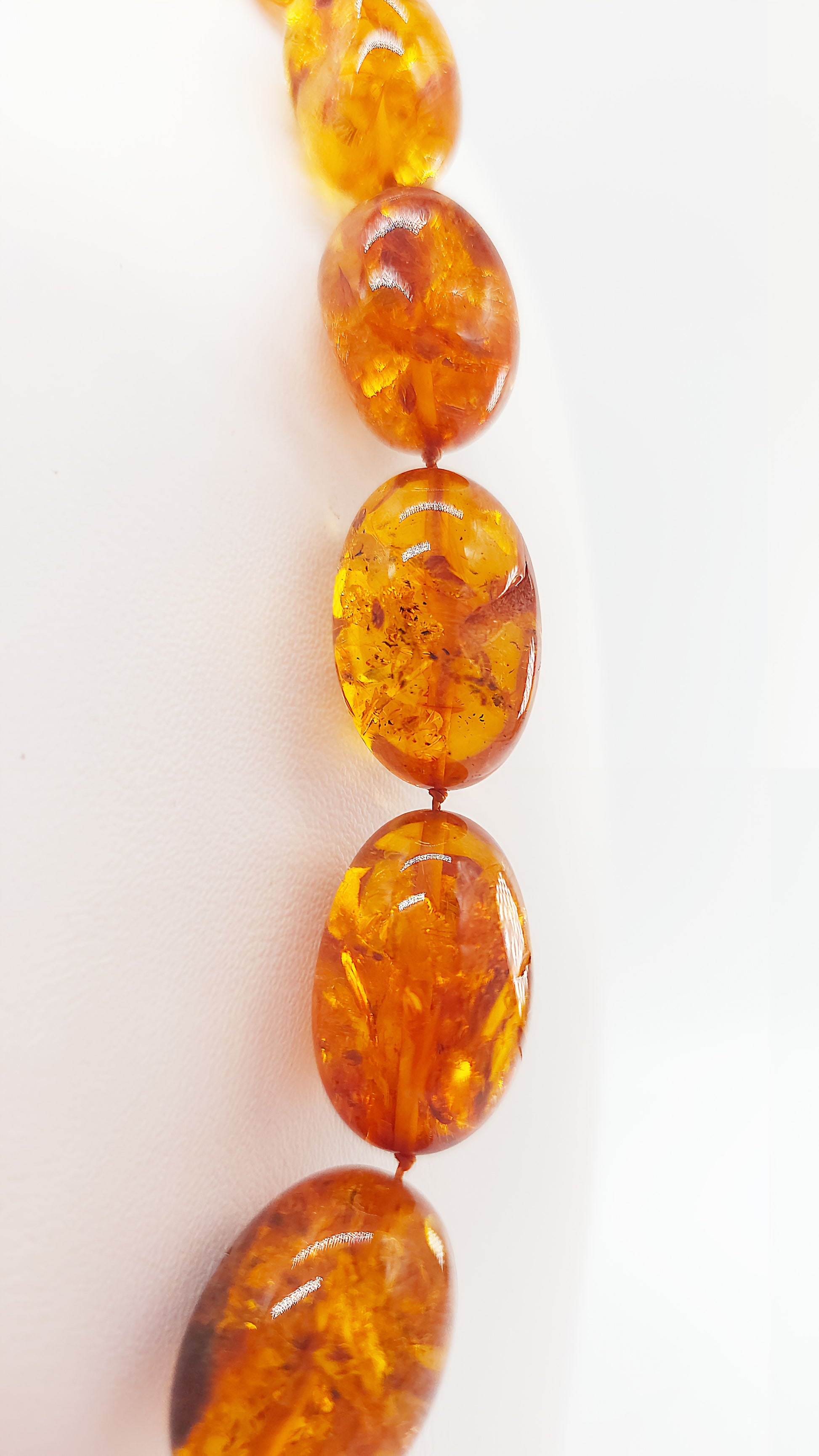 This stunning amber necklace is truly unique, perfectly showcasing the natural beauty of amber. The golden, oval amber stones shimmer in warm, natural tones, making this necklace a luxurious accessory that adds a special touch to any outfit. Each stone has been carefully selected and handcrafted to create a necklace that is both modern and timeless. Whether worn for special occasions or as a stylish everyday accessory, this necklace is the perfect statement piece for lovers of unique jewelry.