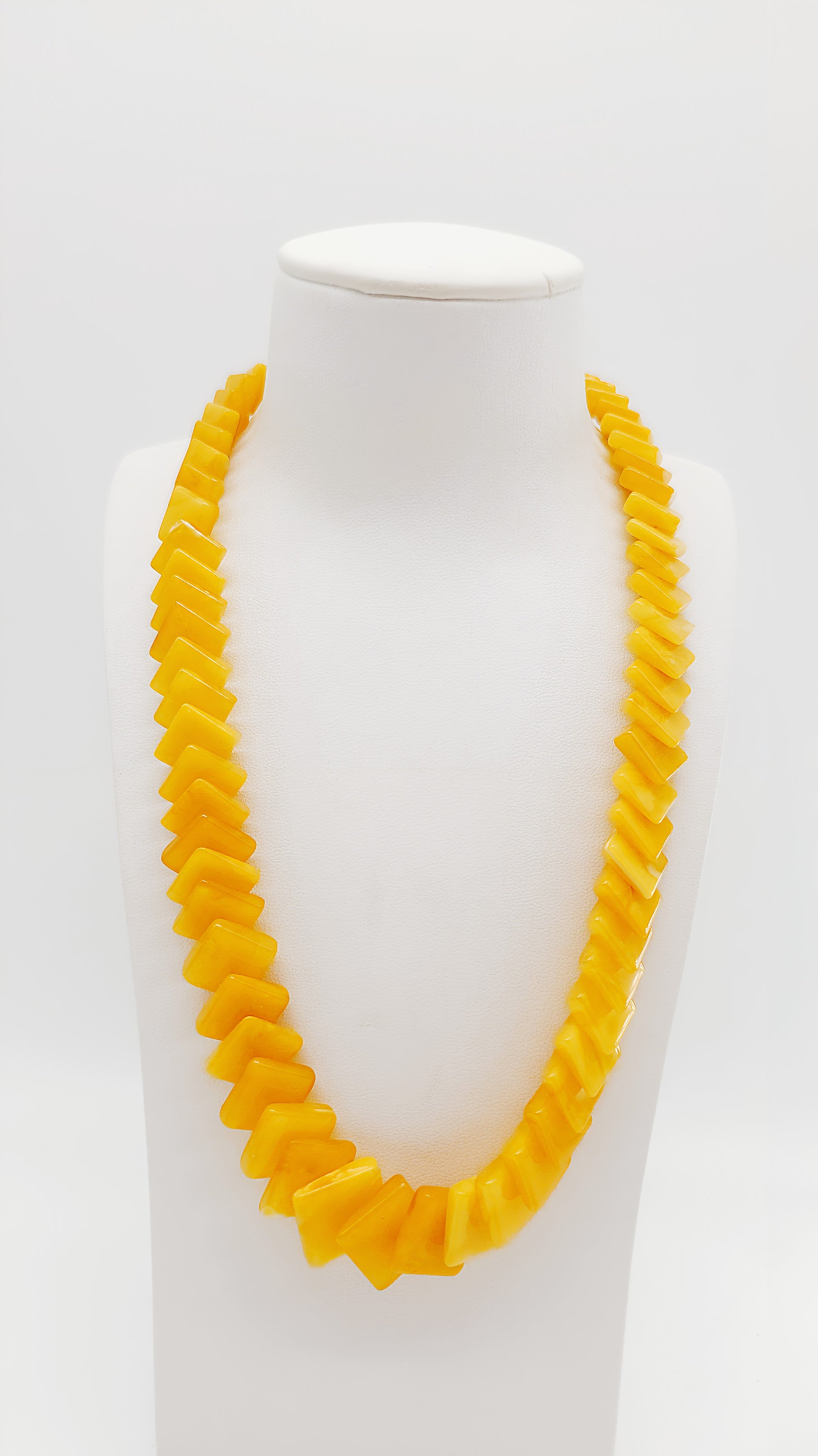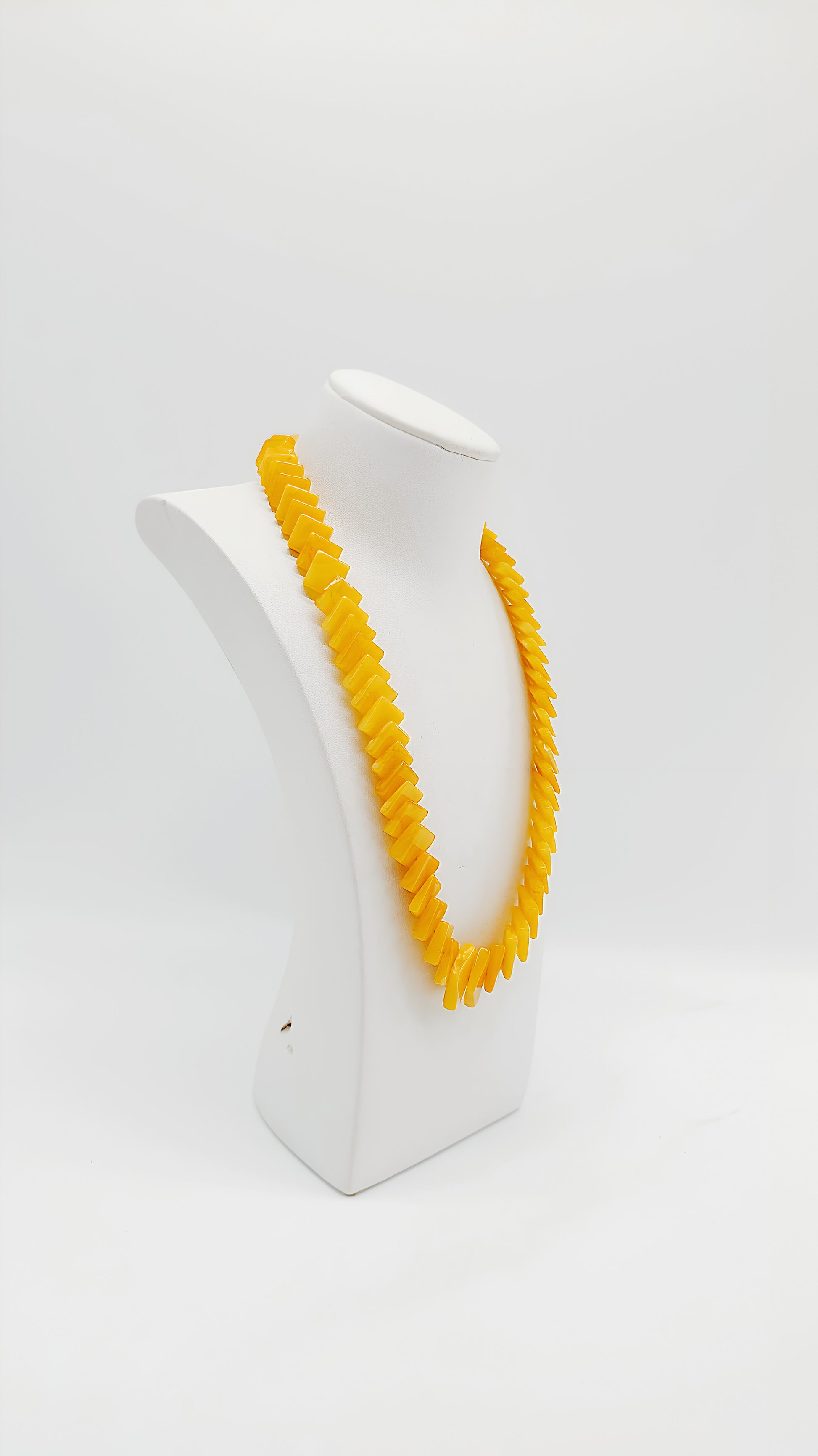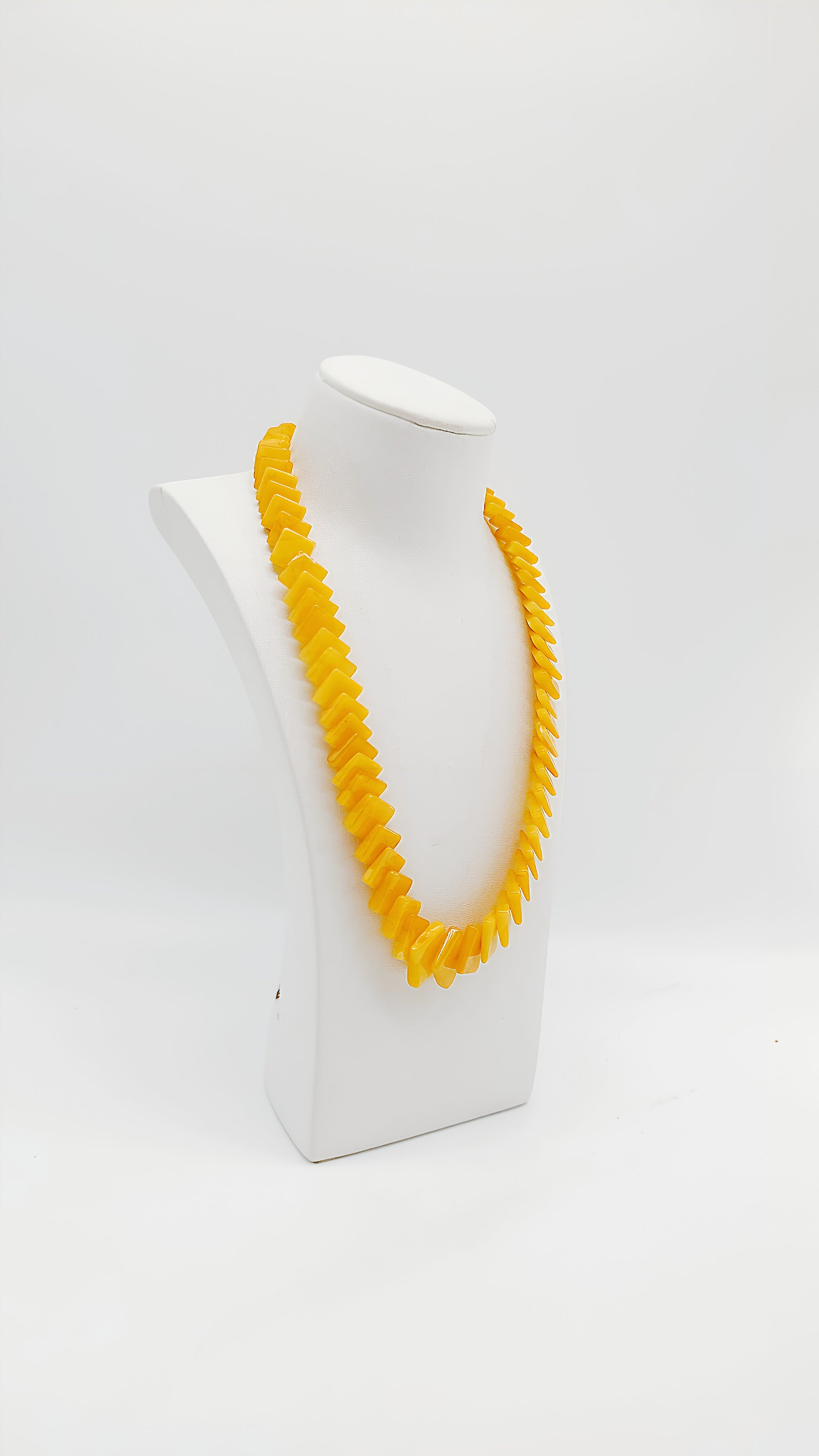 This unique amber necklace combines modern aesthetics with timeless elegance. The geometrically shaped amber beads give the necklace a structured, almost architectural look, while preserving the warmth and vibrancy of natural amber. This exceptional piece of jewelry is designed for those who enjoy making a statement and want to wear the beauty of nature in a contemporary design.