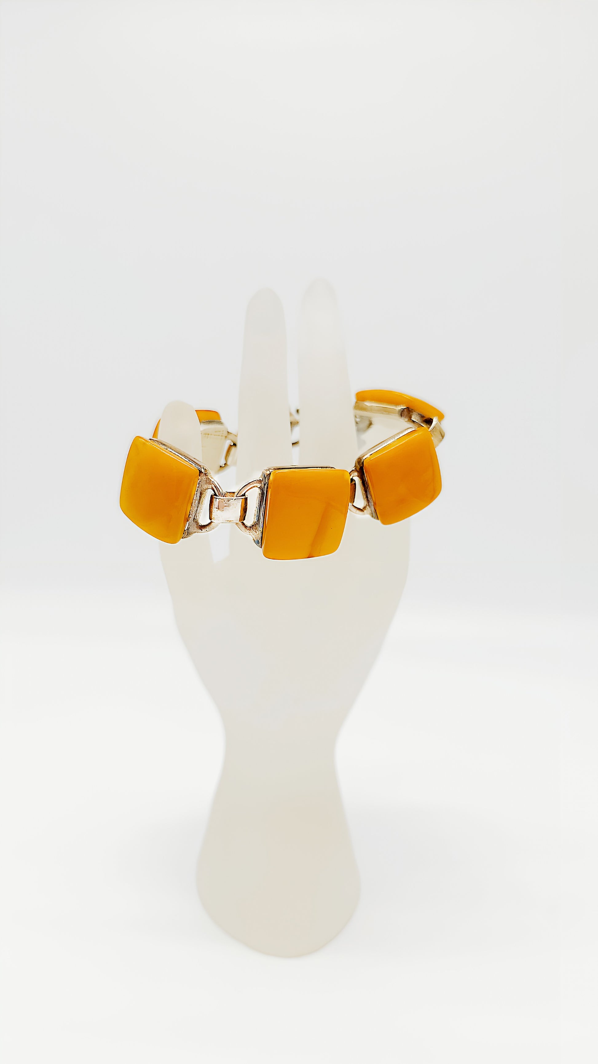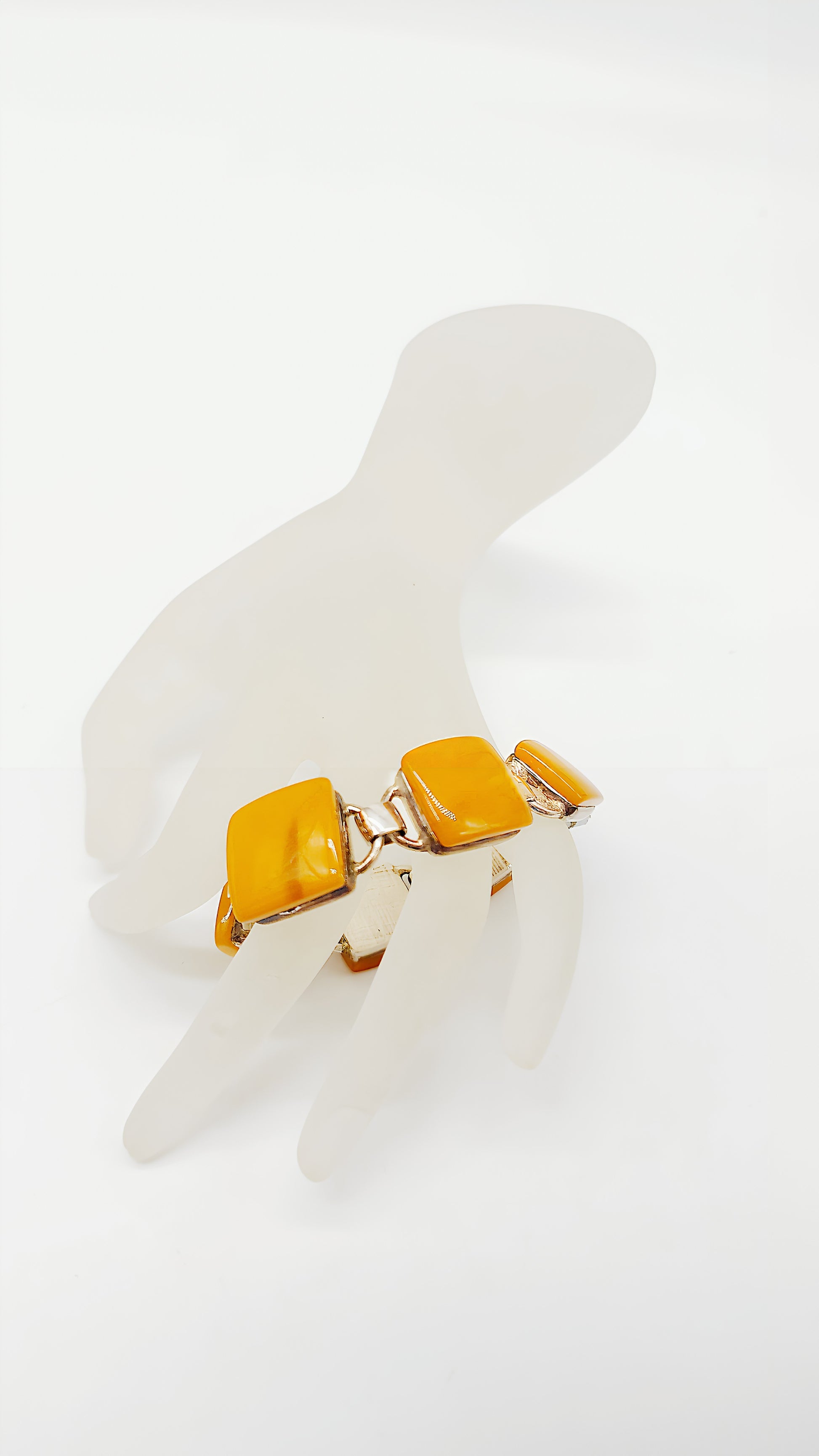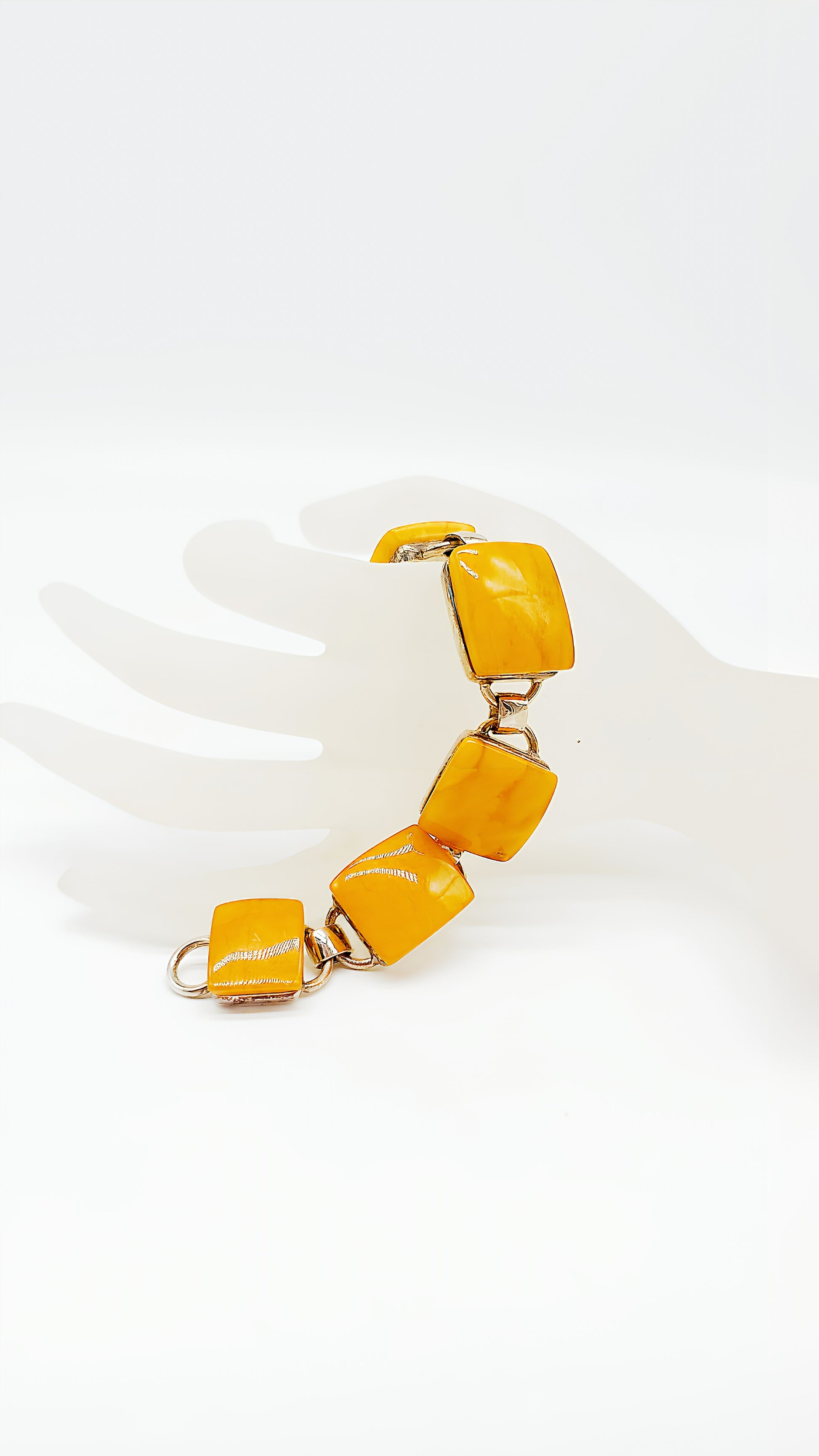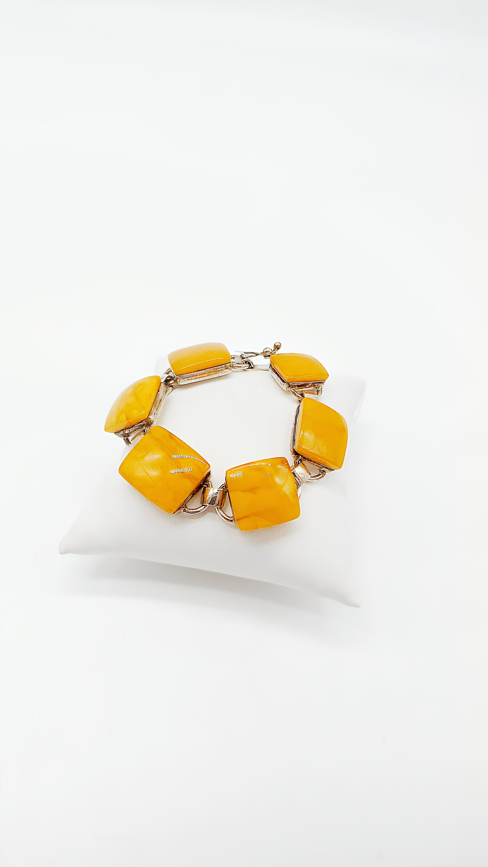 This exclusive amber bracelet crafted from 925 sterling silver is an elegant piece of jewelry for lovers of fine accessories. The beautiful, smoothly polished yellow amber stones radiate in warm honey tones and are artfully combined with precious silver. Each bracelet is handcrafted and unique , combining the natural charm of amber with timeless elegance.