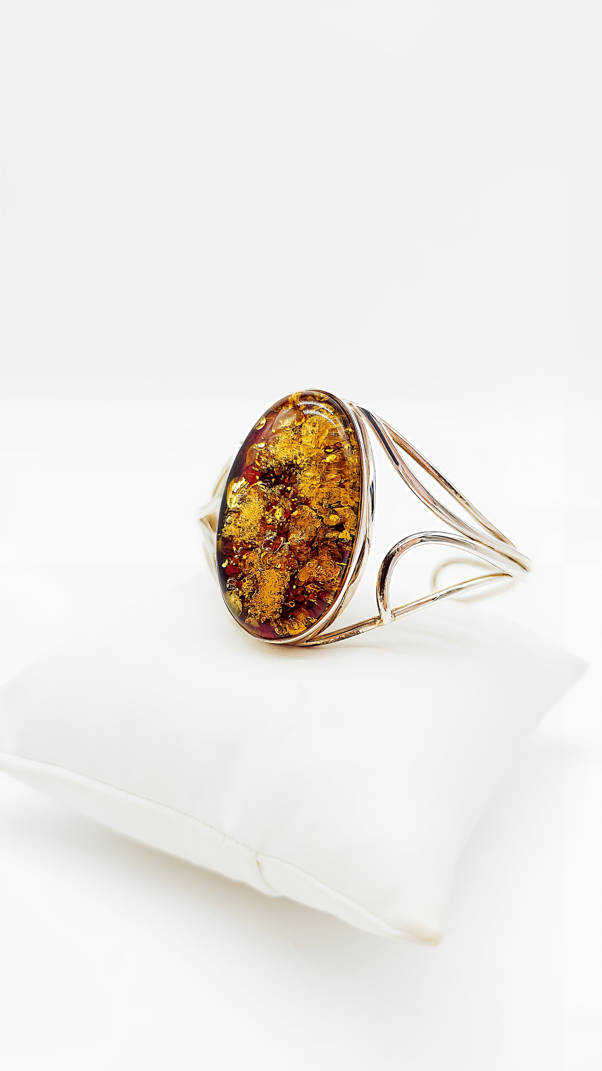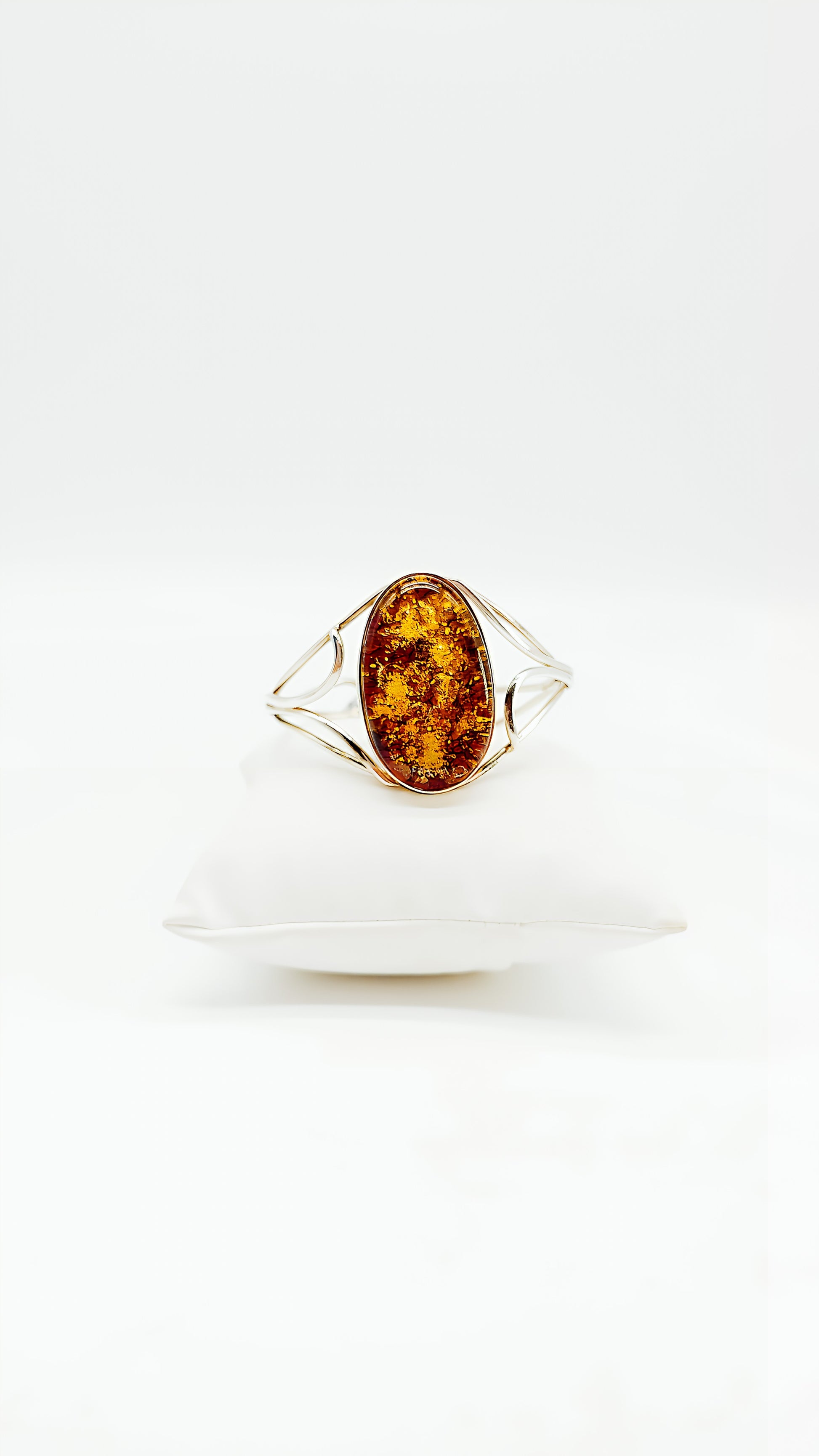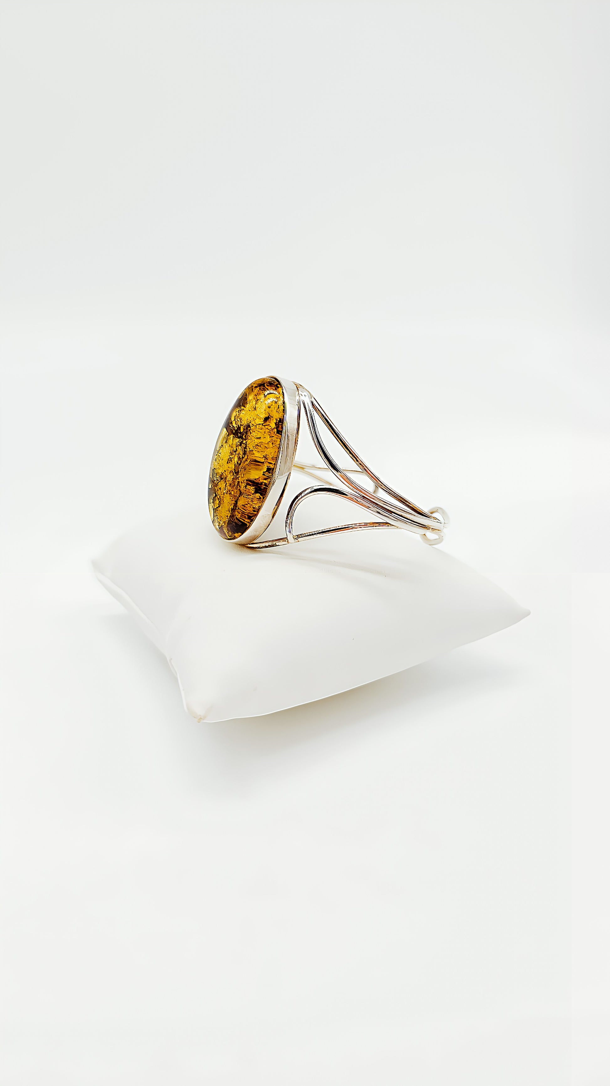 This elegant bangle combines the warm radiance of oval amber with the cool elegance of 925 sterling silver. The oval amber shimmers in golden nuances, reminiscent of captured sunbeams. The minimalist silver design draws the focus entirely to the sparkling gemstone, lending the piece a timeless grace. This bangle is a real eye-catcher and adds a touch of luxury and naturalness to any outfit.