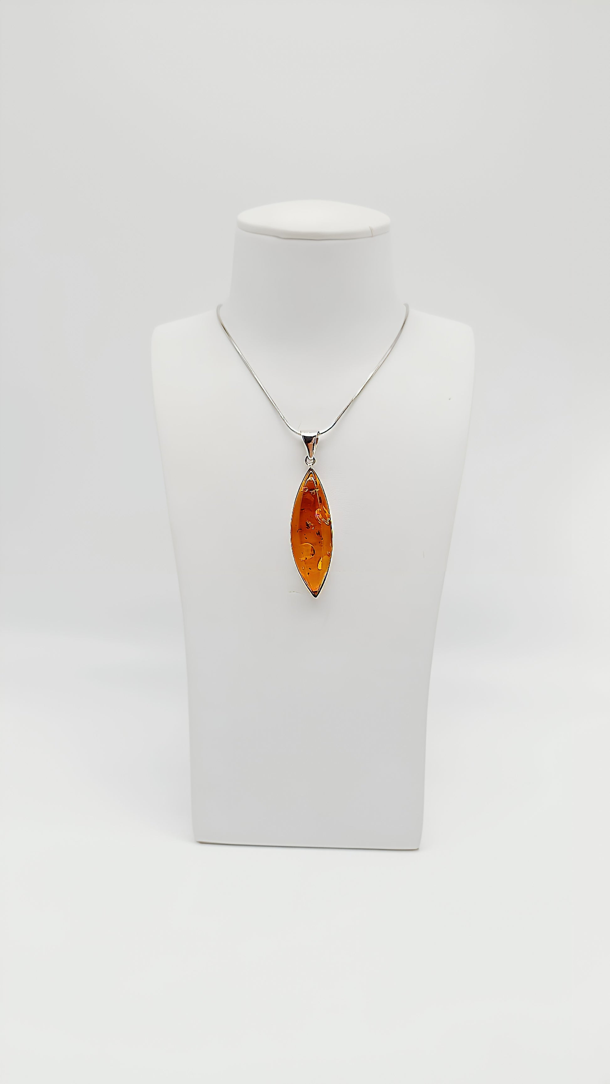 This stylish 925 sterling silver pendant is a timeless piece of jewelry featuring an elegant, slender amber stone in a modern, minimalist design. The warm, honey-colored glow of the amber harmonizes perfectly with the cool silver, giving the pendant a distinctive radiance. Perfect for women who want to combine natural beauty and elegance in one piece of jewelry.