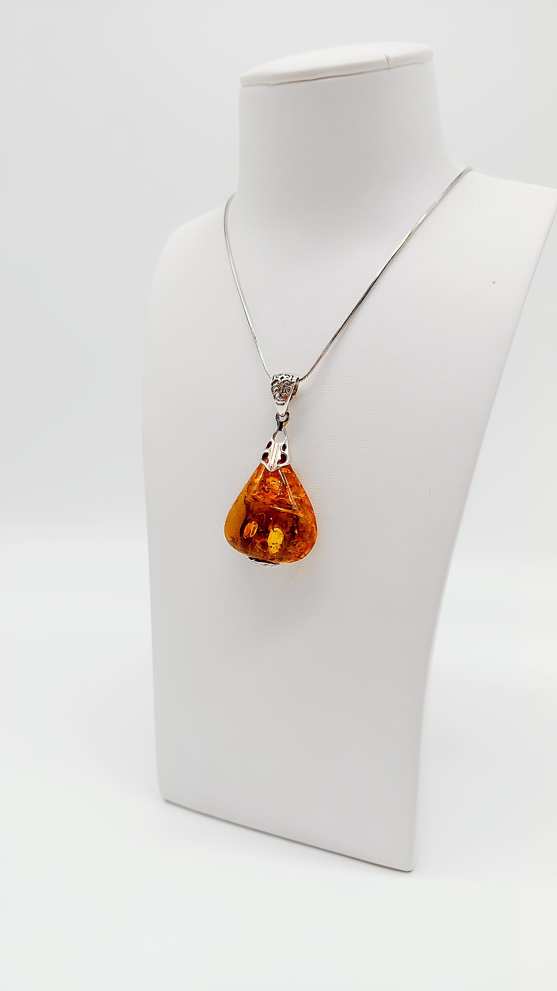 This 925 sterling silver pendant impresses with its sparkling drop of natural amber. The warm, golden hue of the amber is perfectly accentuated by the elegant silver setting, lending the piece a luxurious aura. Whether worn for special occasions or as an everyday highlight, this pendant combines elegance and nature in a fascinating way.