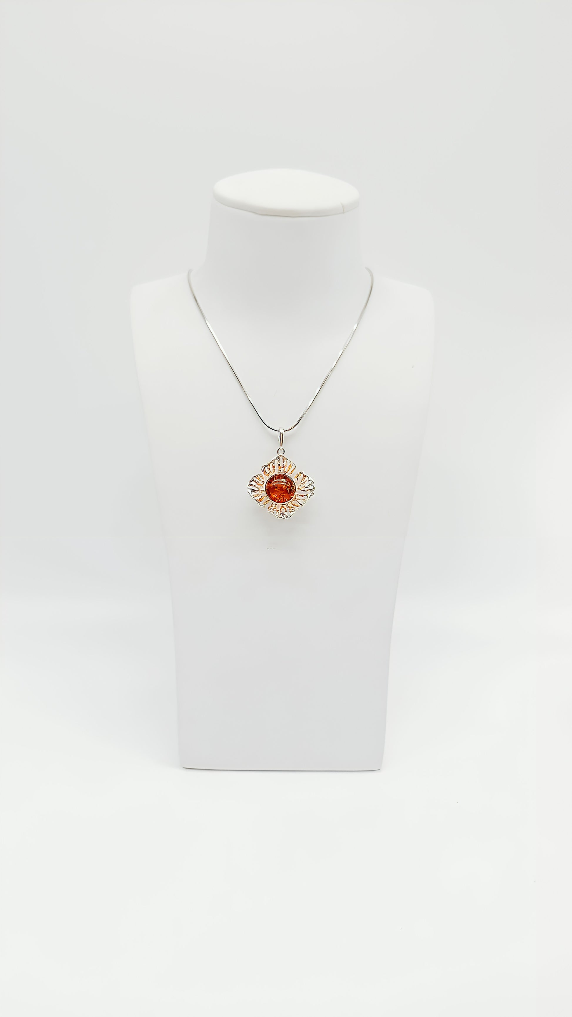 This extraordinary pendant, crafted from gold-plated 925 sterling silver, showcases a unique amber stone gently resting in a delicate, flower-shaped frame. The natural structure of the gold-plated setting highlights the warm hue of the amber, creating a harmonious interplay. Each pendant is unique and exudes pure elegance and timeless beauty. Perfect for anyone looking to add a touch of naturalness and sophistication to their style.