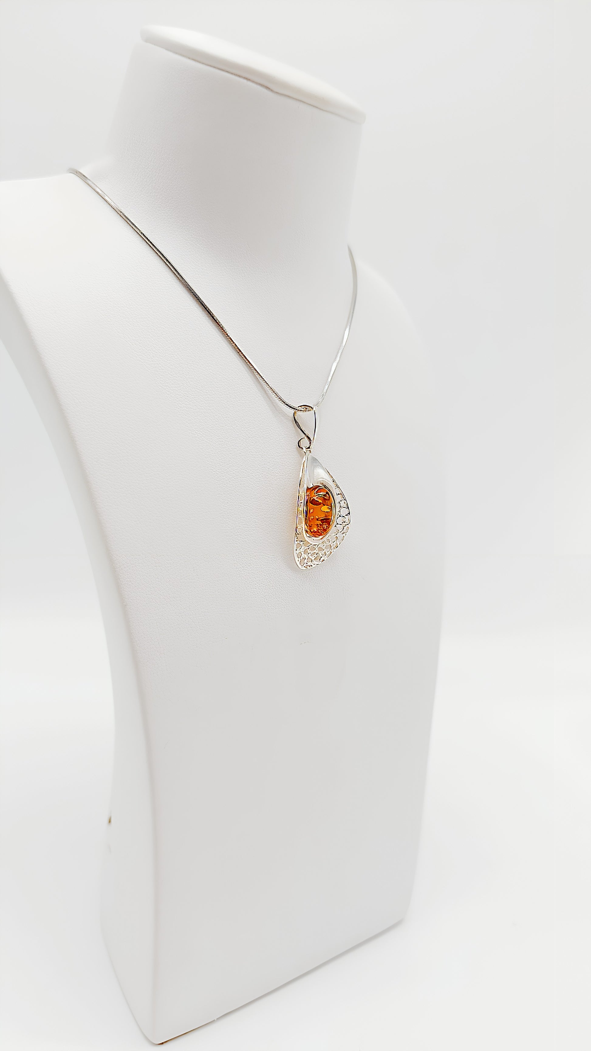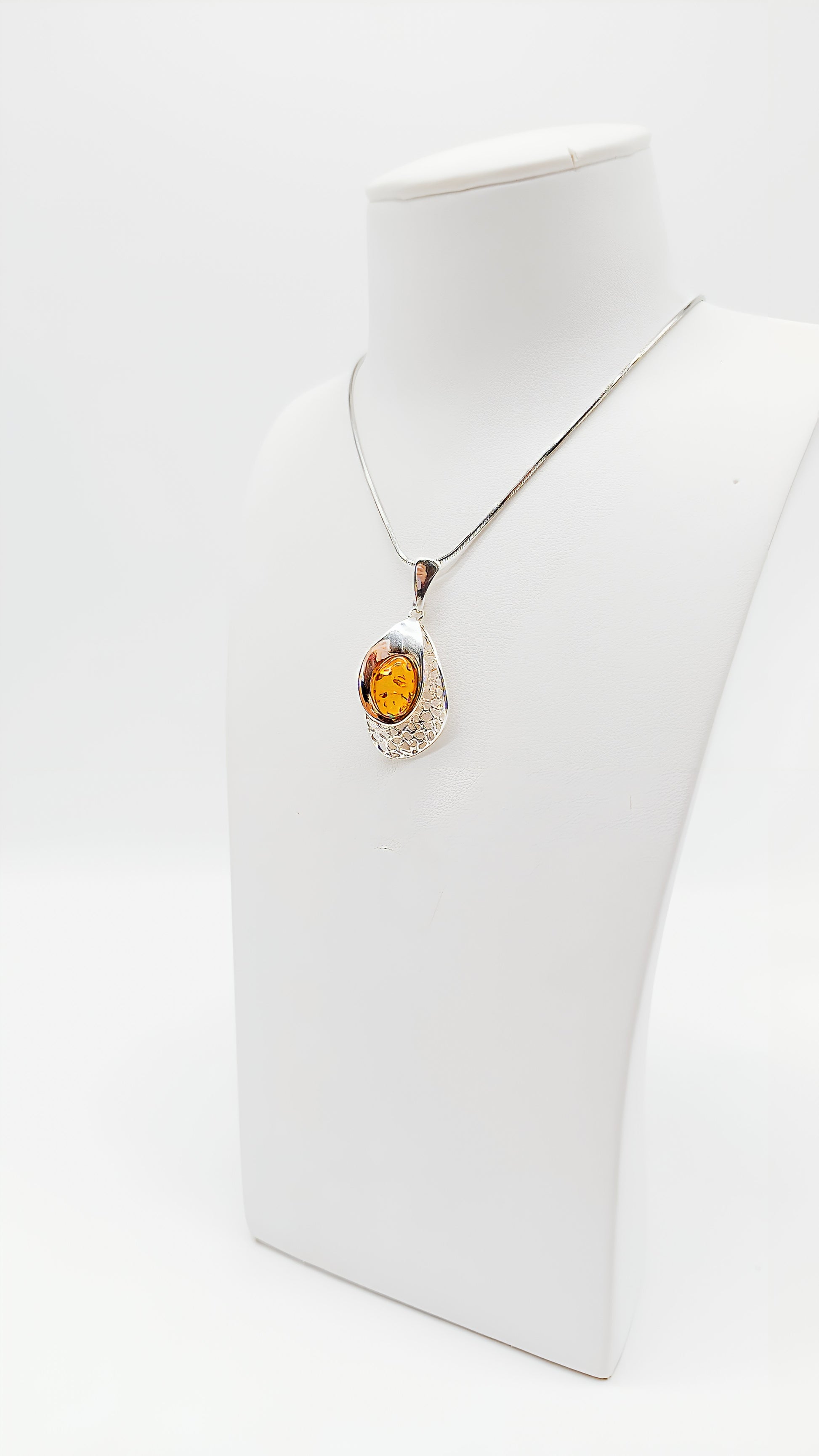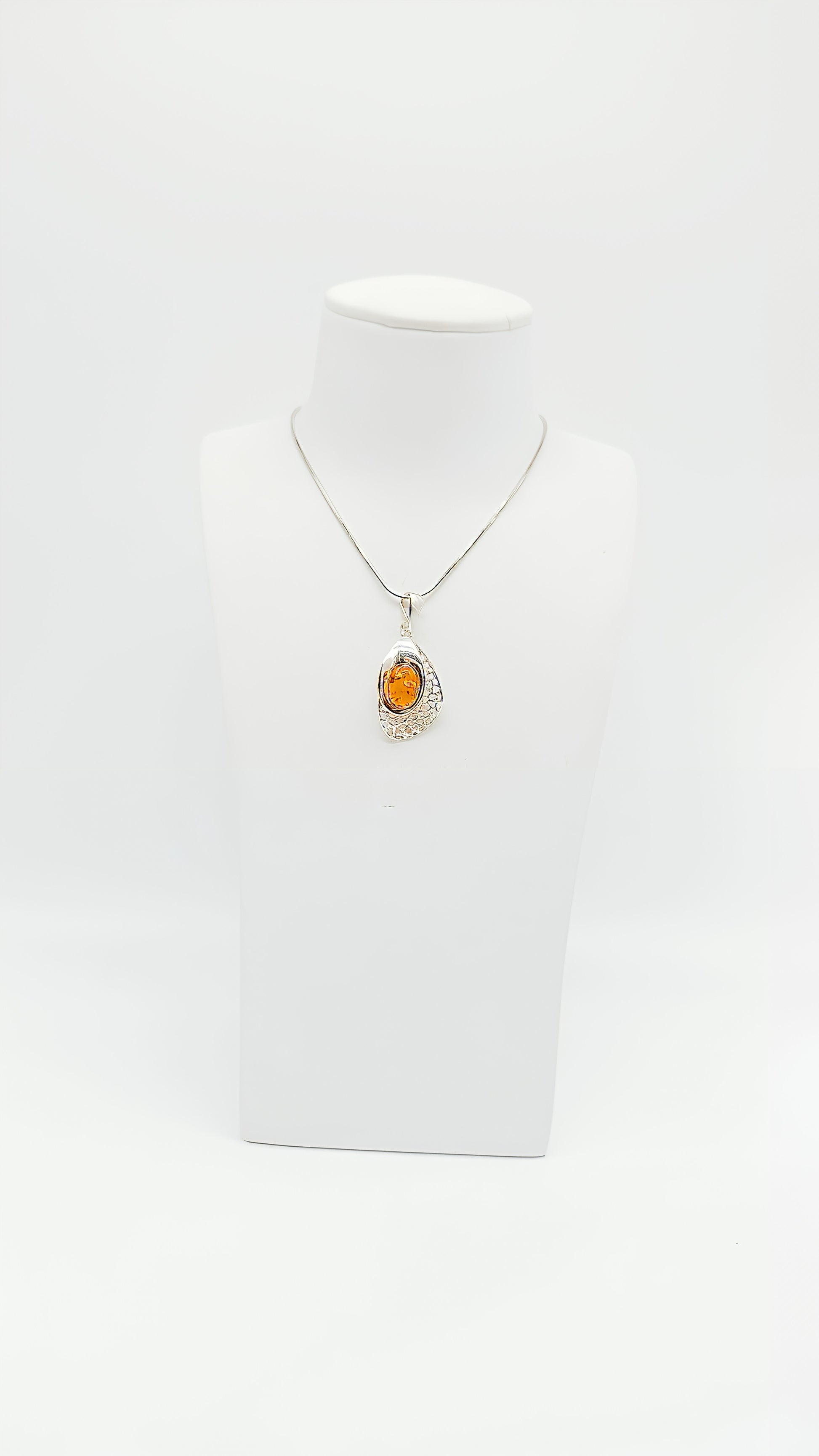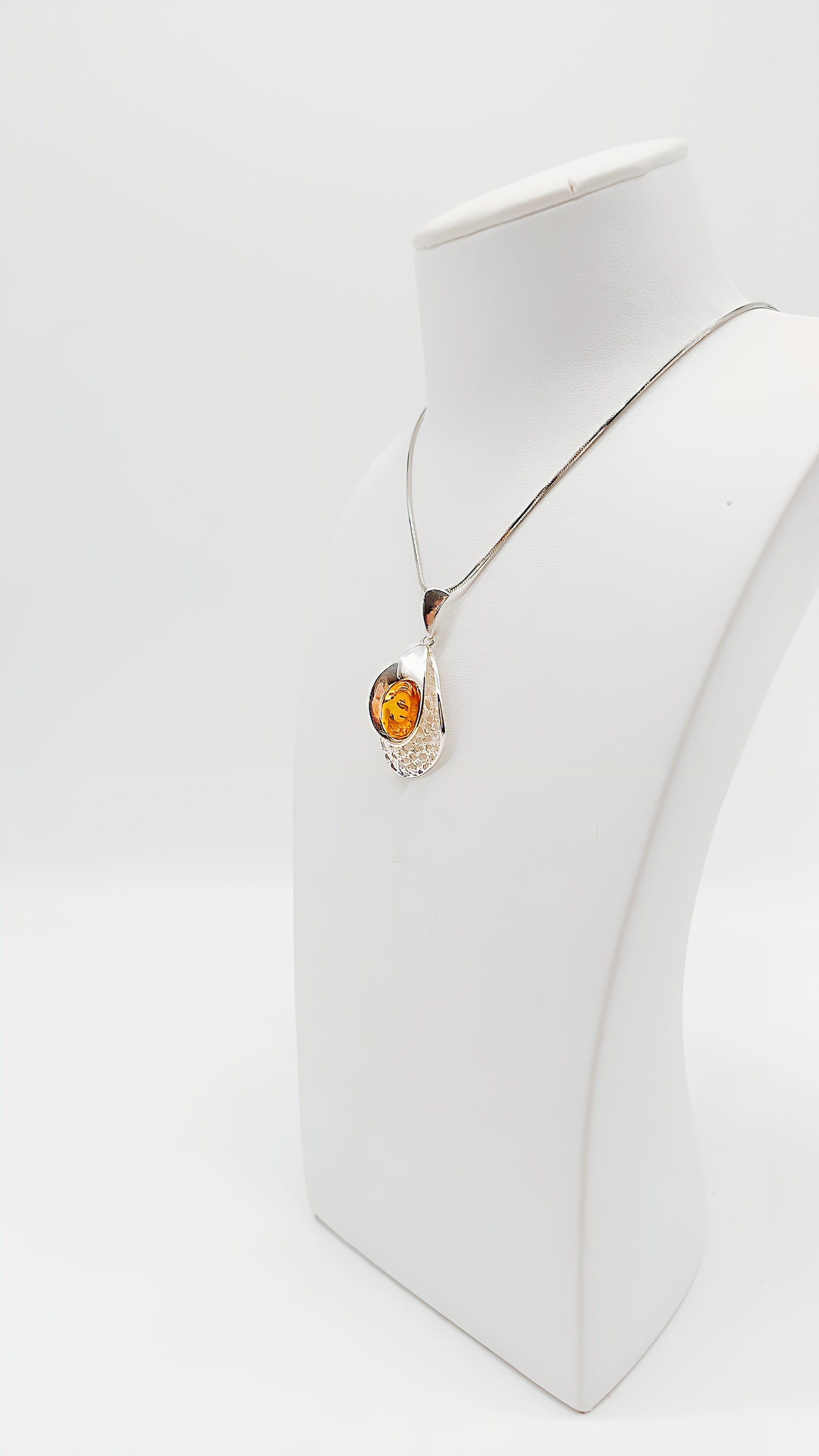 This stunning pendant, crafted from genuine 925 sterling silver, combines the timeless elegance of amber with a modern design. The warm, golden sparkle of the amber is perfectly showcased by the simple yet high-quality silver setting. Every detail of the pendant has been carefully crafted to create a unique piece of jewelry suitable for both special occasions and everyday wear. An accessory that will add a luxurious touch to your jewelry collection and make you shine every time you wear it.