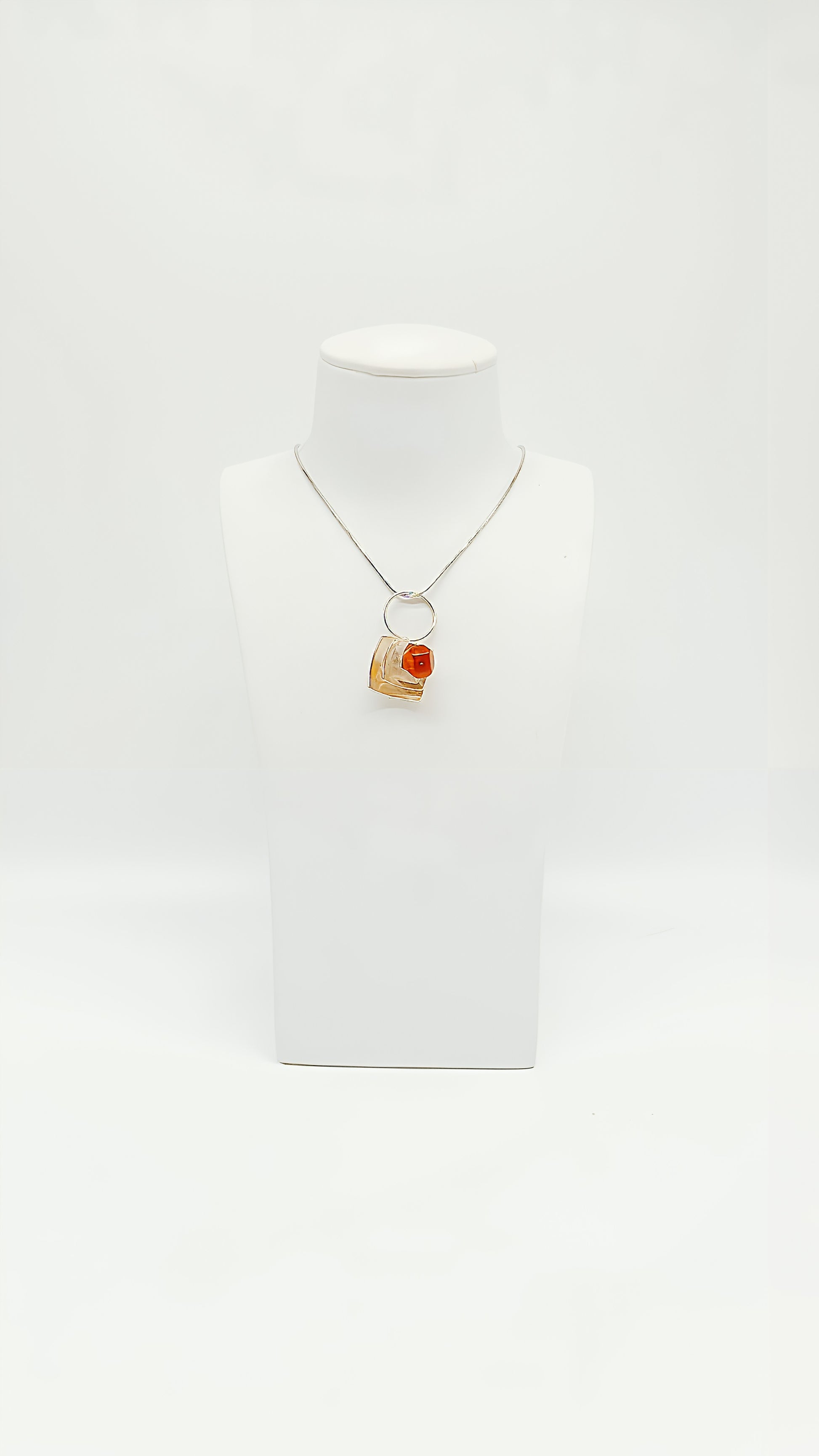 This extraordinary pendant crafted from 925 sterling silver combines modern geometry with the natural beauty of amber. Angular, bright orange amber combined with a transparent setting gives this piece a truly unique appeal. The simple elegance of the silver underscores the unique design and makes this pendant a true eye-catcher. A must-have for anyone seeking modern yet timeless jewelry.