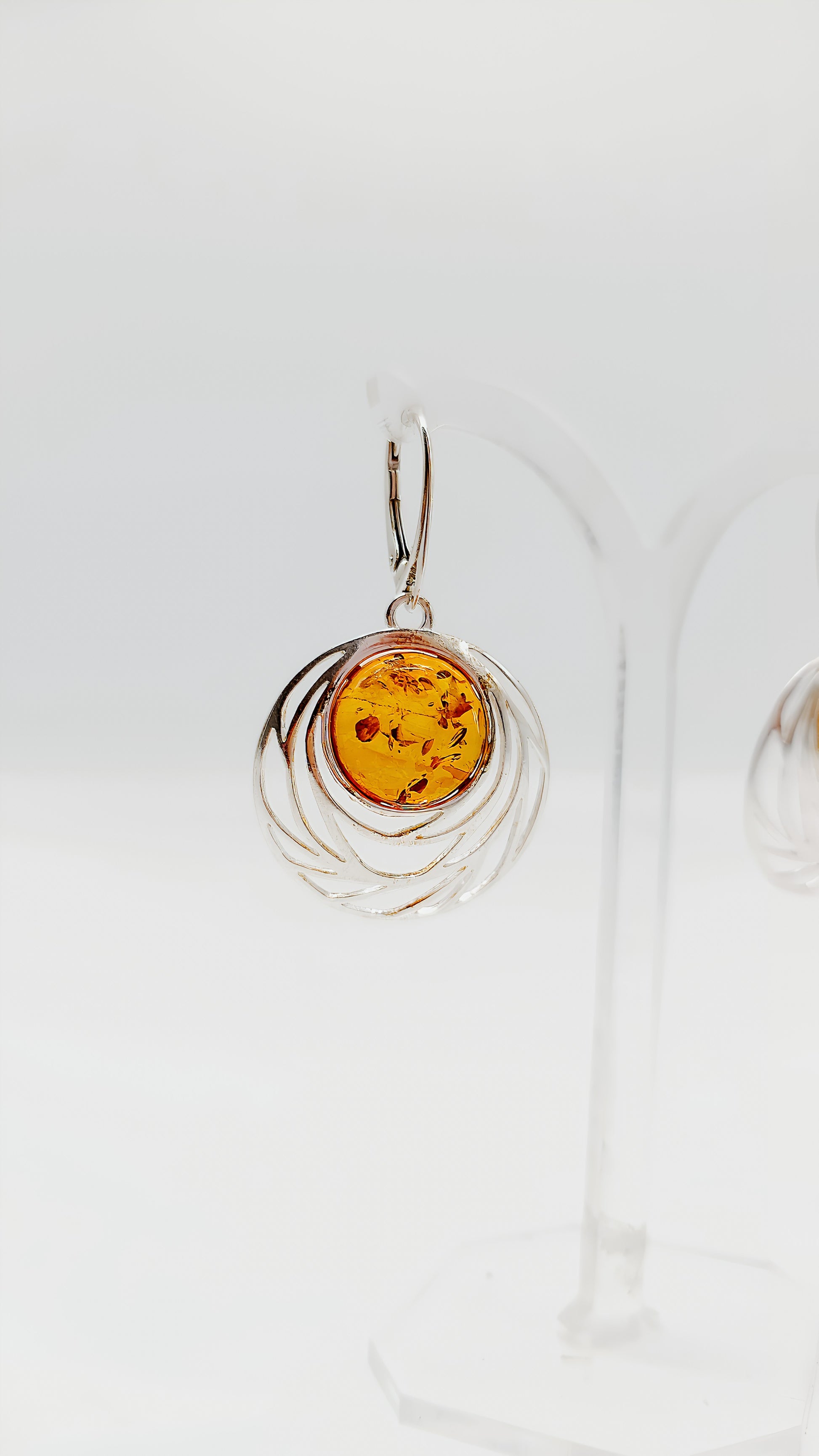 These exclusive 925 sterling silver earrings are a true highlight for jewelry lovers. The radiant golden amber in the center is surrounded by an artfully crafted silver swirl that captures the light and creates a mesmerizing interplay of shine and shadow. Thanks to their high-quality craftsmanship and timeless design, these earrings complement any outfit—whether elegant or casual. The warm glow of the amber harmonizes perfectly with the cool silver, lending them a touch of natural elegance.