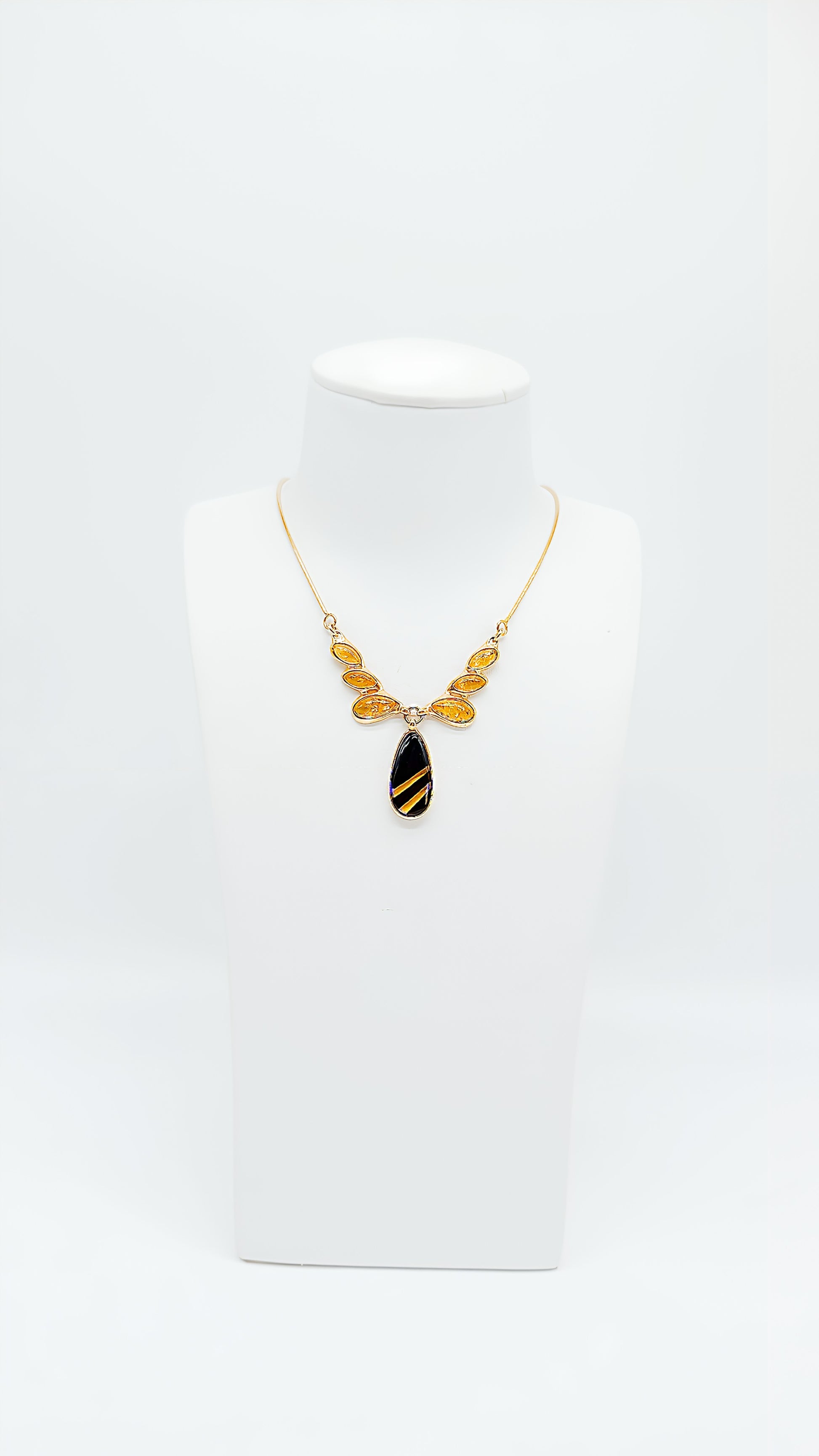This exclusive amber necklace, crafted from gold-plated 925 sterling silver, embodies pure elegance and timeless style. The delicate craftsmanship combines precious amber with a luxurious gold finish, adding a touch of sophistication to any outfit. Particularly noteworthy is the artistic pendant with its unique amber grain—a truly unique piece of nature.