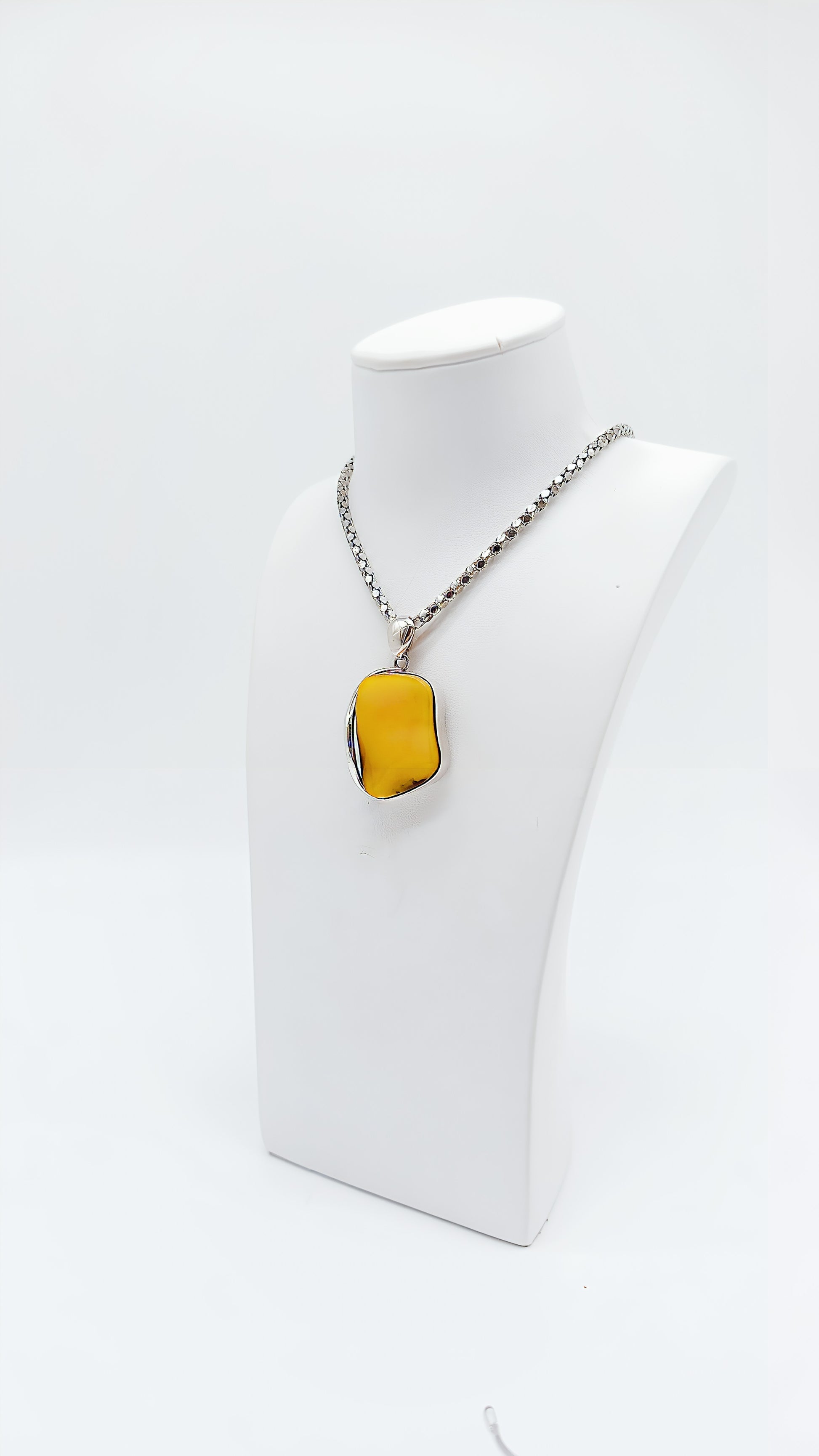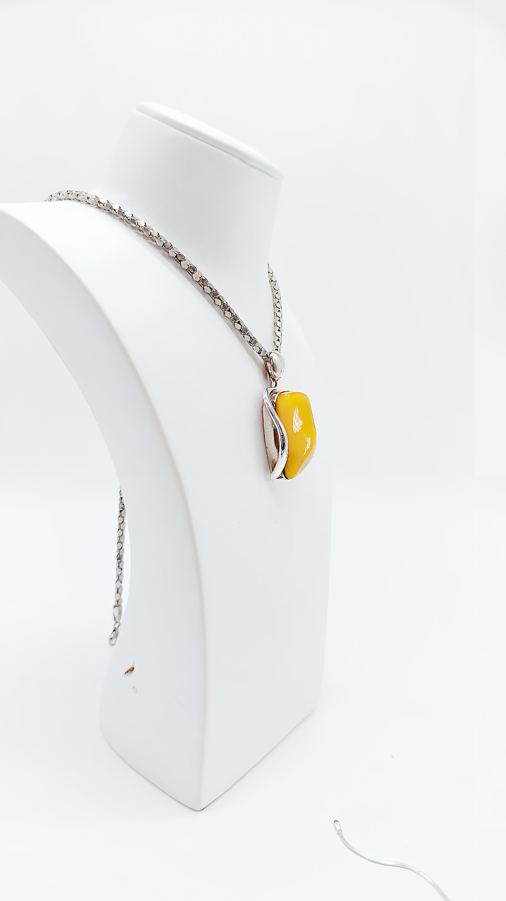 This unique amber pendant made of 925 sterling silver is sure to catch everyone's eye. The golden color of the amber, set in precious silver, creates an elegant yet natural look. Perfect for women who appreciate exclusive, handcrafted jewelry. This unique piece makes a wonderful gift for anniversaries, birthdays, or as a special treat for someone who appreciates natural elegance.