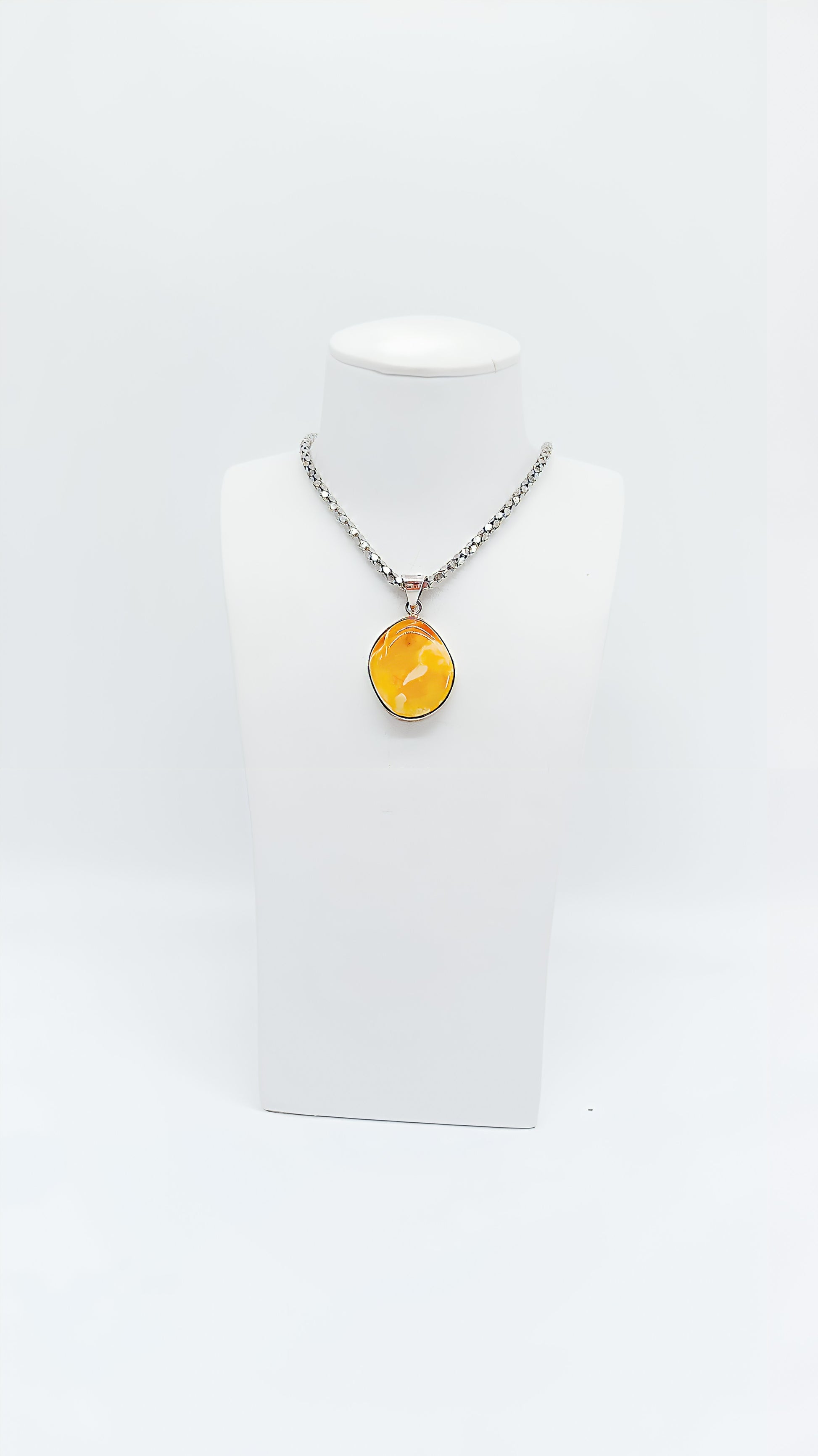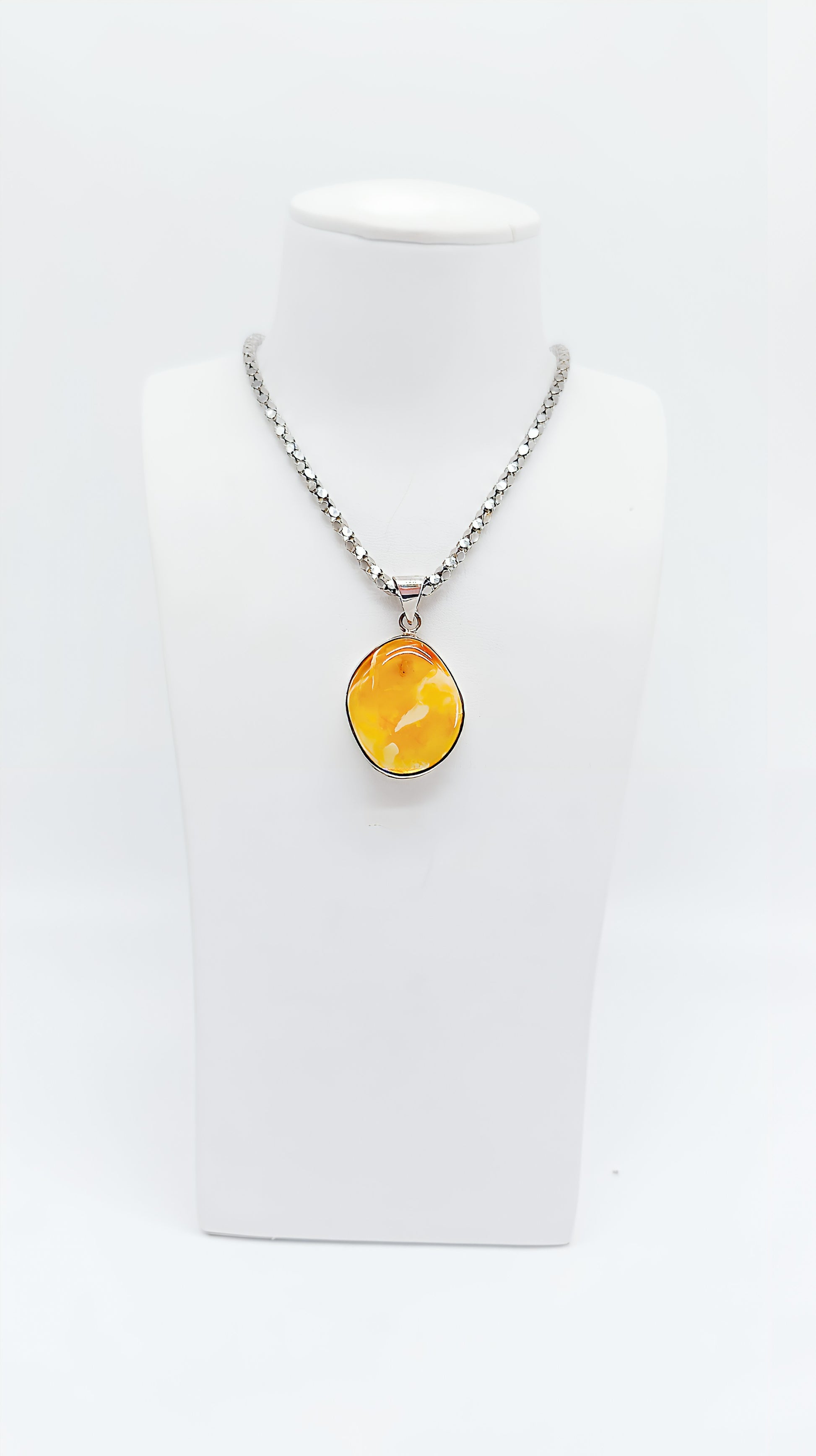 This enchanting amber pendant crafted from 925 sterling silver exudes warmth and elegance. The rich color of the amber is highlighted by the simple yet elegant setting, showcasing every detail of this unique piece. Perfect for women who love natural yet stylish jewelry. This pendant is an ideal gift for birthdays, anniversaries, or to treat yourself.