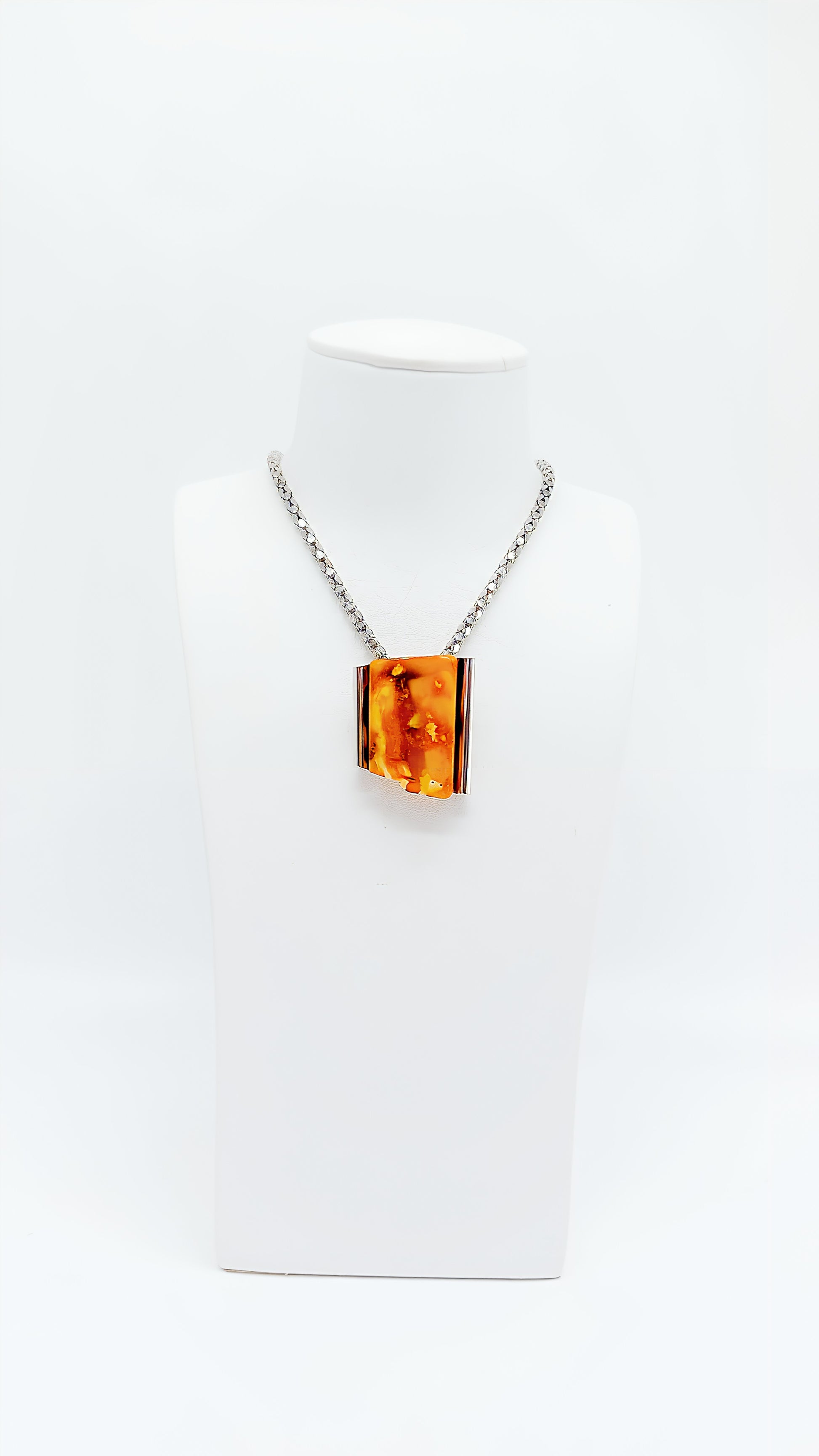 This extraordinary amber pendant crafted from 925 sterling silver is a powerful statement of individuality and elegance. The vibrant golden amber showcases fascinating inclusions, making this unique piece a real eye-catcher. The pendant is perfect for women who want to emphasize their natural style with a touch of luxury. Whether as a gift or for yourself, this pendant is ideal for special occasions or everyday elegance.
