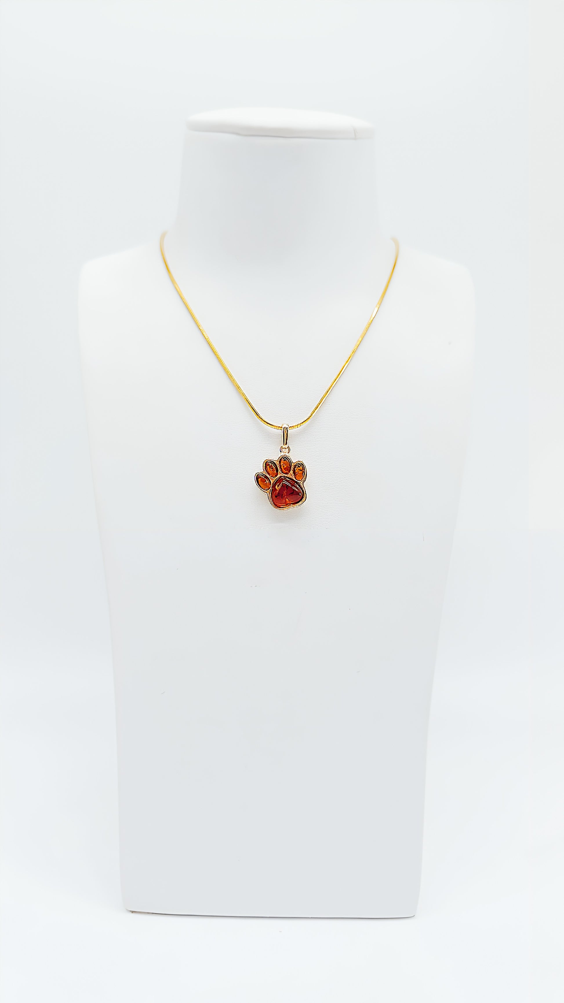 This unique paw-shaped pendant made of gold-plated 925 sterling silver is a beautiful accessory that stylishly combines a love of animals and nature. The shimmering amber in various colors gives the pendant a warm and natural glow. The combination of warm amber and lustrous gold makes this piece of jewelry a timeless classic. This pendant is ideal as a gift for any animal lover or as a symbol of a special animal friend. It pairs perfectly with casual outfits, but is also an elegant highlight for special occasions.