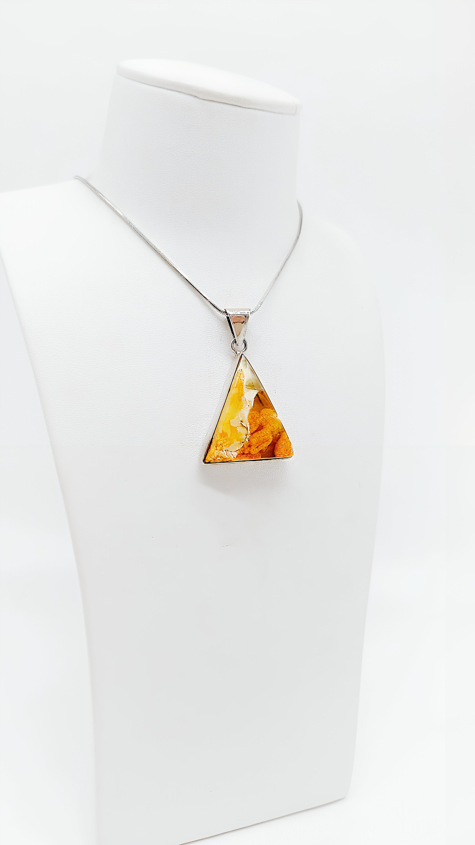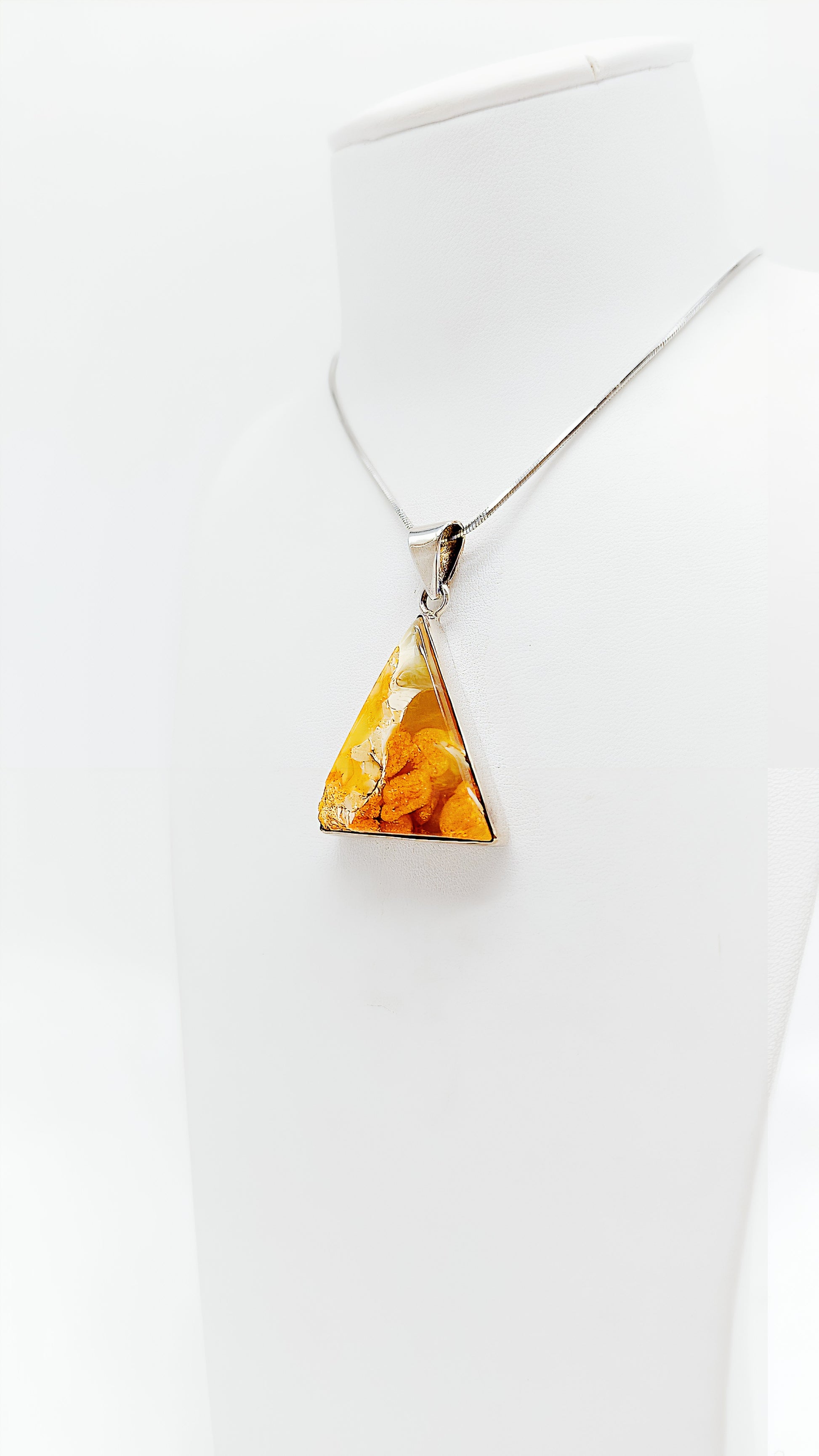 Triangular amber pendant made of 925 silver for women