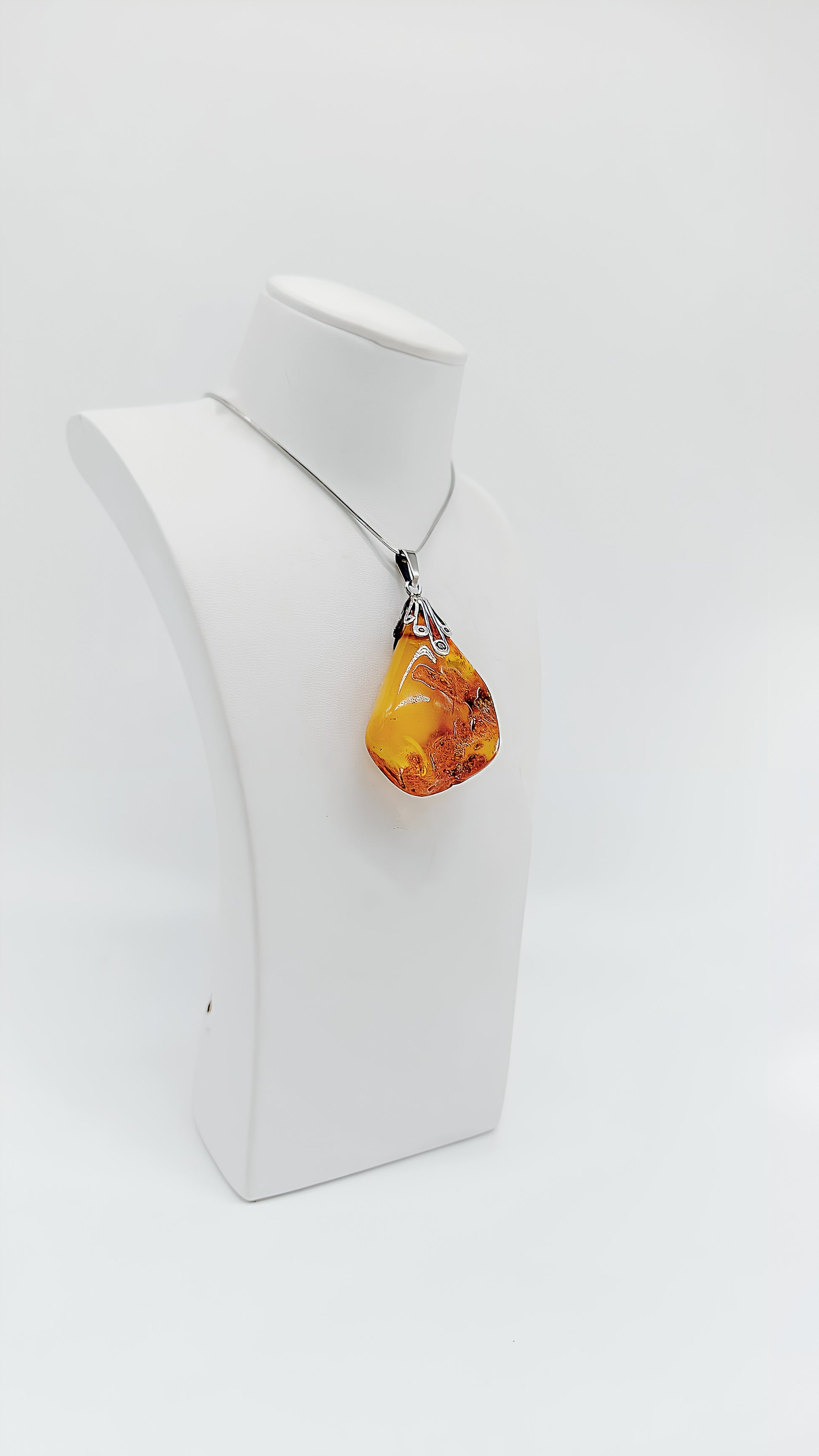 This unique amber pendant combines the beauty of nature with artistic craftsmanship. The drop of genuine natural amber captivates with its warm honey and caramel tones and natural inclusions, making it unique . The elaborately decorated 925 silver setting perfectly showcases the amber and lends the piece a special elegance. An ideal accessory for women who love high-quality, stylish jewelry—perfect as a gift for birthdays, anniversaries, or special occasions.