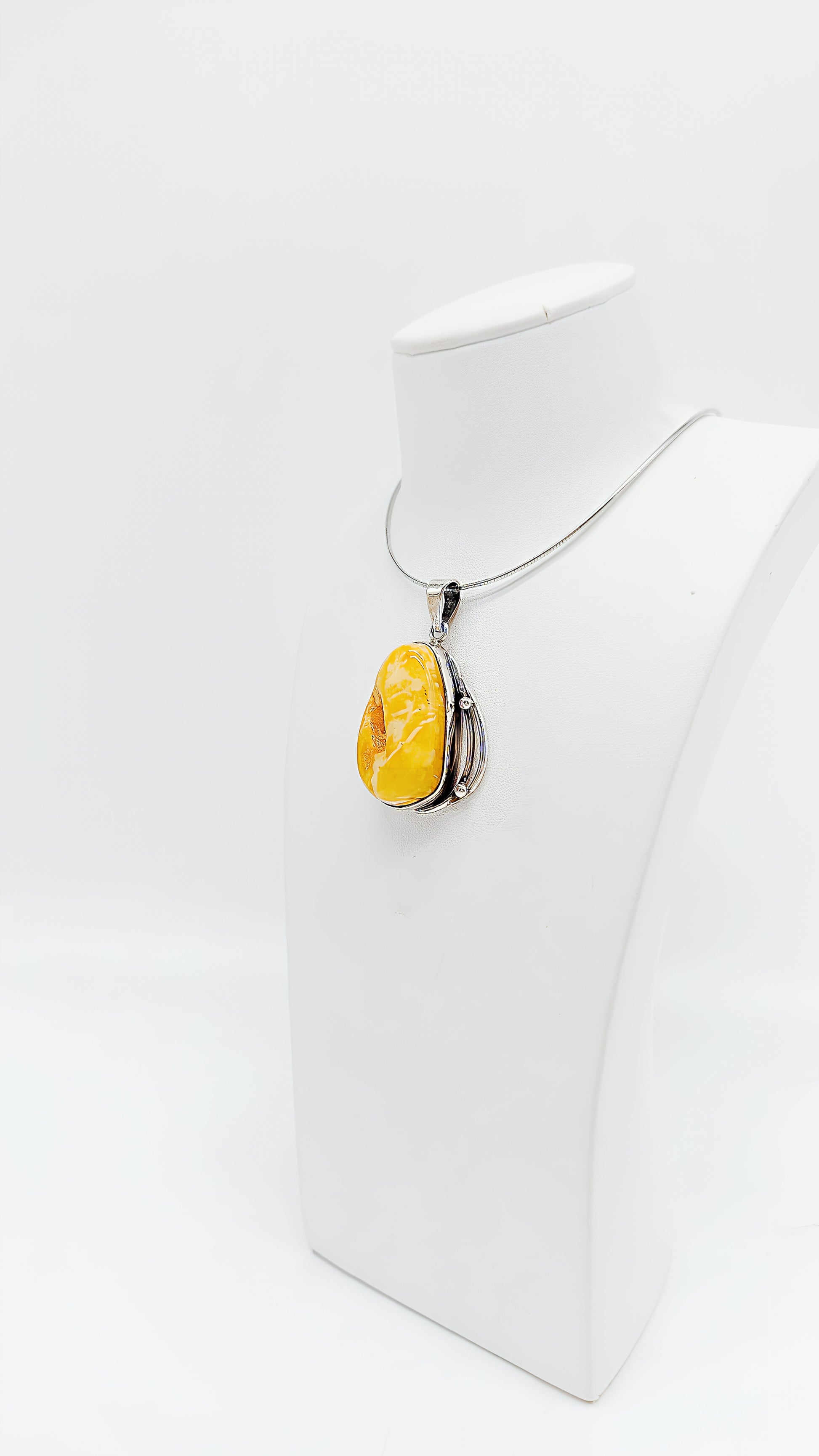 This beautiful amber pendant, with its vibrant yellow color, captures the beauty of nature in a sophisticated piece of jewelry. The drop-shaped amber setting, crafted from high-quality 925 sterling silver, highlights the unique grain of the amber and adds a special touch to any look. Perfect for women who love elegant and natural jewelry. This timeless piece of jewelry is ideal as a gift for birthdays, anniversaries, or special occasions. The warm radiance of amber blends with any outfit, making the pendant the perfect companion for everyday wear or special occasions.