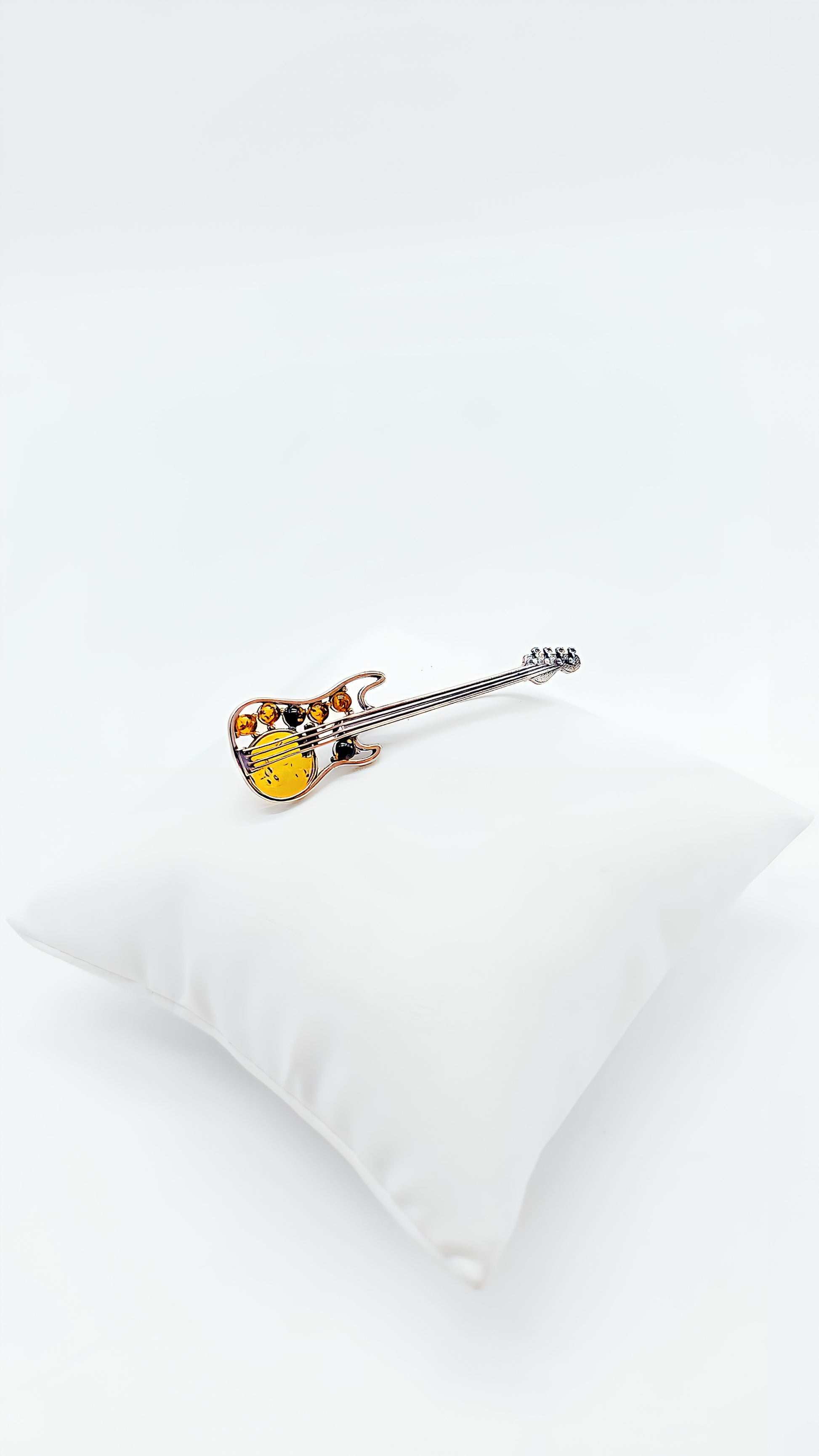 Music meets craftsmanship: guitar brooch made of 925 sterling silver and amber