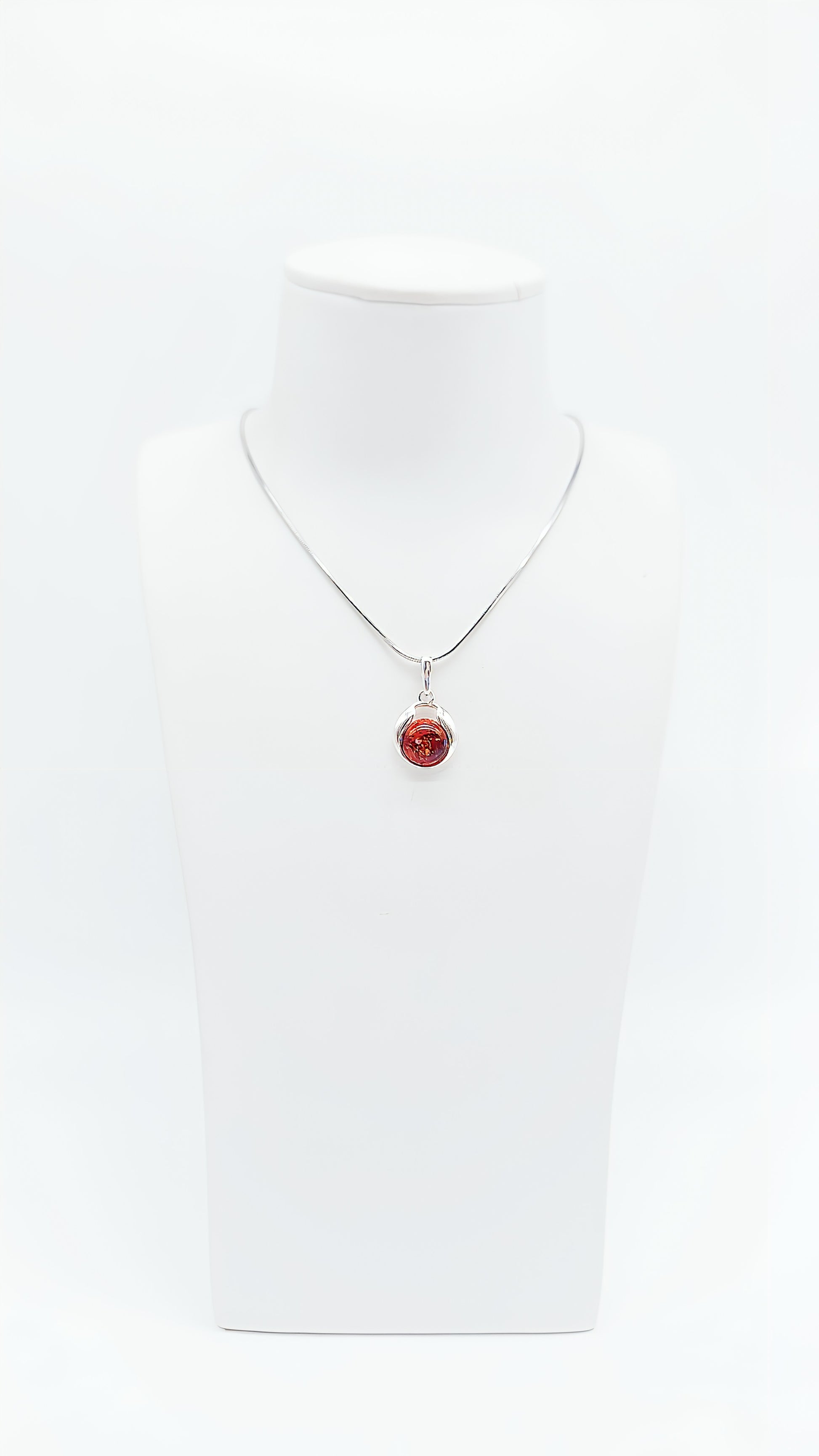 This elegant pendant crafted from 925 sterling silver with a sparkling amber element is the epitome of timeless elegance. The warm, cognac-colored amber radiates a natural beauty, perfectly showcased by the simple silver setting. This jewelry is ideal for women who prefer a classic yet sophisticated style. Whether as an everyday accessory or for special occasions, this pendant perfectly complements any outfit. This pendant also makes a wonderful gift choice to commemorate special moments such as birthdays, anniversaries, or other celebratory occasions.