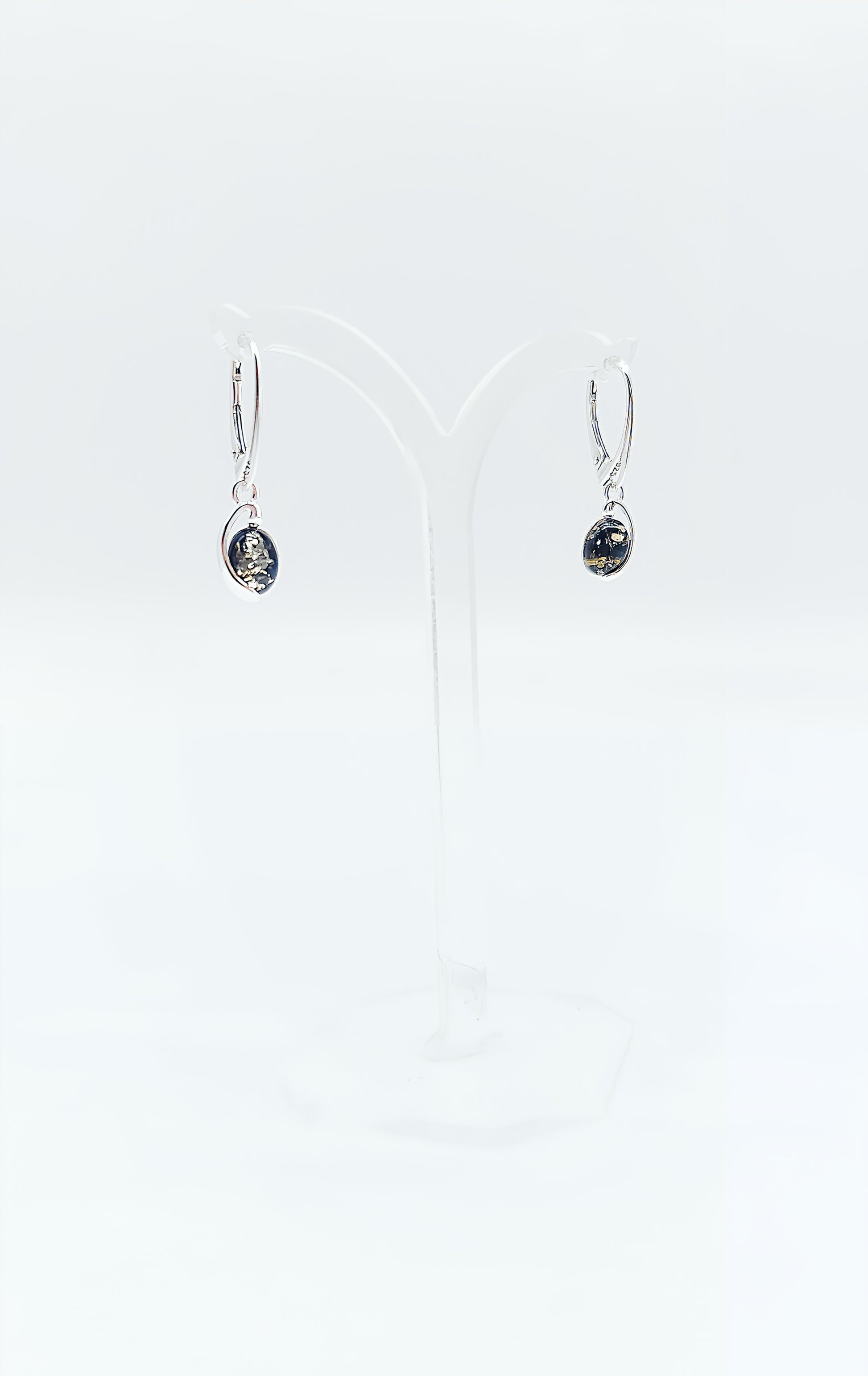 925 Sterling Silver Earrings – Dark Amber in Oval Shape