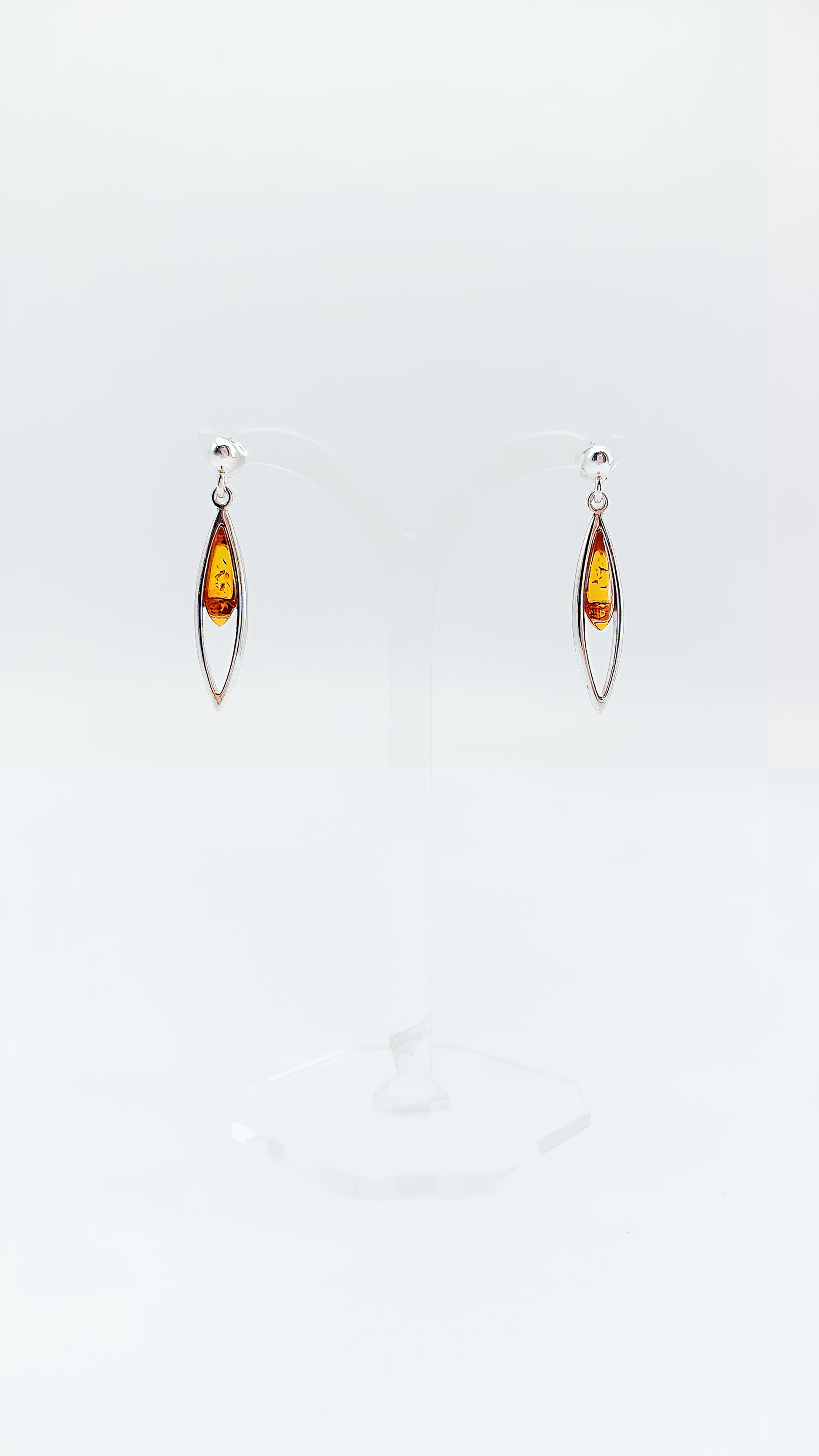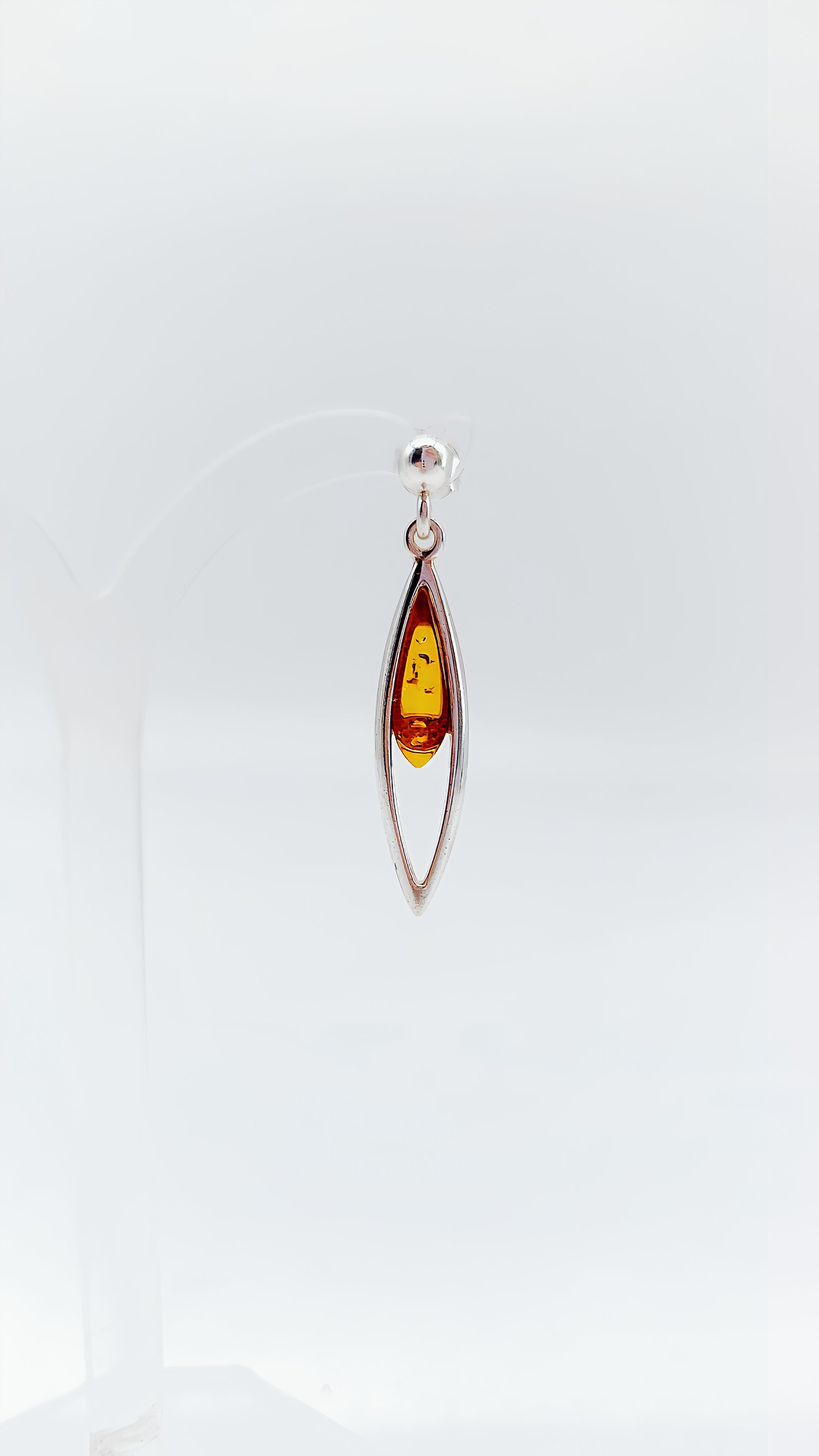 These elegant 925 sterling silver earrings are a stylish accessory that blends seamlessly with any look. The teardrop-shaped amber stone is enclosed in a simple, open silver setting, highlighting the amber's natural luster. The length and lightweight design make these earrings ideal for everyday wear or special occasions. Amber, known for its warming energy and protection, lends these earrings a special radiance. They are the perfect gift for anyone who appreciates minimalist jewelry and natural beauty.