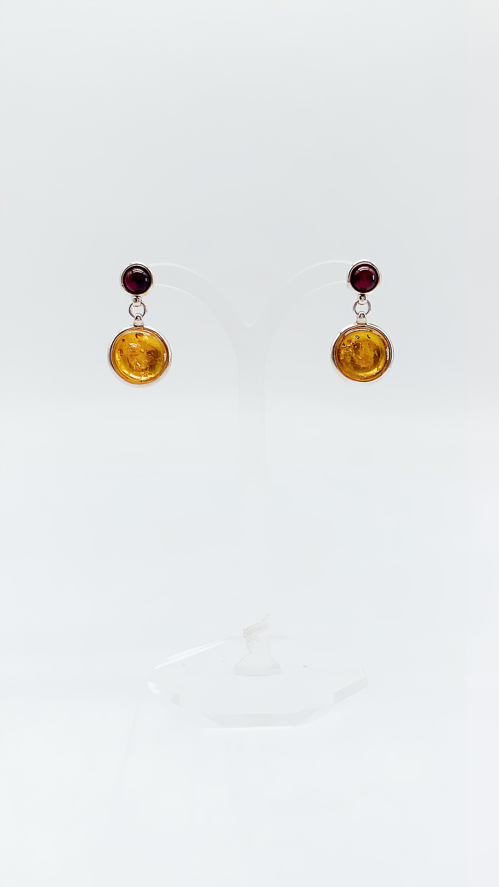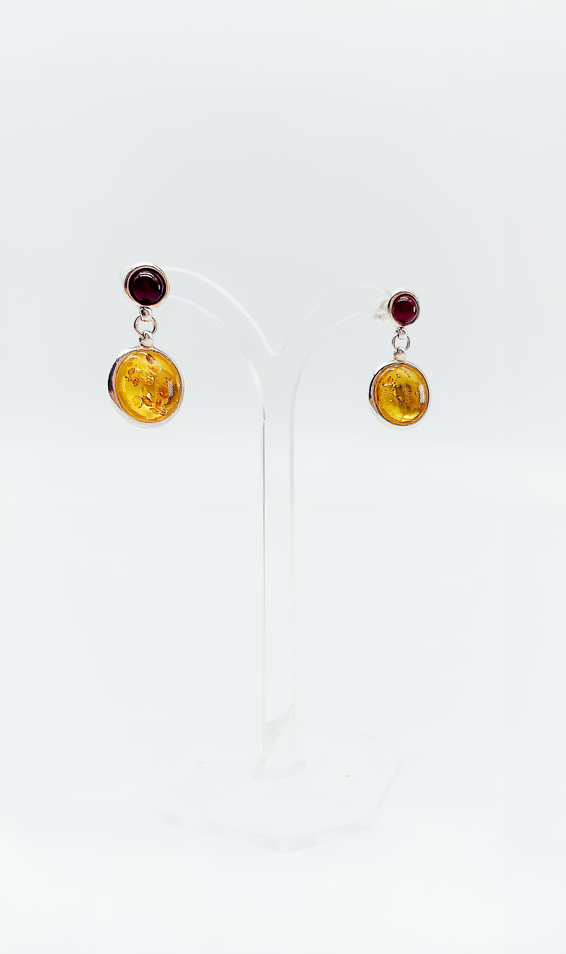 These charming 925 sterling silver stud earrings add an elegant touch with their unique combination of golden yellow and deep red amber. Amber, known for its warm and sparkling radiance, is harmoniously combined in these stud earrings, enhancing any outfit with a natural elegance. Whether for everyday wear or special occasions, these stud earrings add a special touch to any look. The contrast between the golden and red amber creates a fascinating interplay of color and light.
