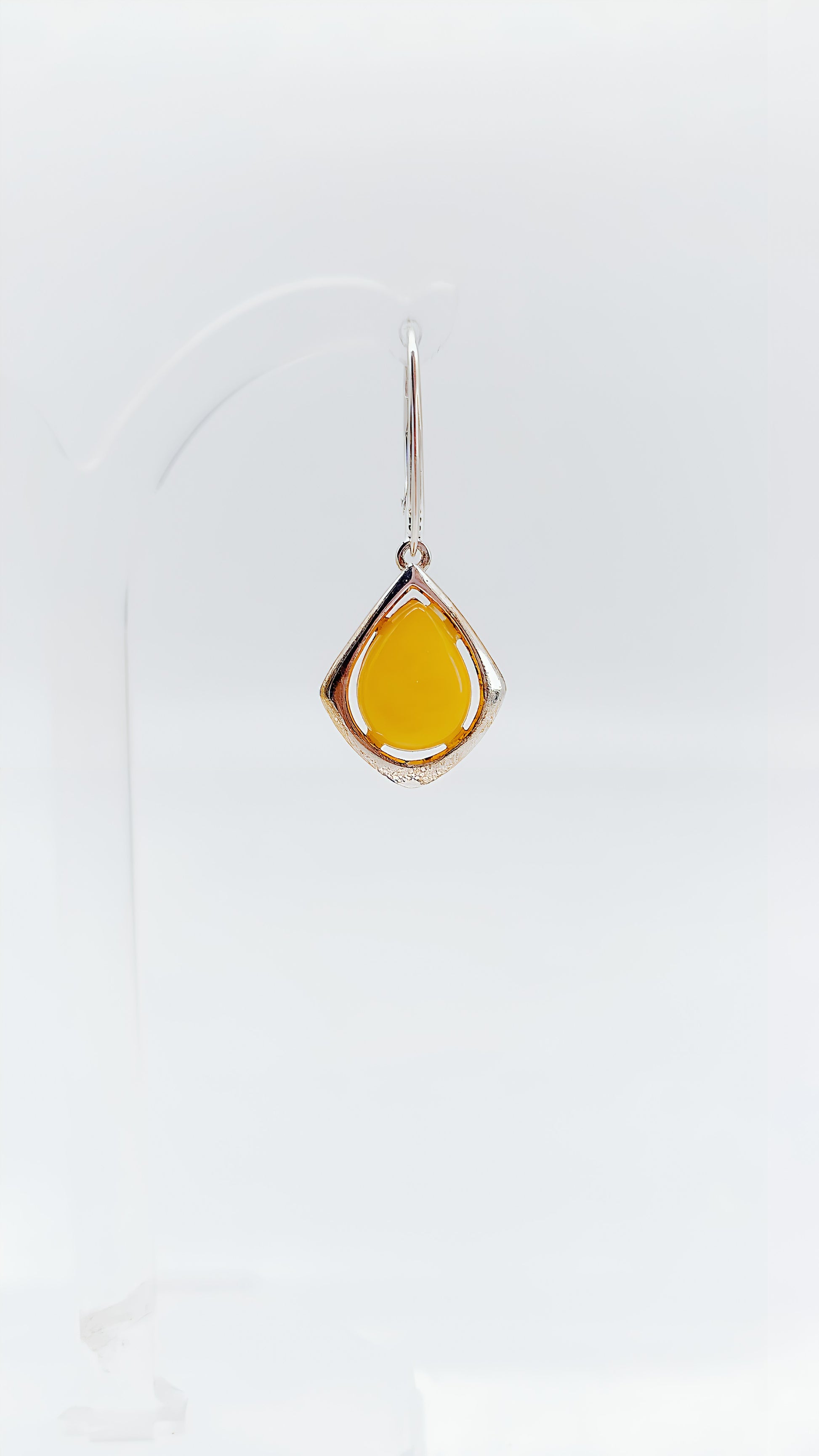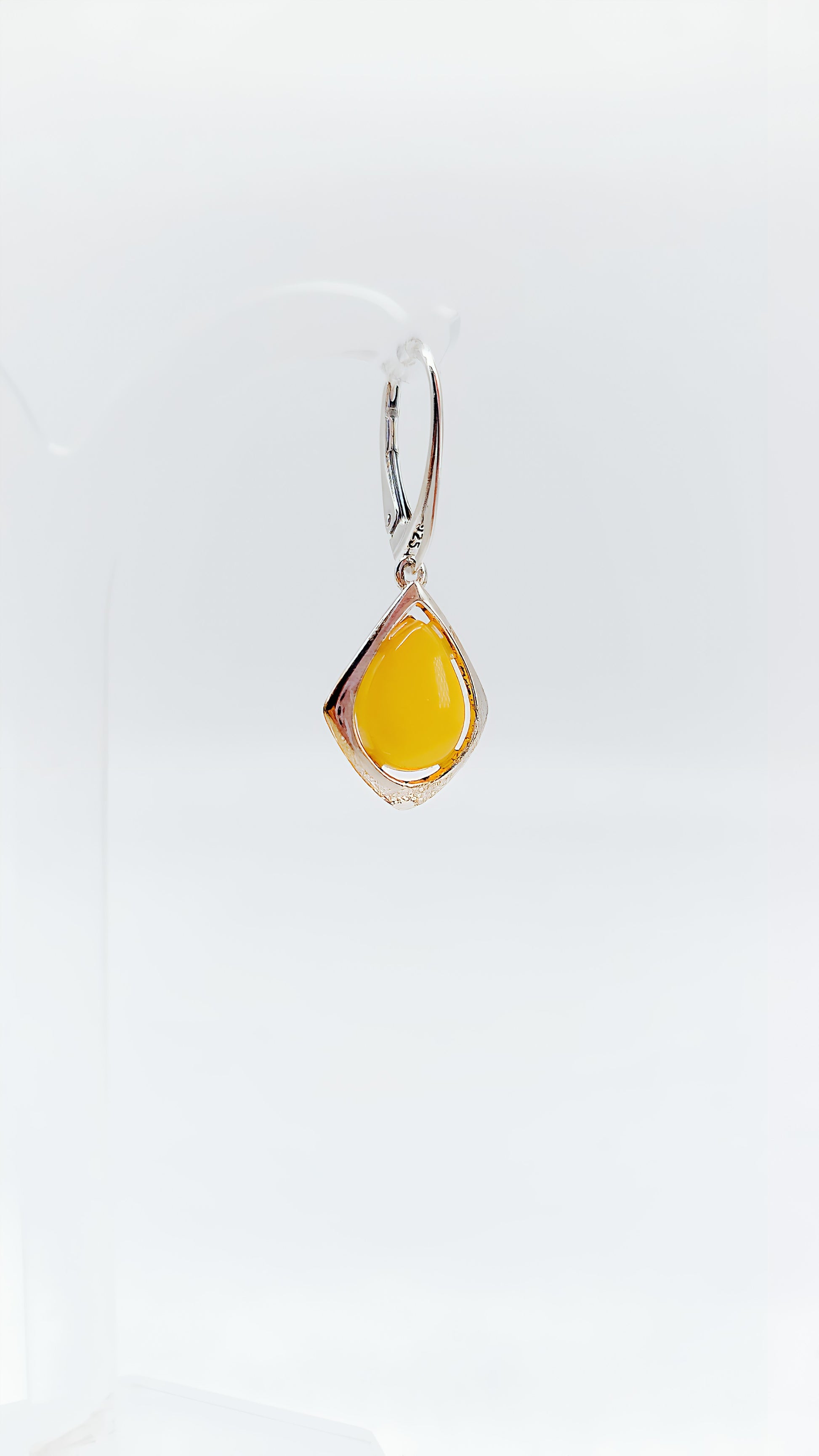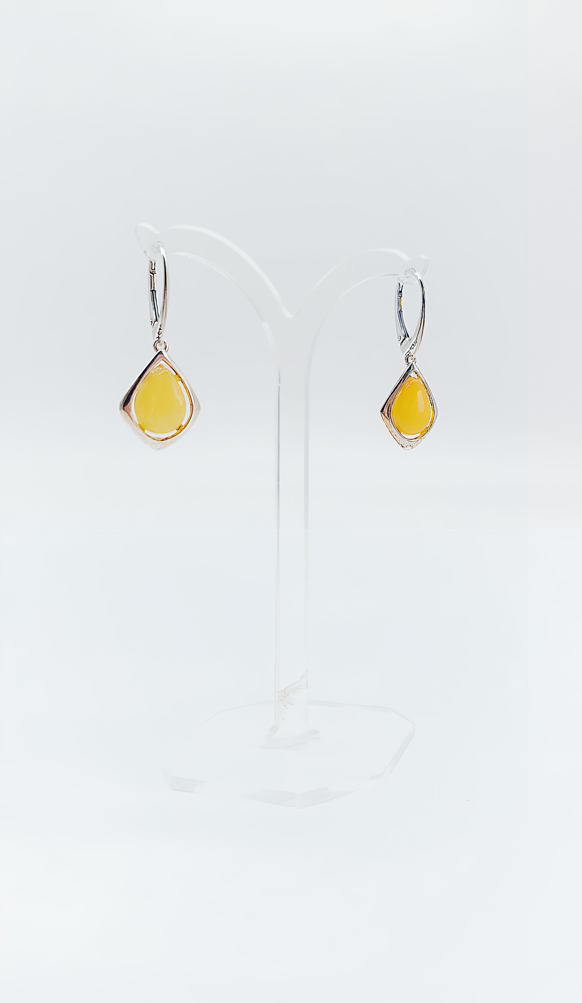 These elegant earrings made of 925 sterling silver and radiant yellow amber are a true jewelry highlight. The luminous, drop-shaped amber is framed by fine silver, adding a warm and elegant touch to any outfit. The warm yellow hue of the amber gently reflects the light, making these earrings ideal for everyday wear or special occasions. Women who appreciate understated elegance and natural materials will love these earrings. They also make the perfect gift for special occasions such as birthdays or anniversaries.
