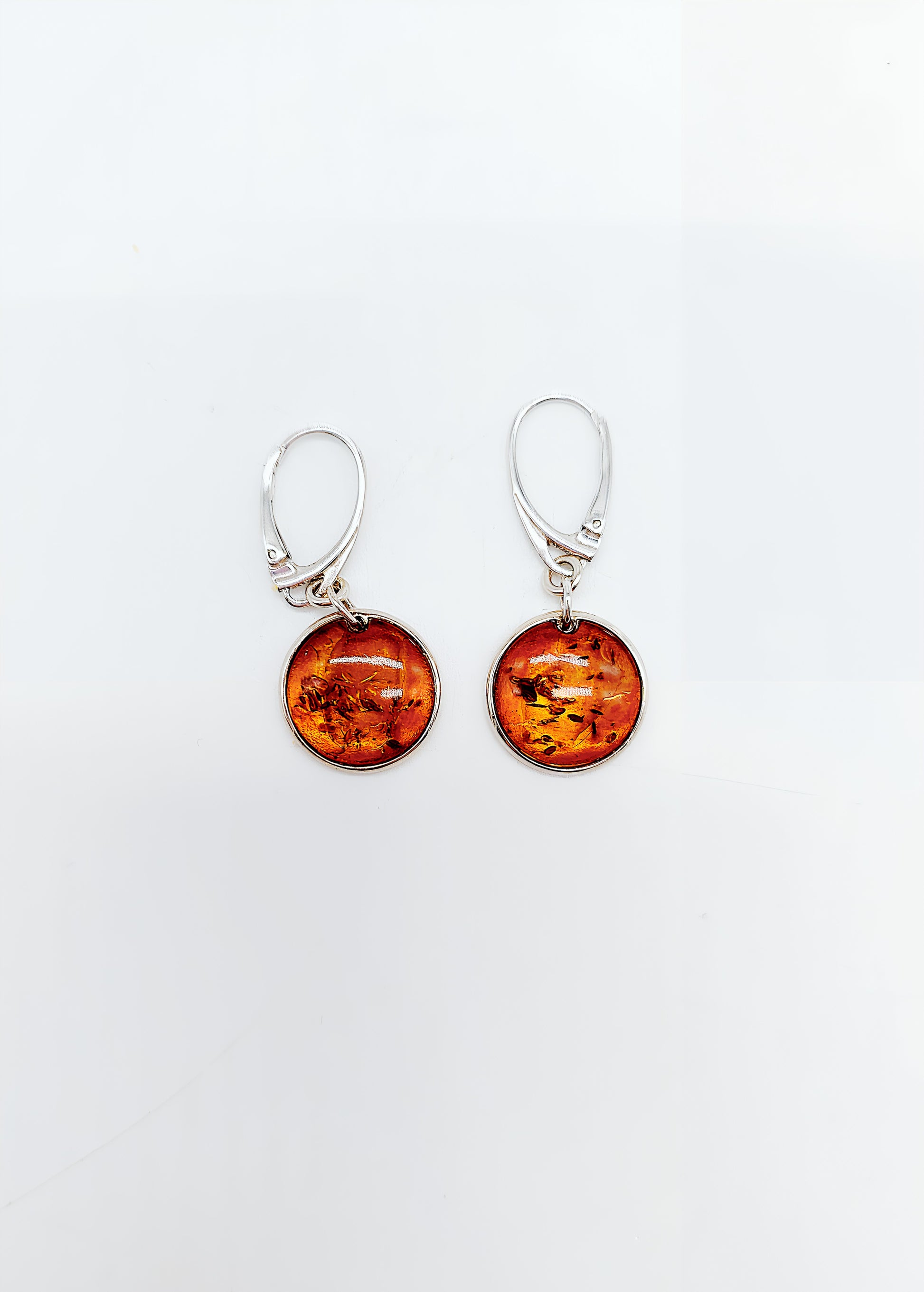 These elegant 925 sterling silver earrings combine classic design with the natural beauty of genuine amber. The orange natural stone shimmers warmly and vibrantly—set in lustrous silver, they create a high-quality piece with a timeless appeal. Measuring 2.2 cm x 1.4 cm, the earrings are understated yet striking.