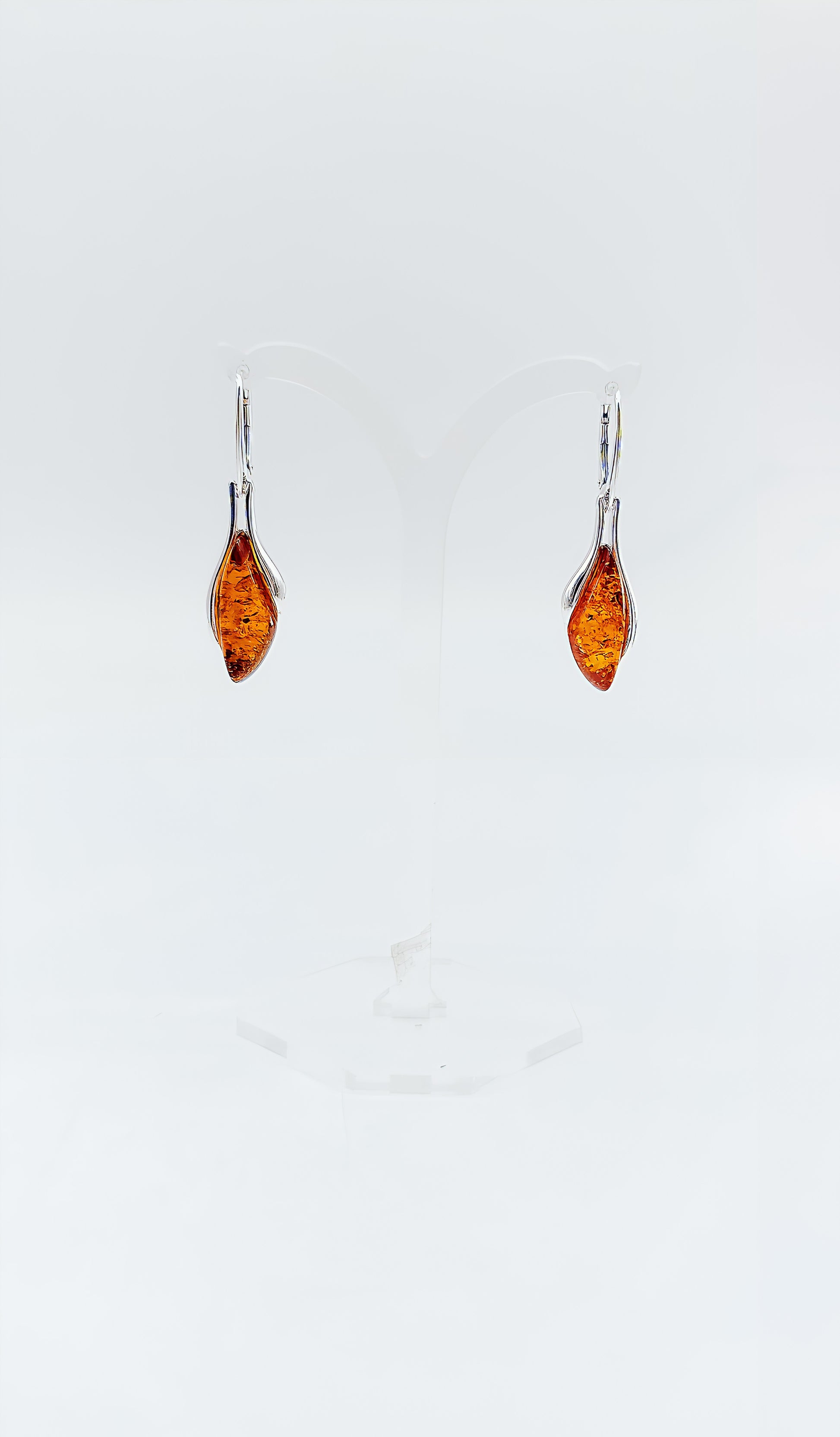 Amber earrings in flame shape – Exclusive jewelry made of silver