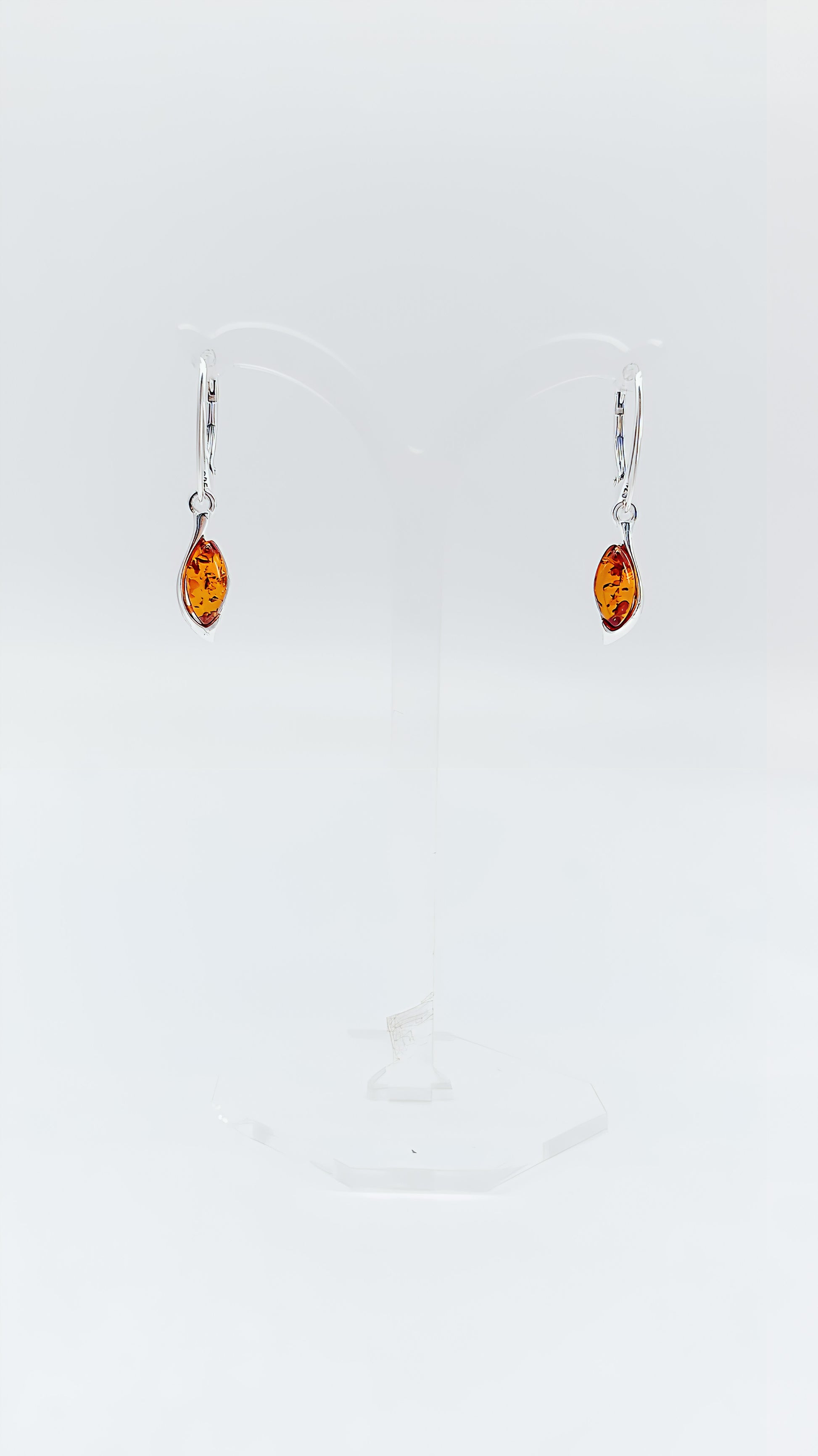 These elegant dangle earrings made of 925 sterling silver and warm, orange amber combine stylish design with natural beauty. The luminous amber, set in a delicate silver setting, shimmers in the light and brightens any outfit. The harmonious shape of the earrings emphasizes the natural luminosity of the amber, making them a perfect companion for everyday wear and special occasions. These dangle earrings are an ideal gift for women who love timeless elegance and natural materials.