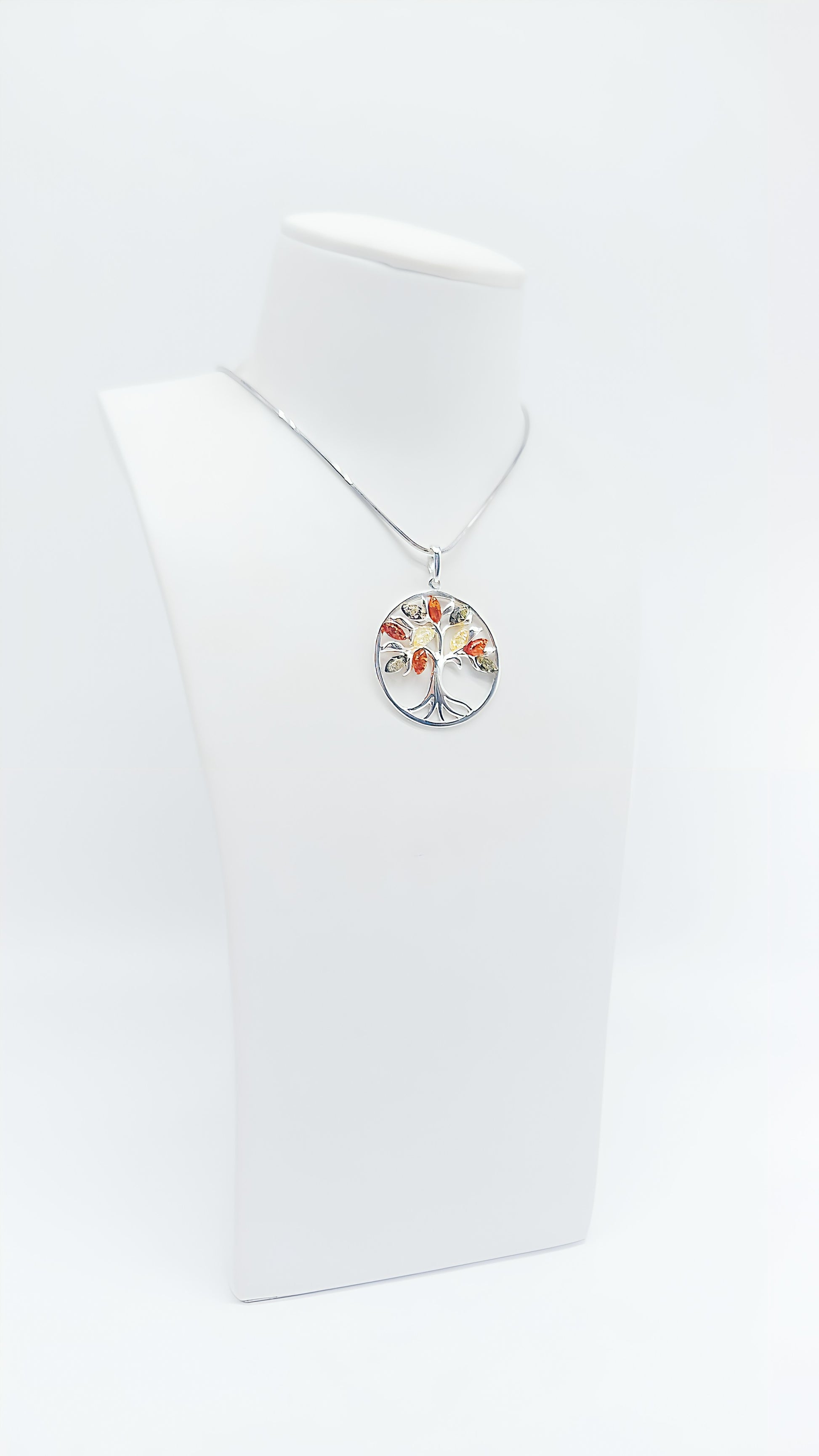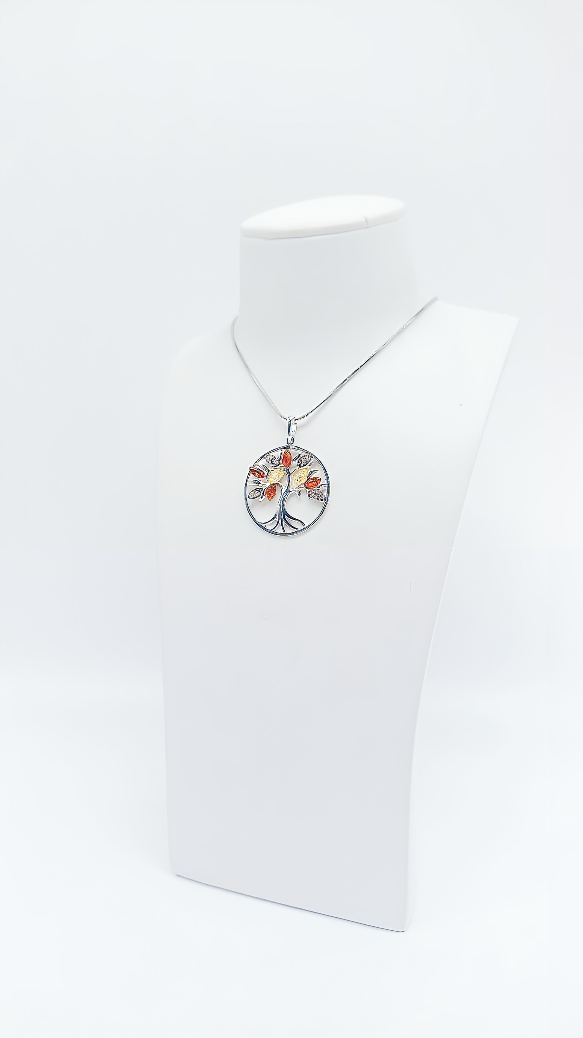 Tree of Life Pendant: Silver and colorful amber in harmony