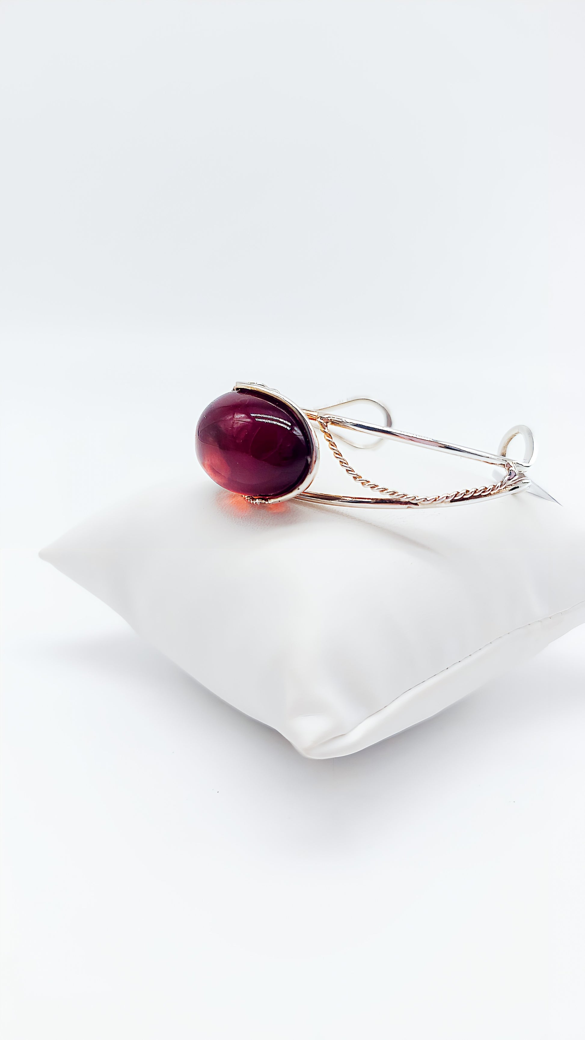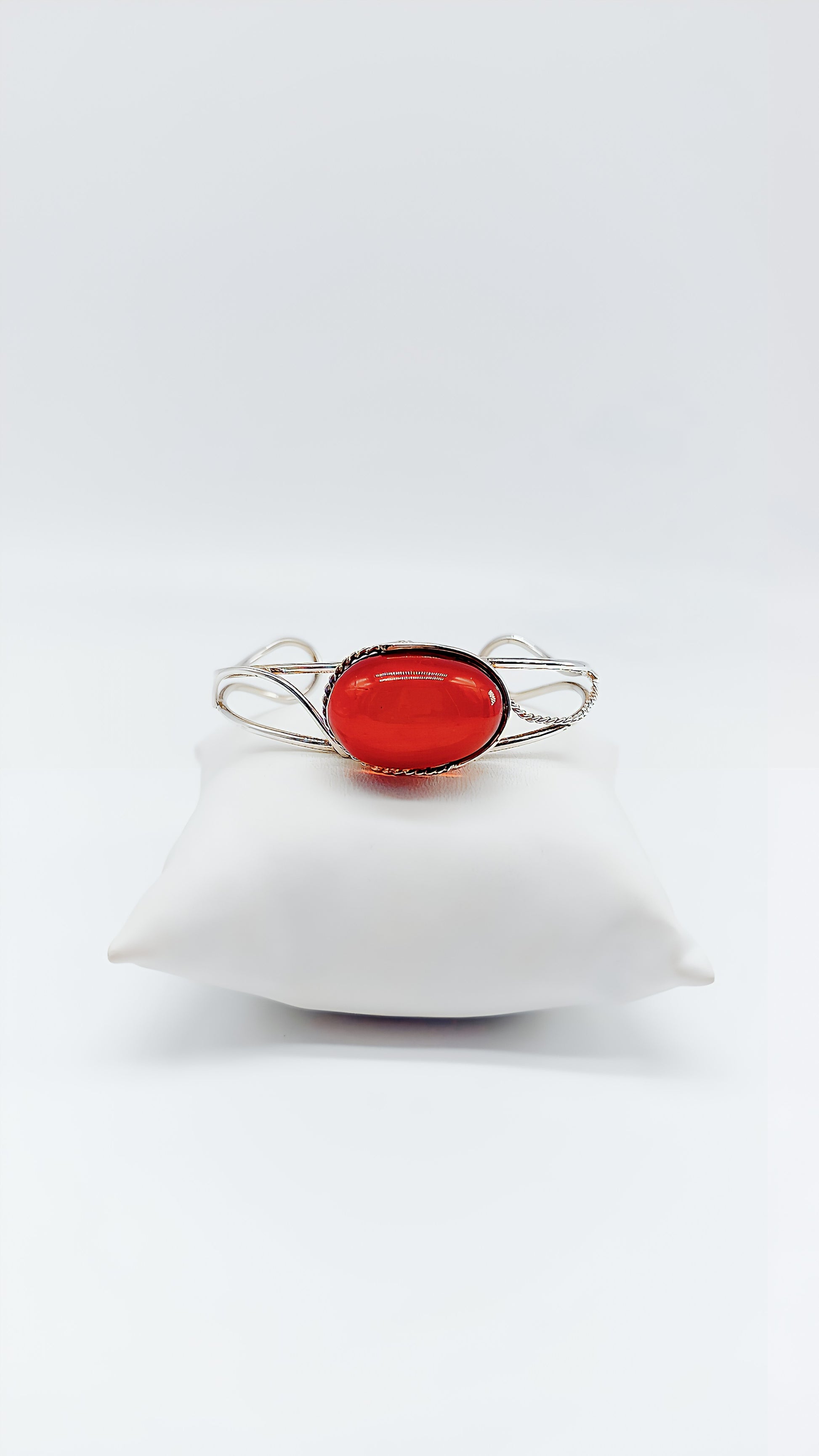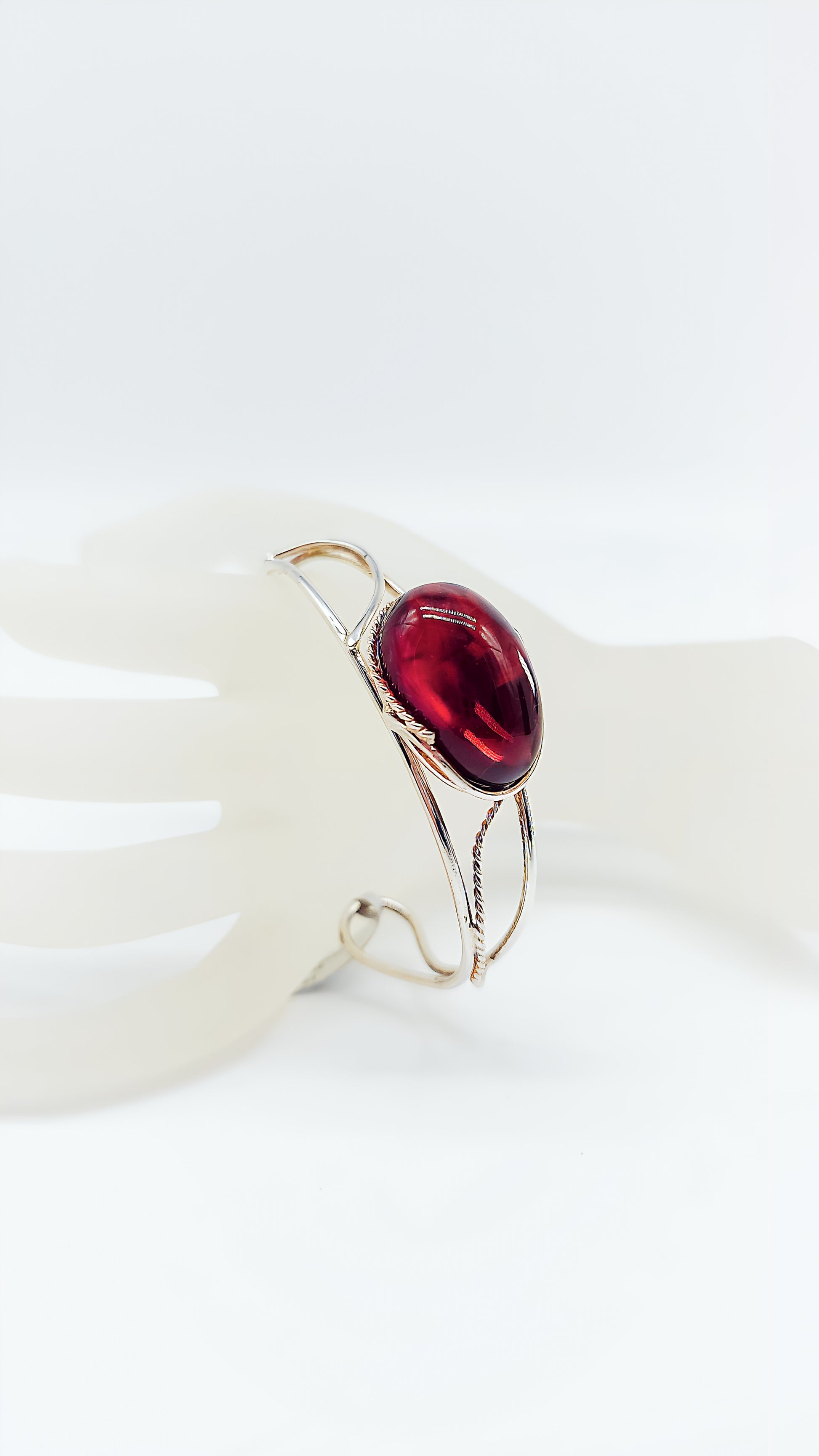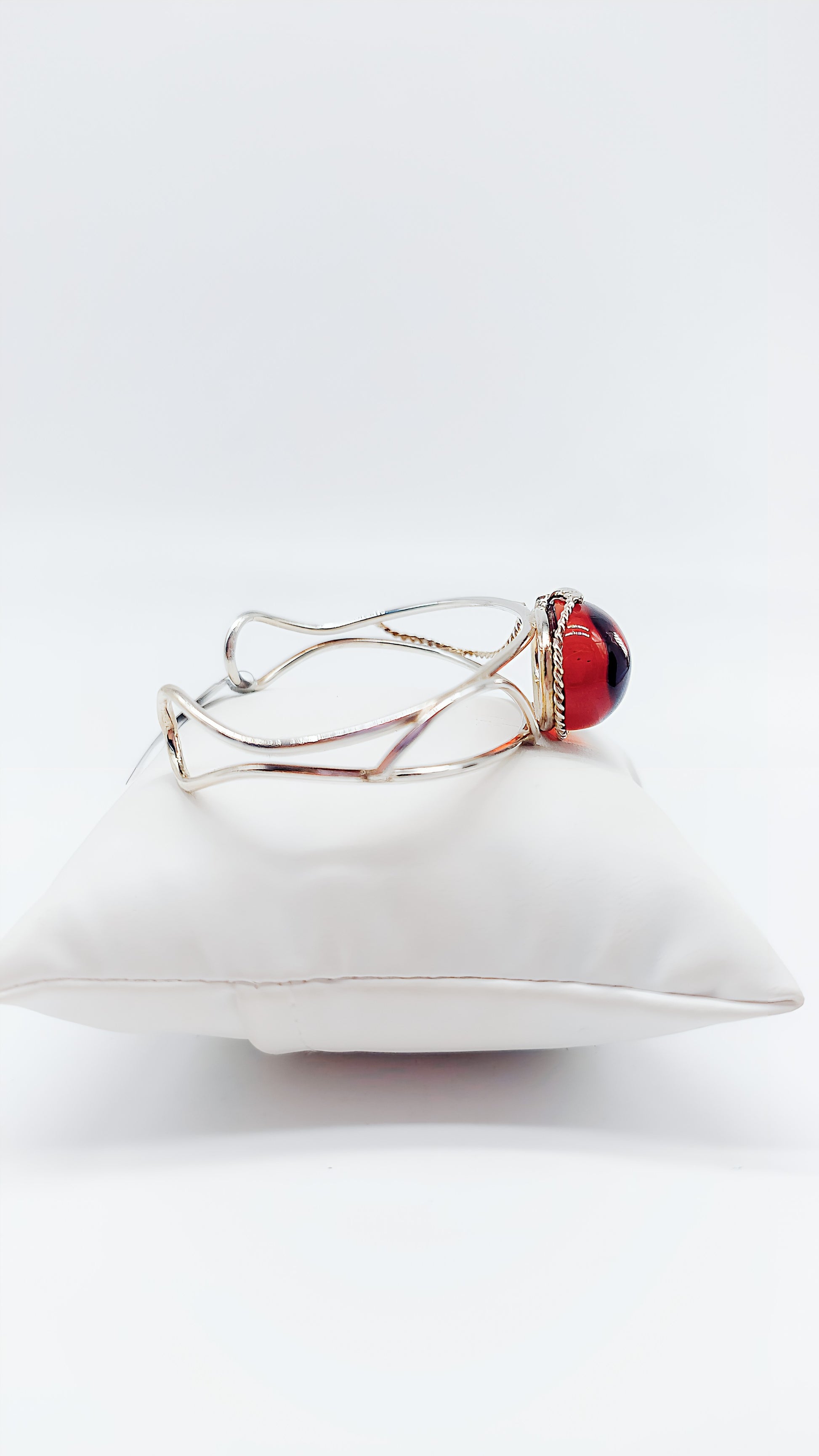 This exclusive 925 sterling silver bangle combines modern design with the captivating beauty of genuine, deep red amber . The vibrant red stone is set in a delicate silver setting, lending it an elegant lightness. Thanks to the high-quality craftsmanship, this piece of jewelry is comfortable to wear and a timeless eye-catcher . A perfect accessory for style-conscious women or as a special gift for birthdays, anniversaries, or Christmas.