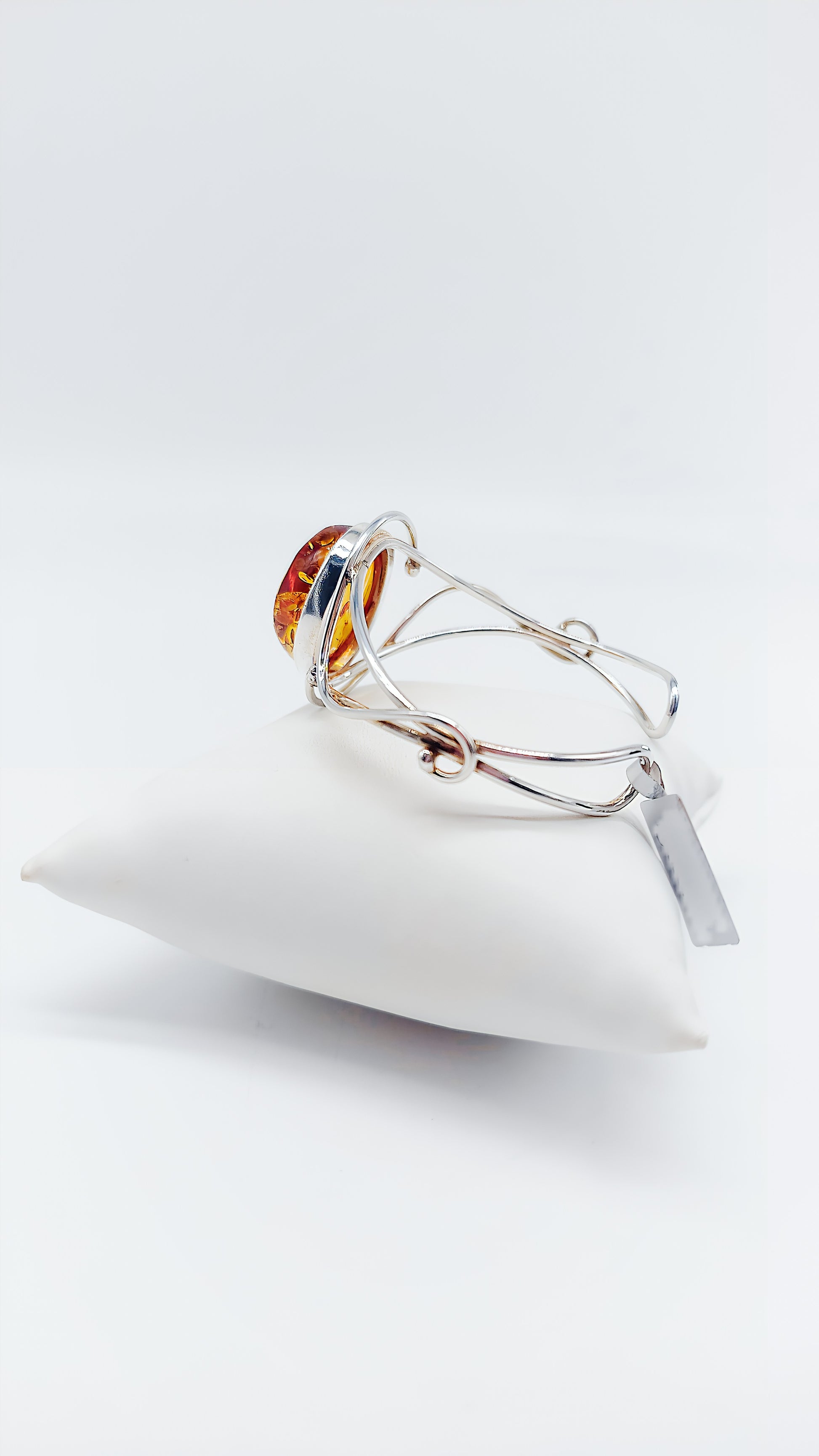 Natural stone jewelry – amber bangle in filigree silver