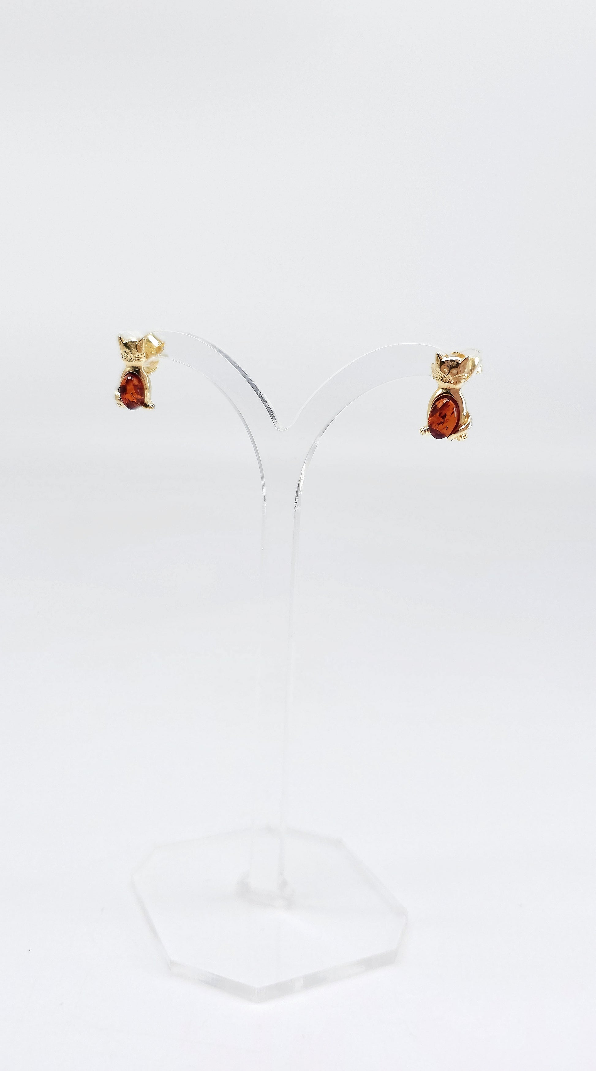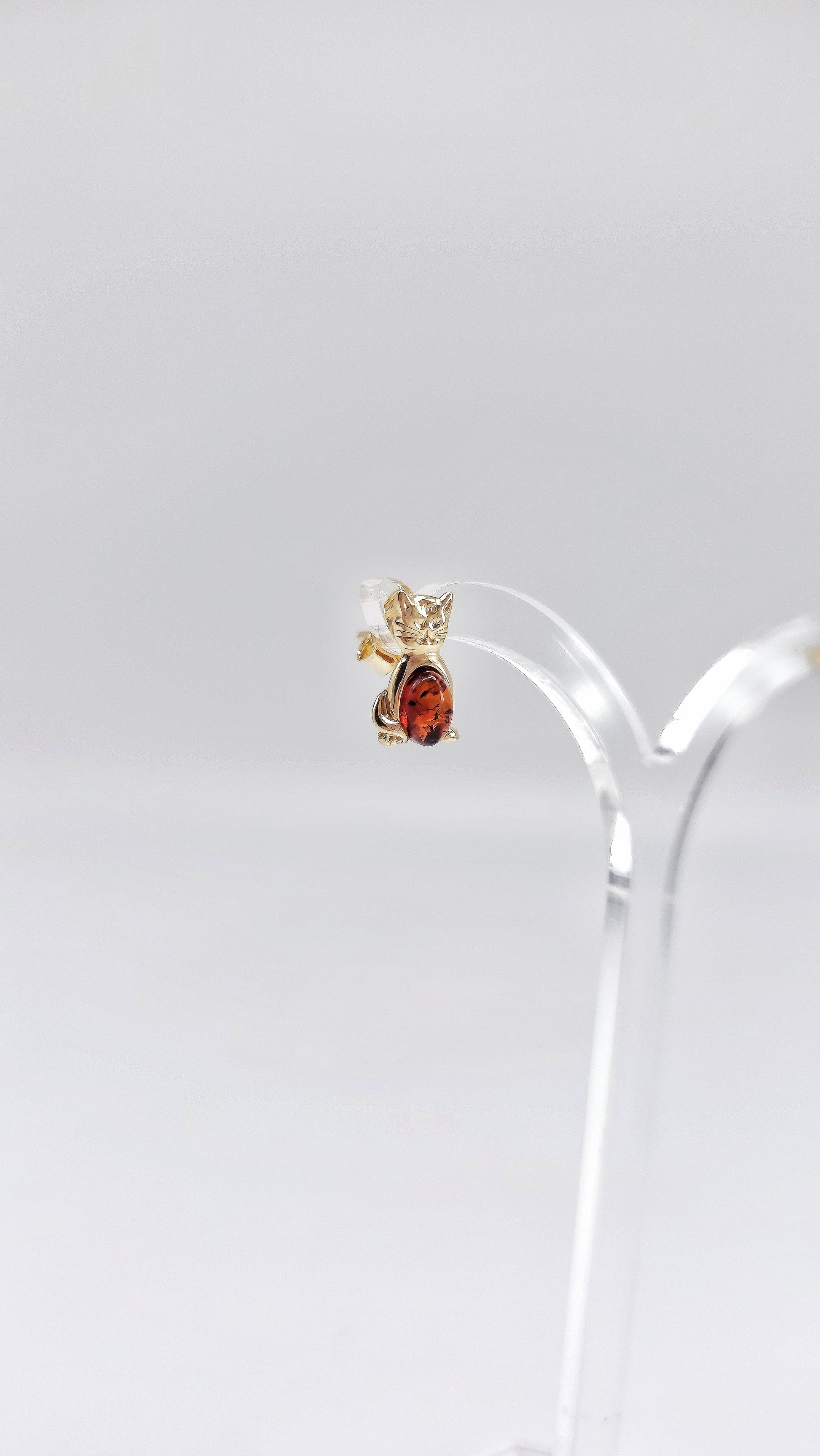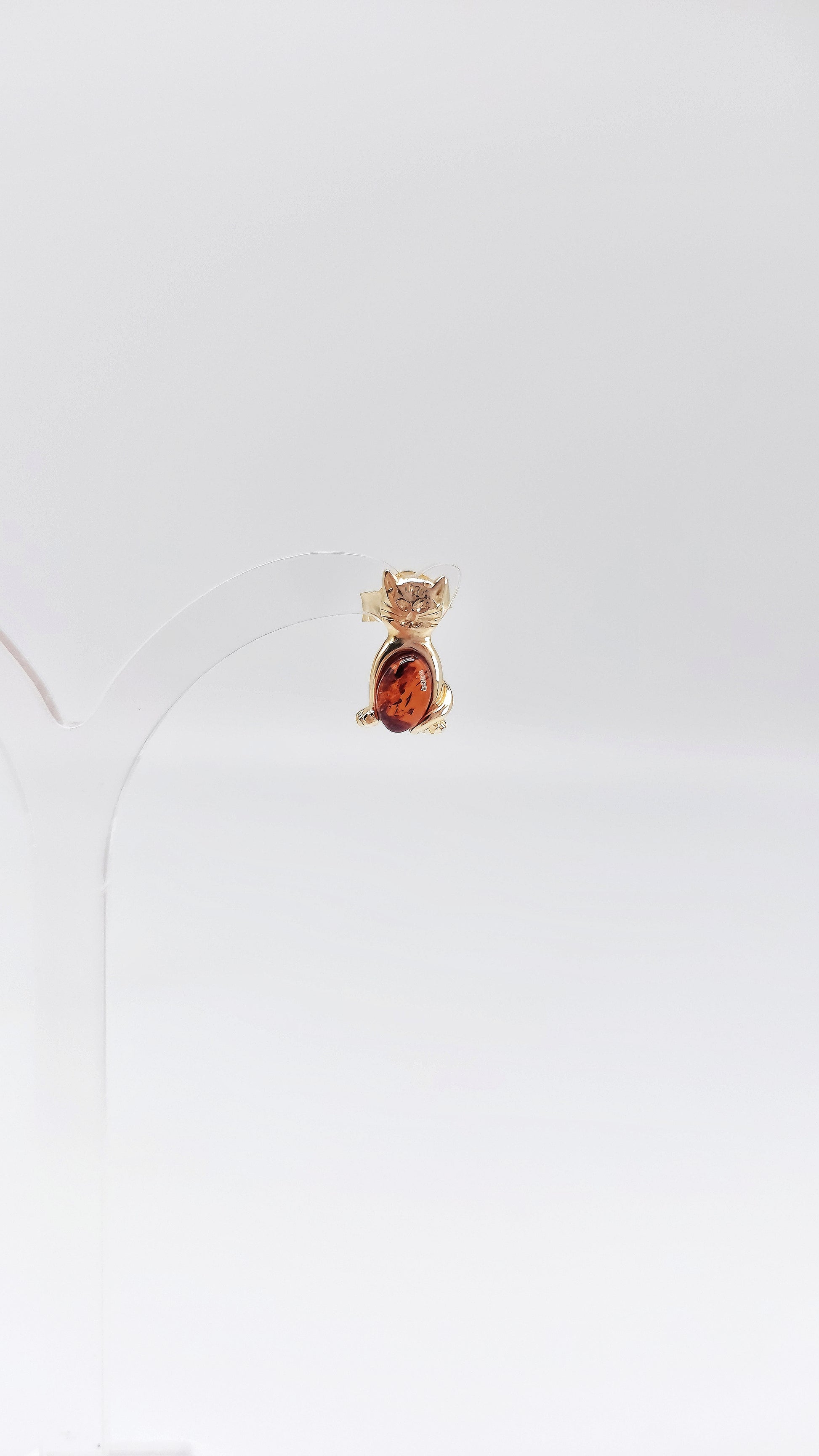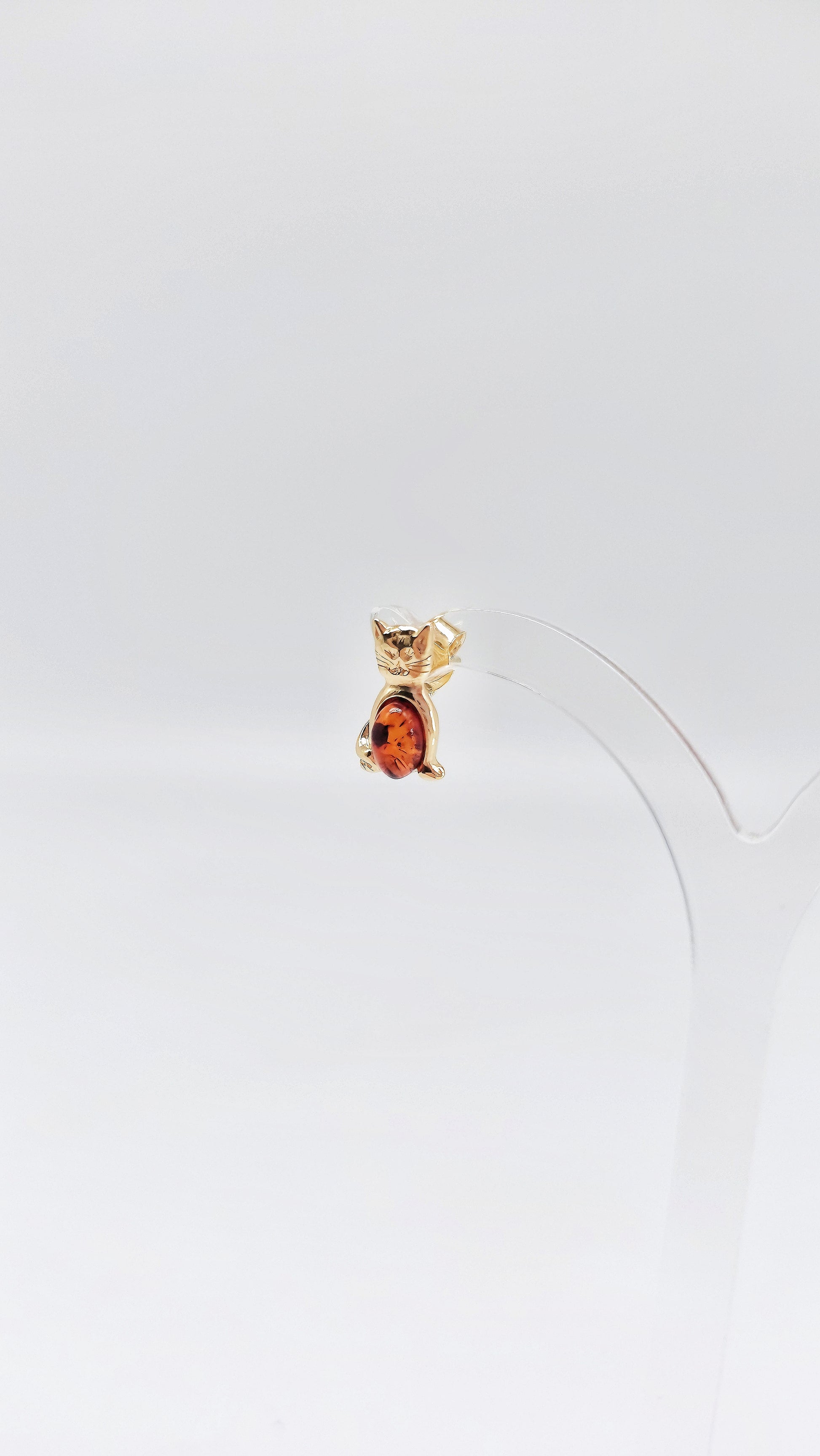 These exceptional cat-shaped amber earrings made of gold-plated 925 sterling silver are a must-have for anyone who appreciates something special. The warm, honey-colored amber forms the body of the little cat, while the gold details add a sophisticated touch to the earrings.