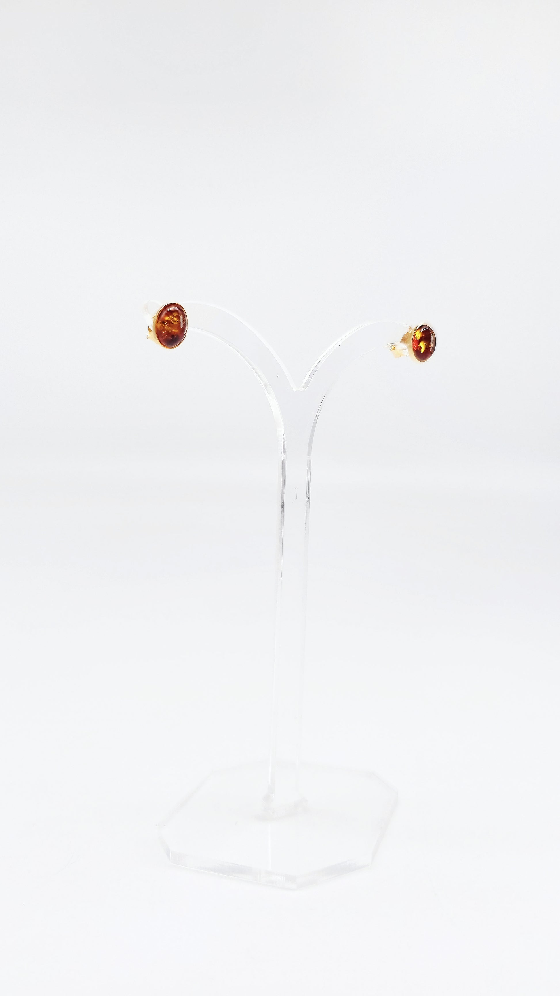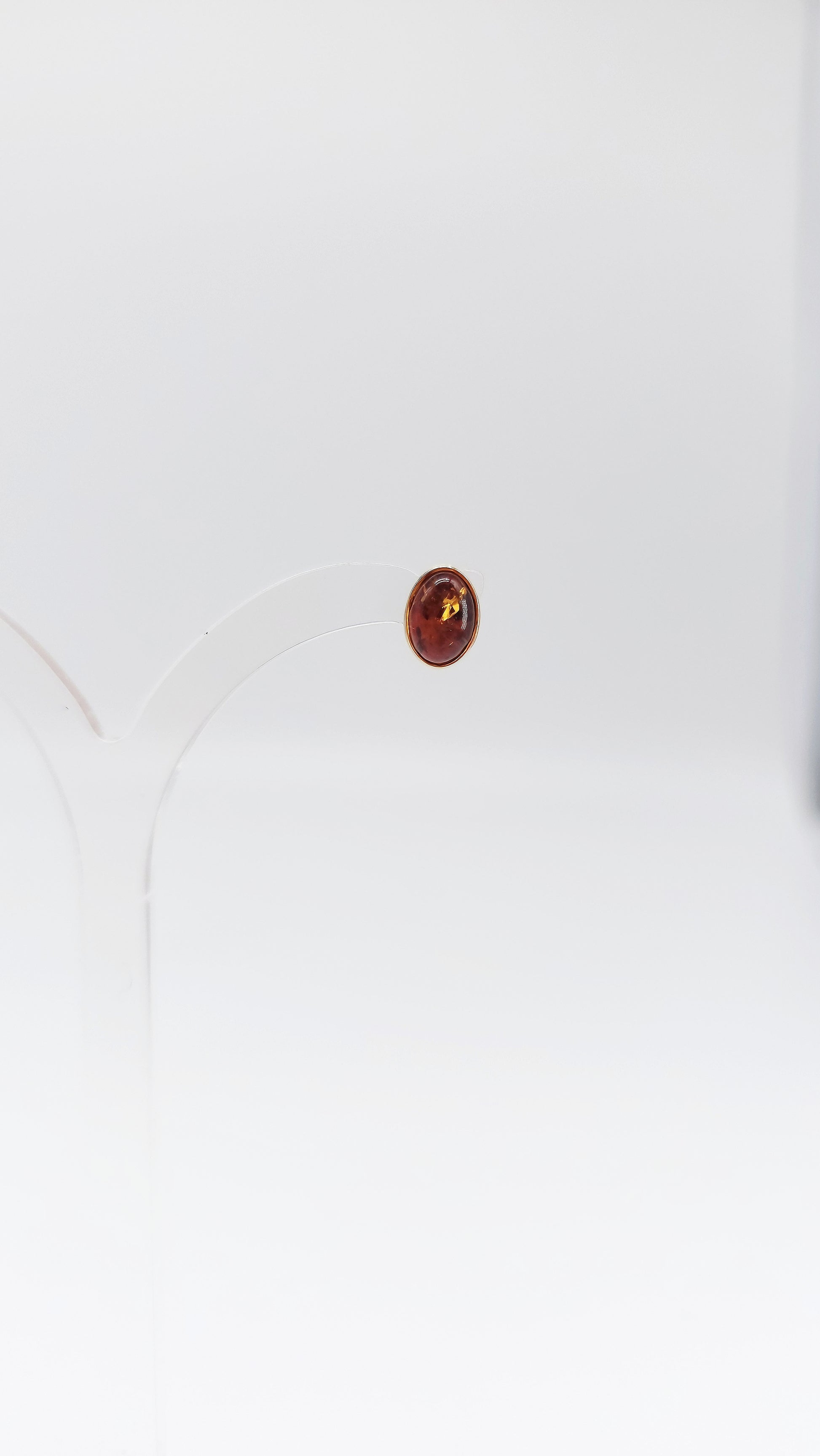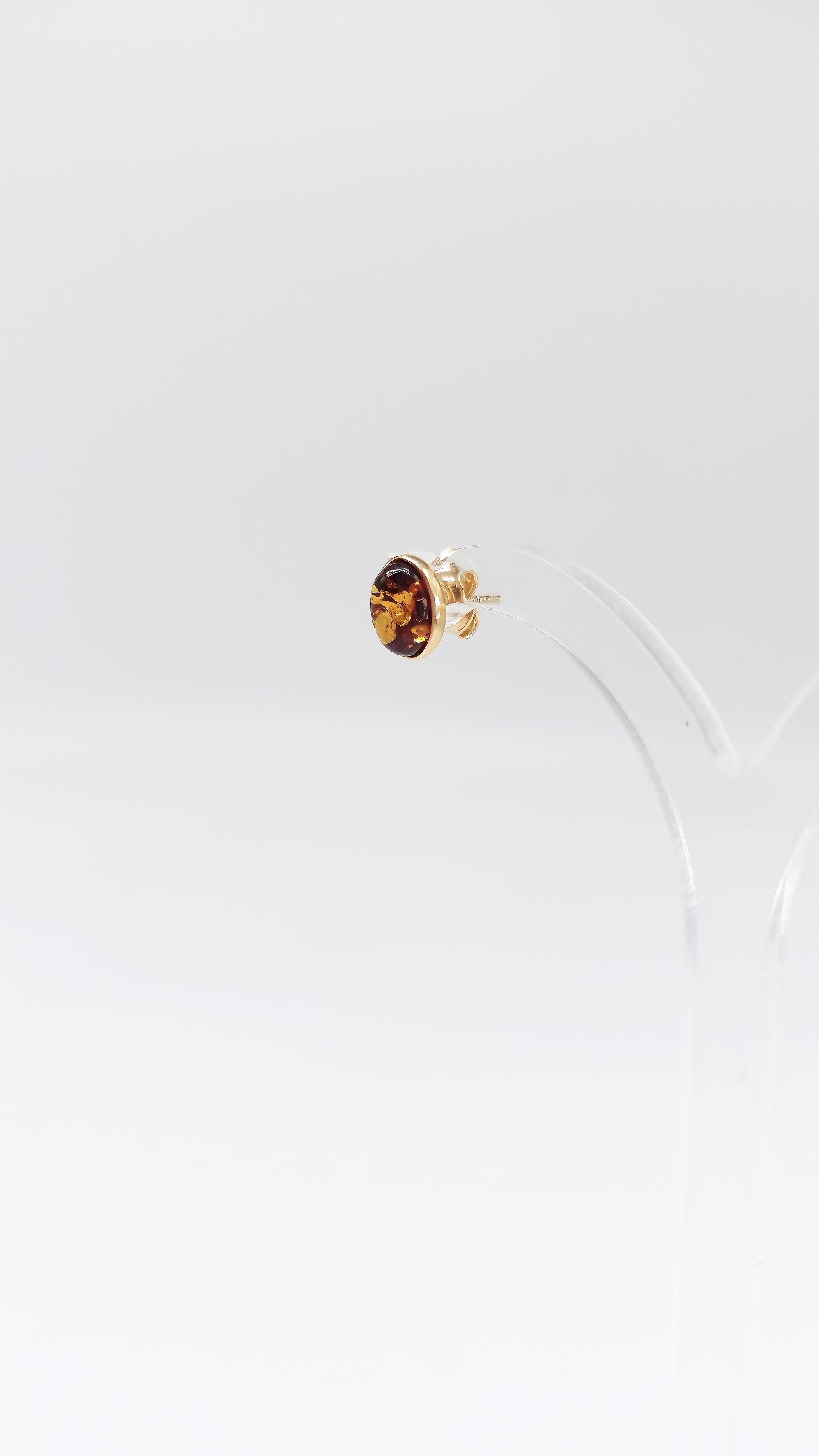 These simple and elegant stud earrings made of gold-plated 925 sterling silver with genuine amber are a timeless accessory that will never go out of style. The warm, honey-colored amber lends the earrings a natural radiance, perfectly enhanced by the subtle gold setting.