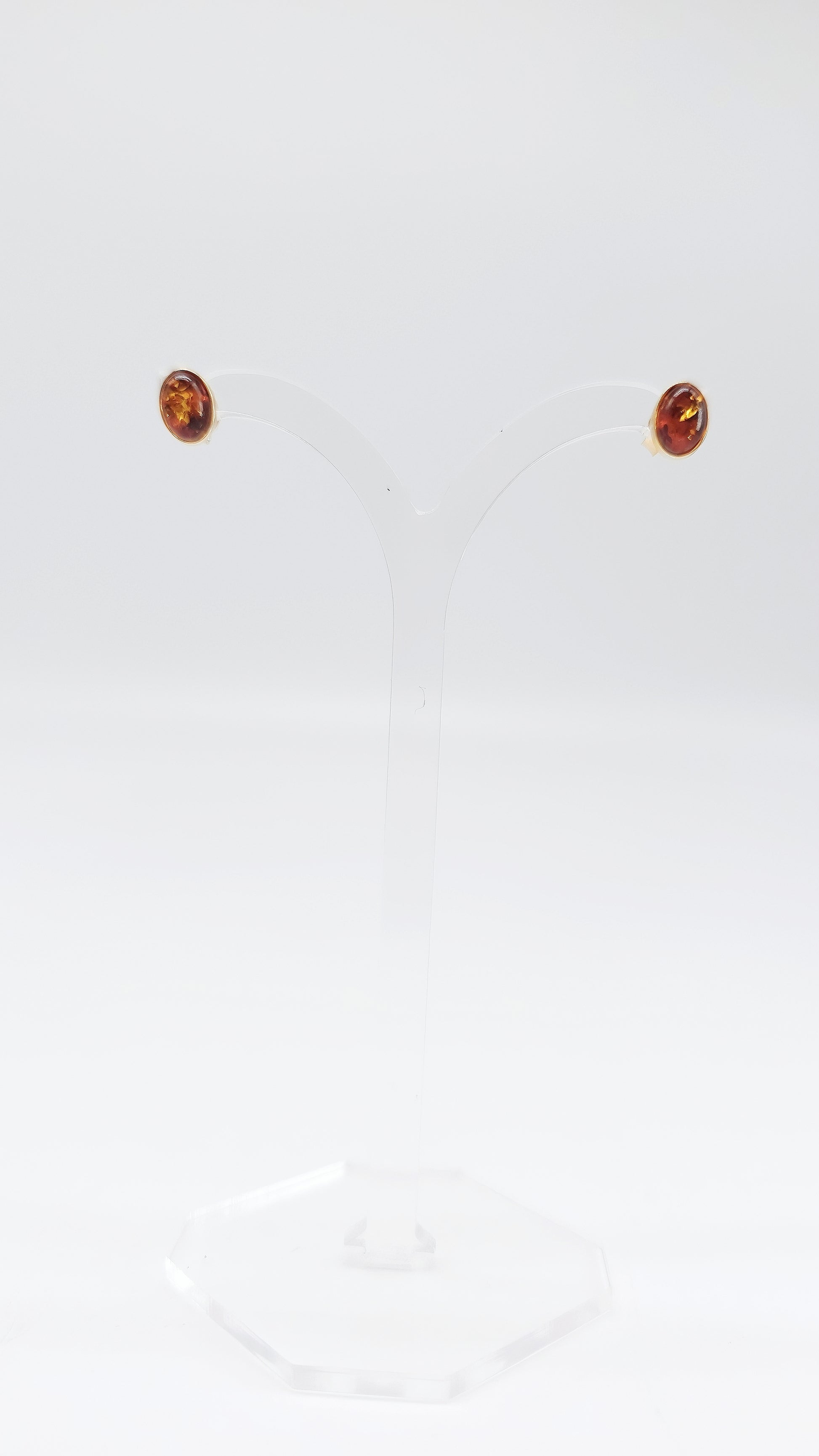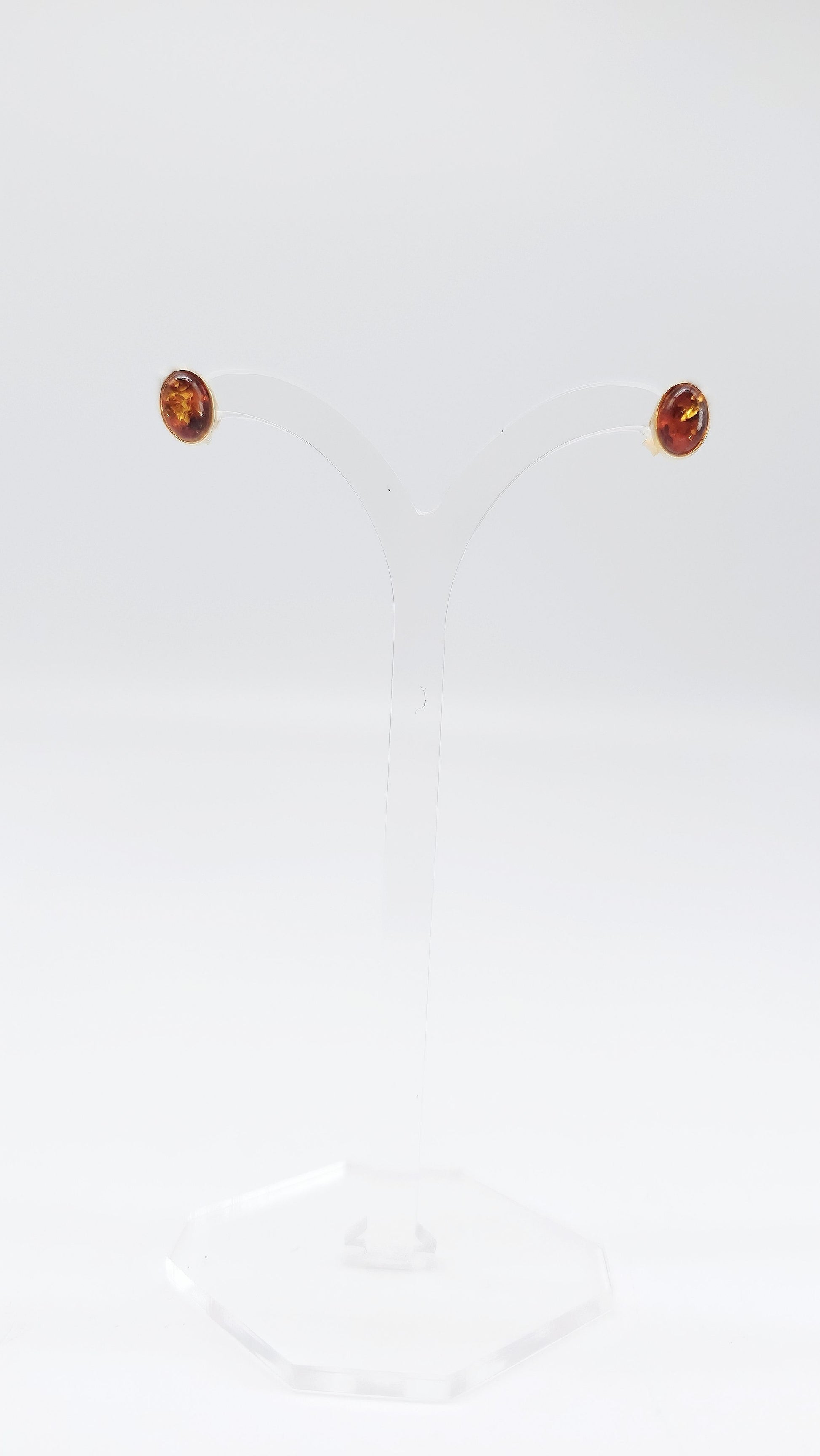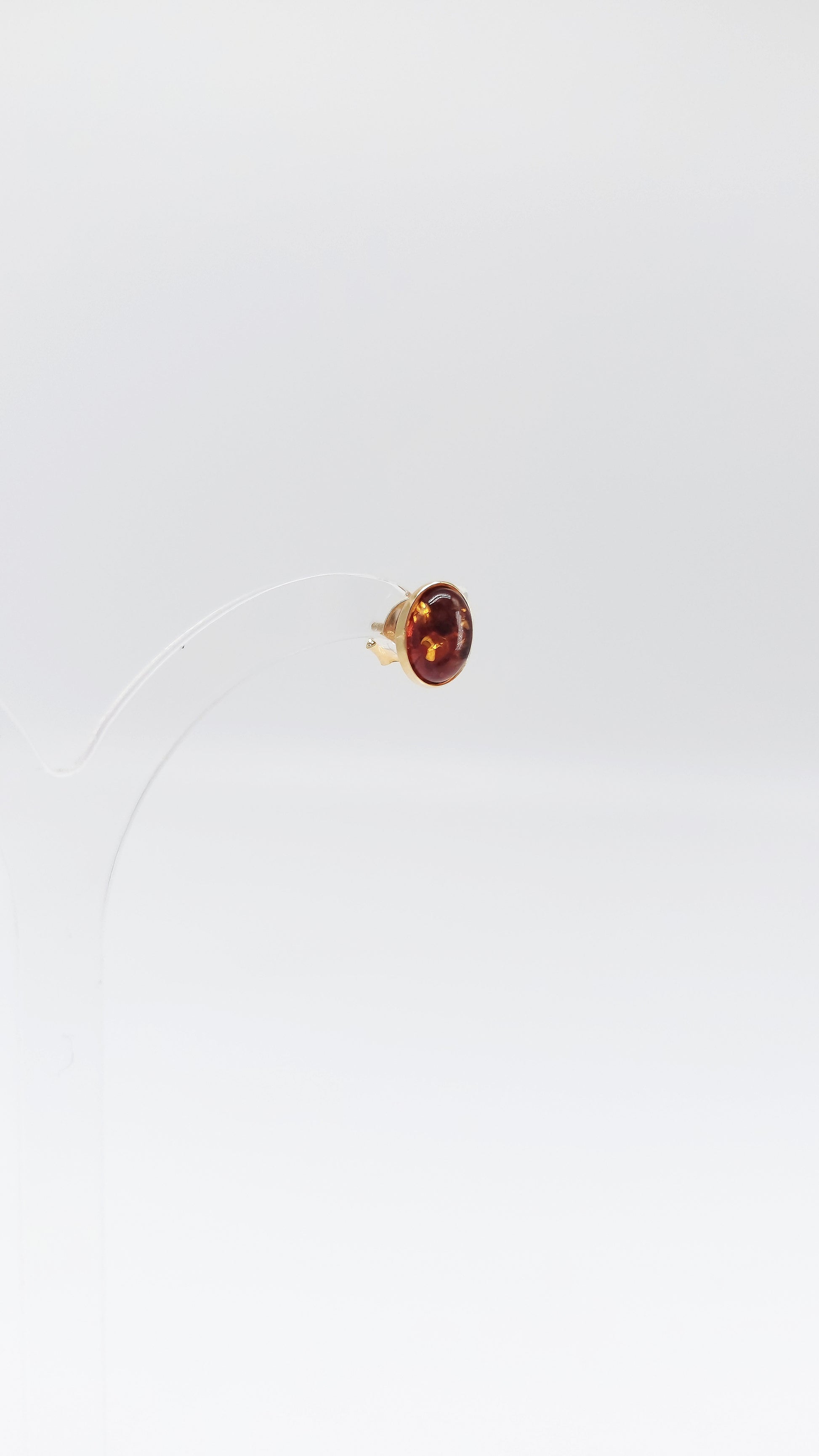 These simple and elegant stud earrings made of gold-plated 925 sterling silver with genuine amber are a timeless accessory that will never go out of style. The warm, honey-colored amber lends the earrings a natural radiance, perfectly enhanced by the subtle gold setting.