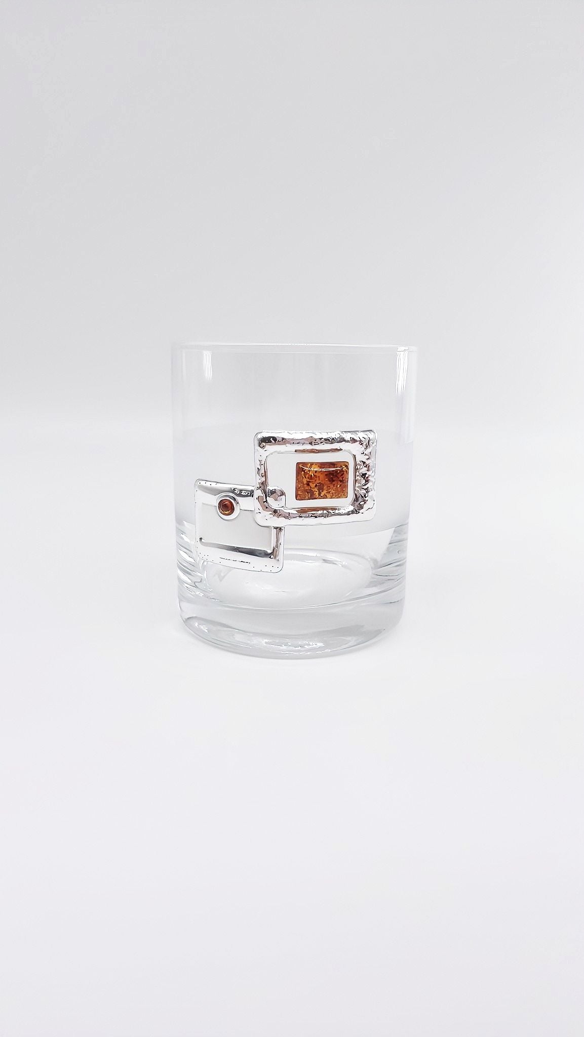 This luxurious drinking glass combines sophisticated design with natural elements. The artistic decoration of genuine amber and 925 sterling silver makes each glass a unique, handcrafted piece . Perfect for whiskey, cocktails, or fine drinks—this glass is not only a functional drinking vessel but also a stylish collector's item .