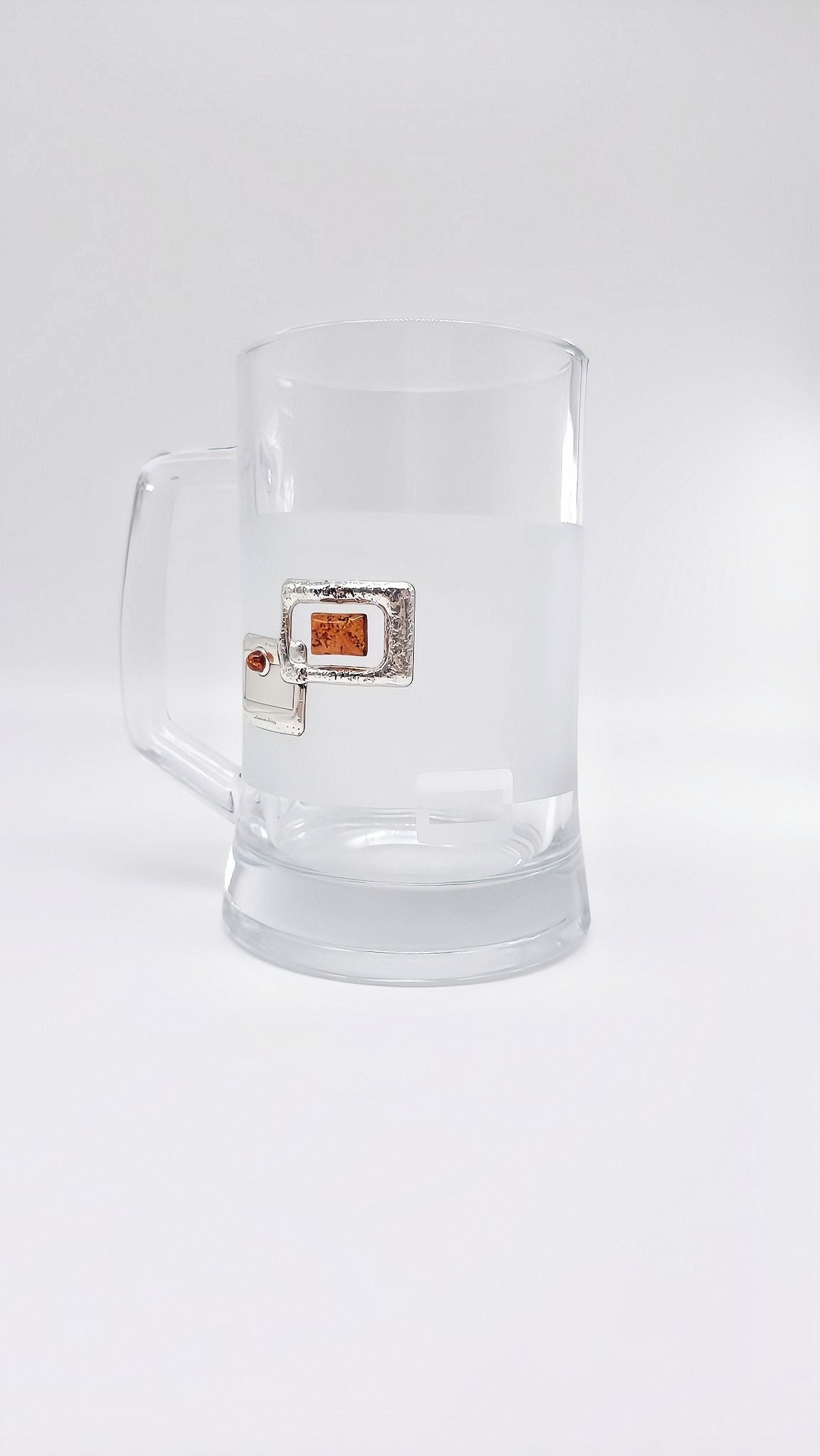 This exclusive beer stein combines tradition with luxurious design. Crafted from high-quality glass, adorned with genuine 925 sterling silver and luminous amber, every drink becomes a special experience. The warm hue of the amber and the cool elegance of the silver create a unique combination that is not only practical but also aesthetically pleasing.