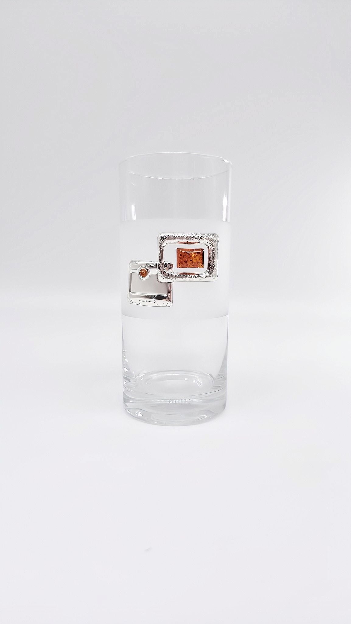 This exclusive drinking glass combines functionality with luxurious design. The combination of 925 sterling silver and genuine amber gives the glass a warm, timeless appeal. The minimalist design emphasizes the beauty of the materials and makes this glass a true eye-catcher on any table setting.