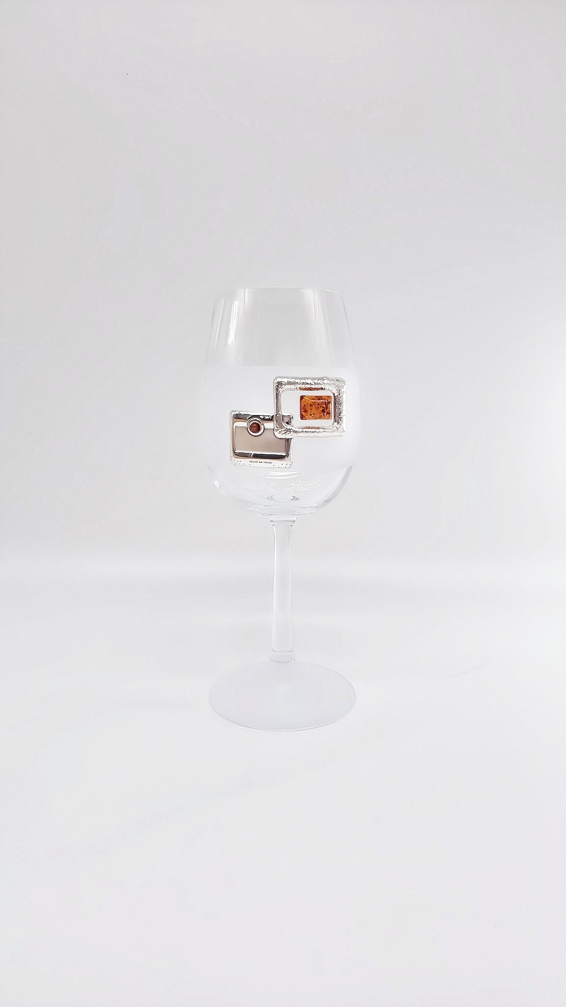Elegant white wine glass with silver and amber