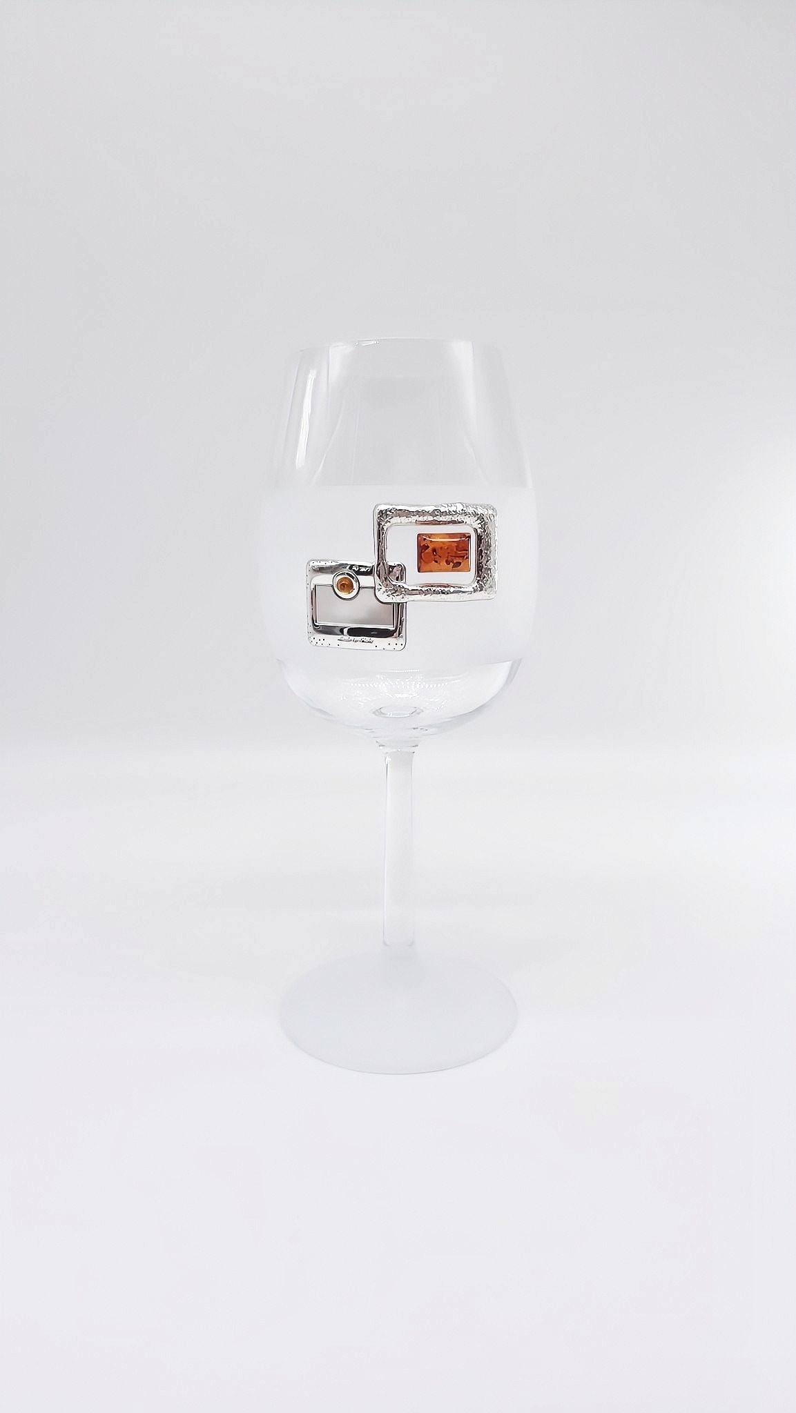 Elegant red wine glass with silver and amber