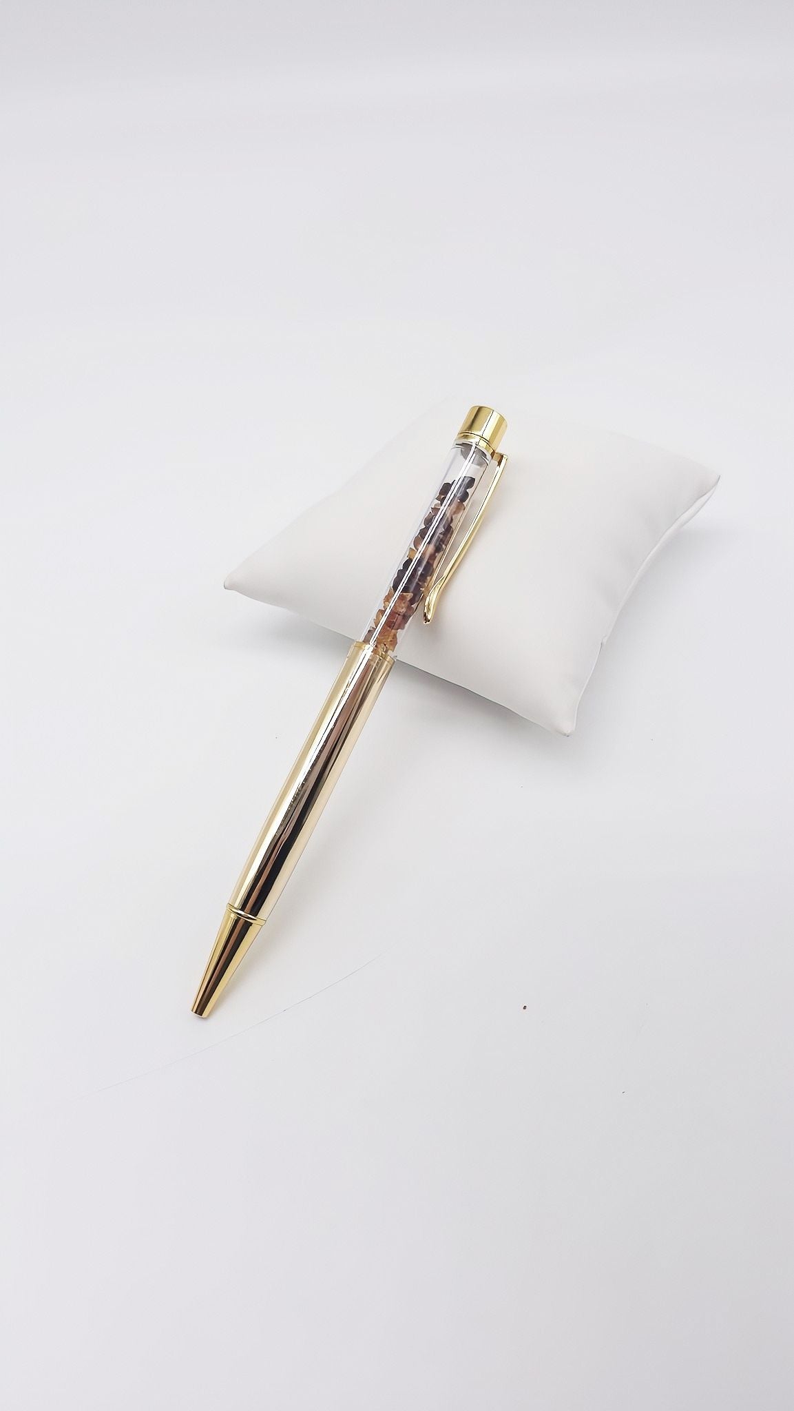 This stylish ballpoint pen combines the natural beauty of genuine amber with elegant gold accents. The shimmering amber inclusions make the pen a luxurious accessory that perfectly combines elegance and functionality. An ideal gift for business partners, colleagues, or lovers of exclusive writing instruments. This pen brings a touch of luxury to every writing moment—a timeless piece for special occasions.