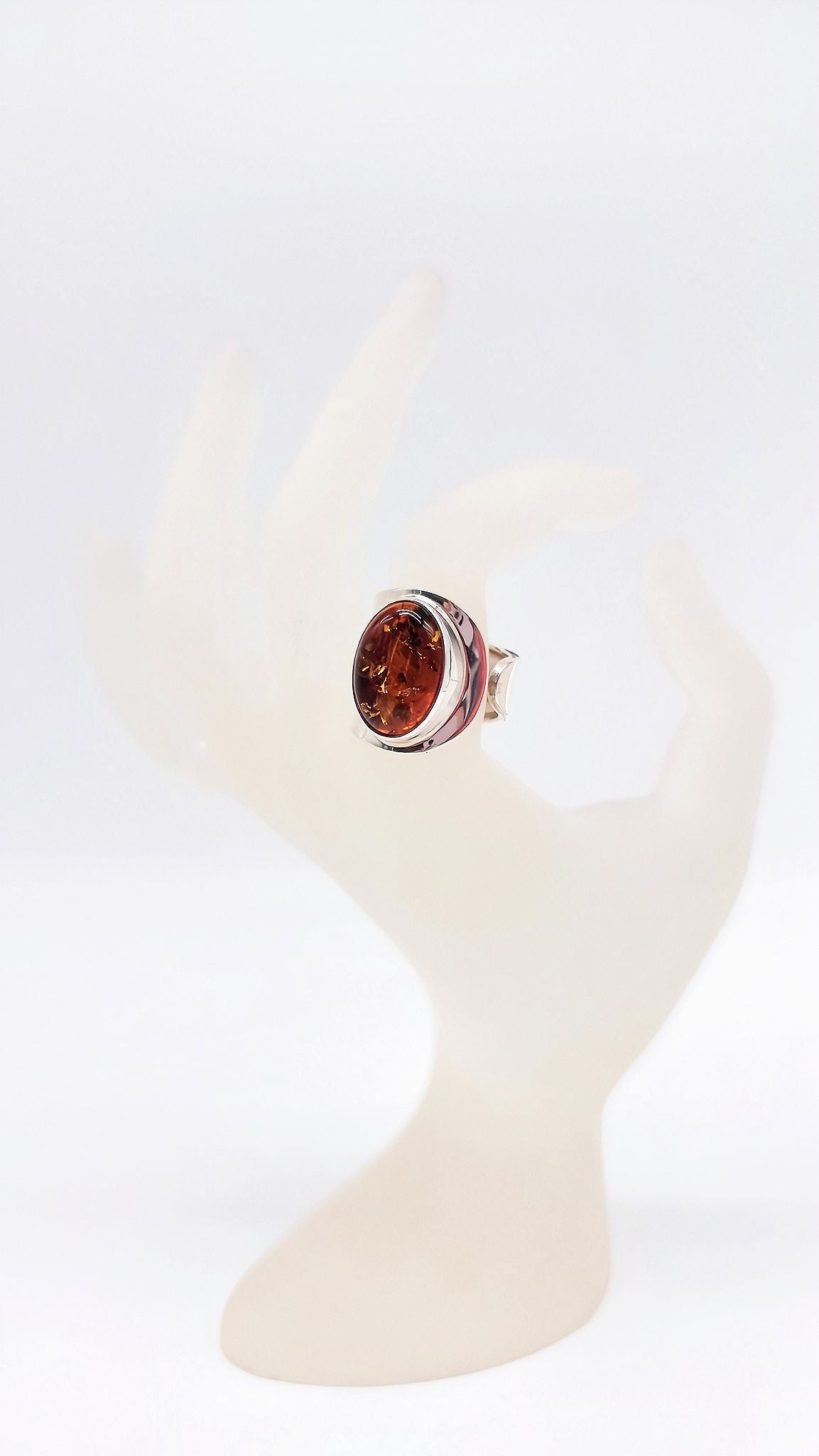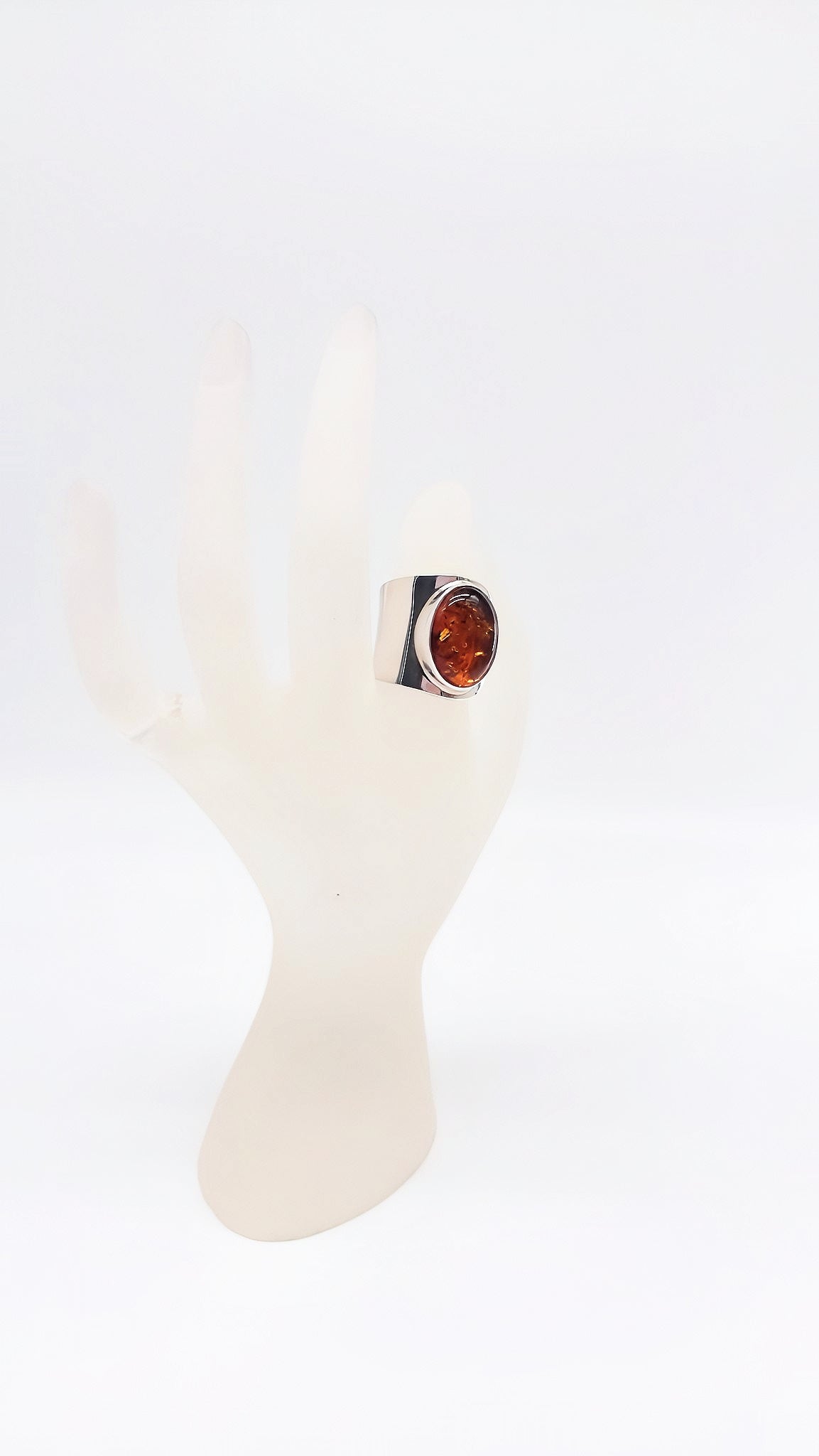 This unique 925 sterling silver ring combines classic elegance with the natural beauty of genuine amber. The orange stone, perfectly set, is a true eye-catcher and lends the piece a warm radiance. Each ring is unique and makes an excellent gift for special occasions or as a personal accessory. Whether for everyday wear or special occasions, this ring exudes timeless beauty and underlines the wearer's individual style.