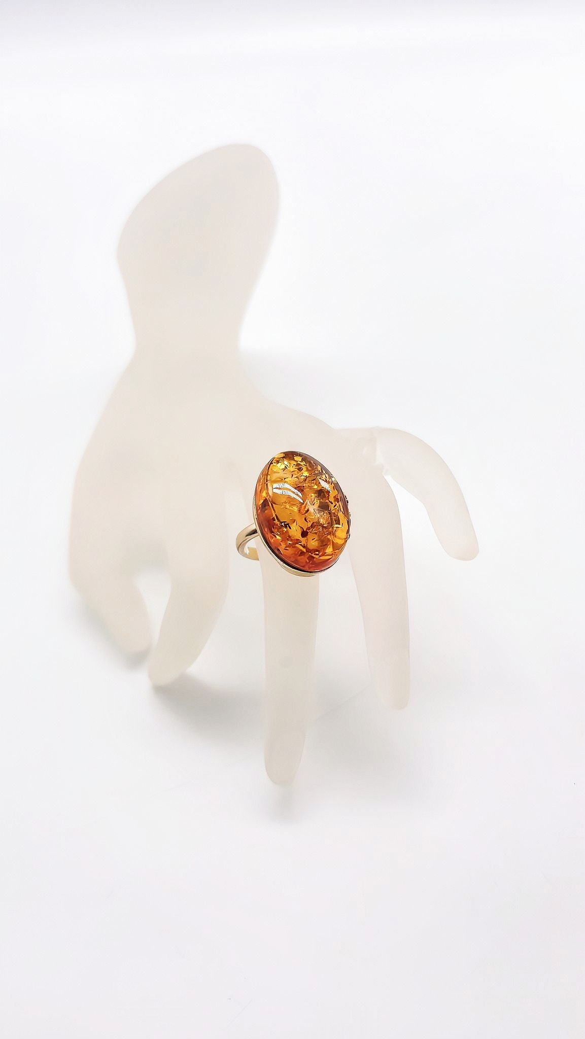 - Stone: Oval amber with natural inclusions