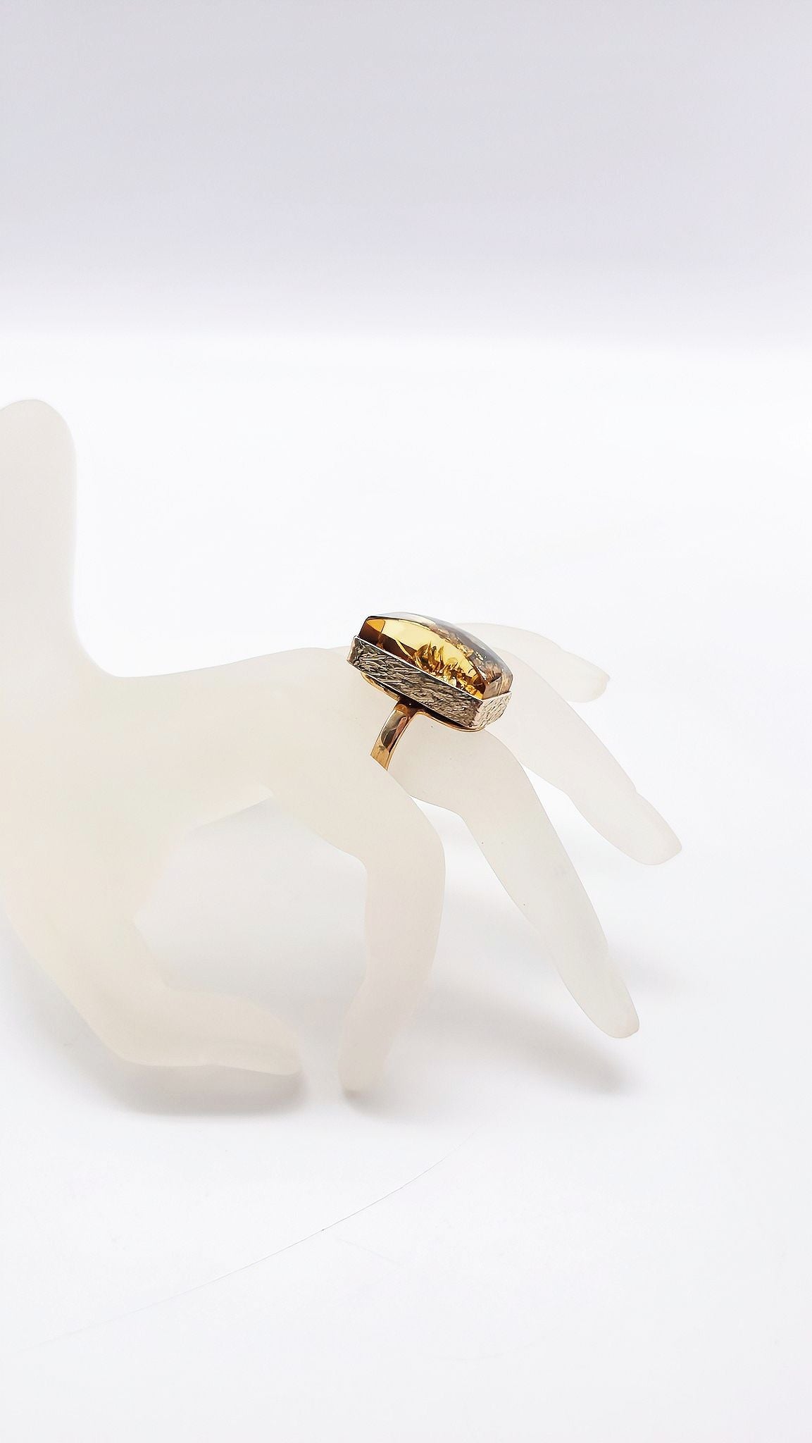 This unique ring, crafted from gold-plated 925 sterling silver, features a fascinating, genuine amber stone that captivates with its natural luminosity and warmth. The adjustable ring band makes it particularly flexible and comfortable to wear—perfect for any finger. This ring is not just a fashionable accessory, but a statement piece that combines elegance with a connection to nature.