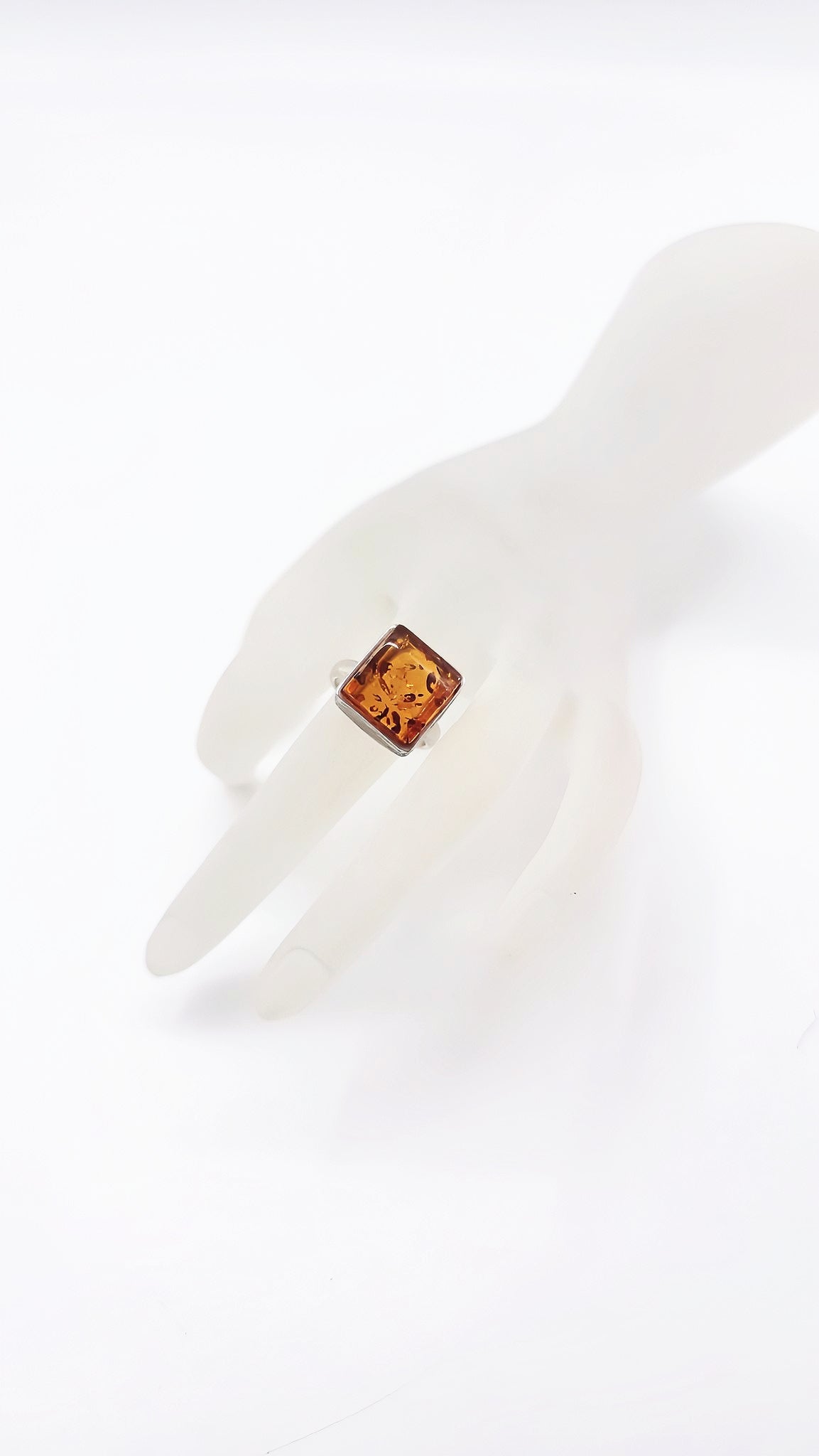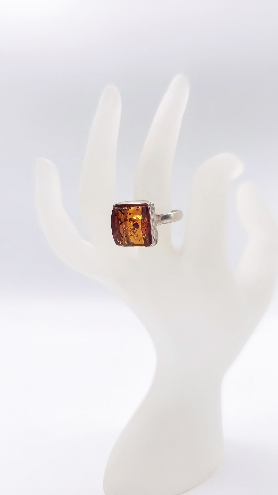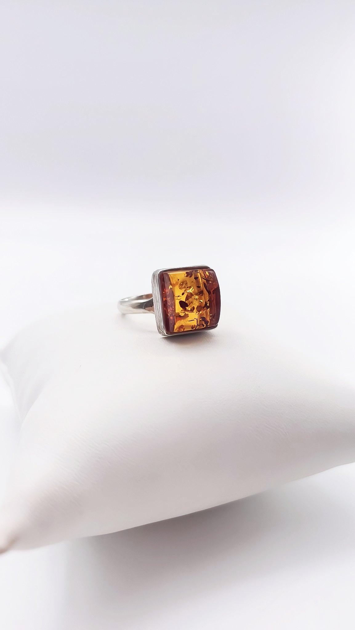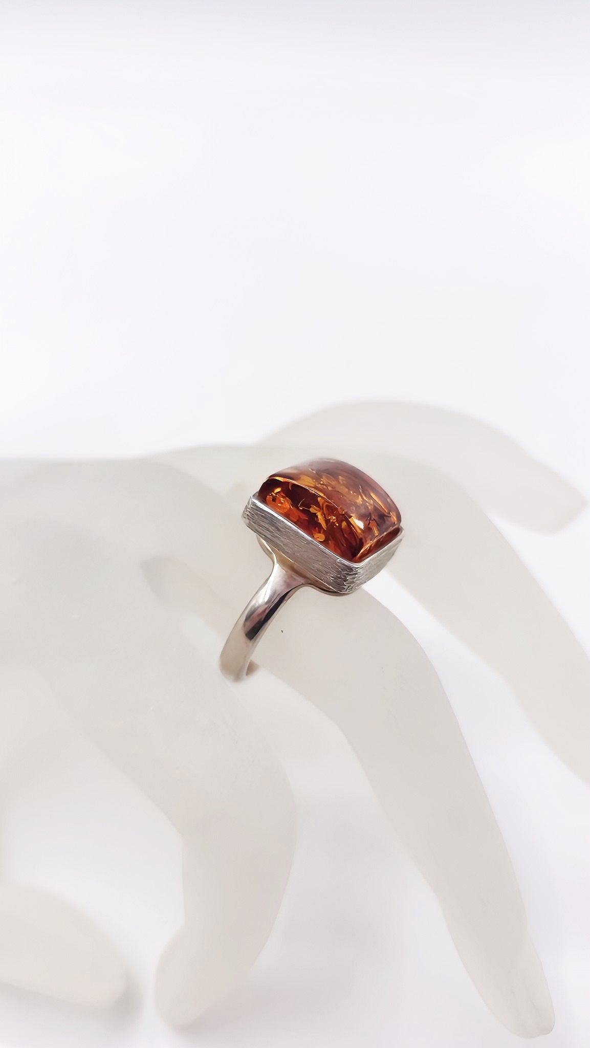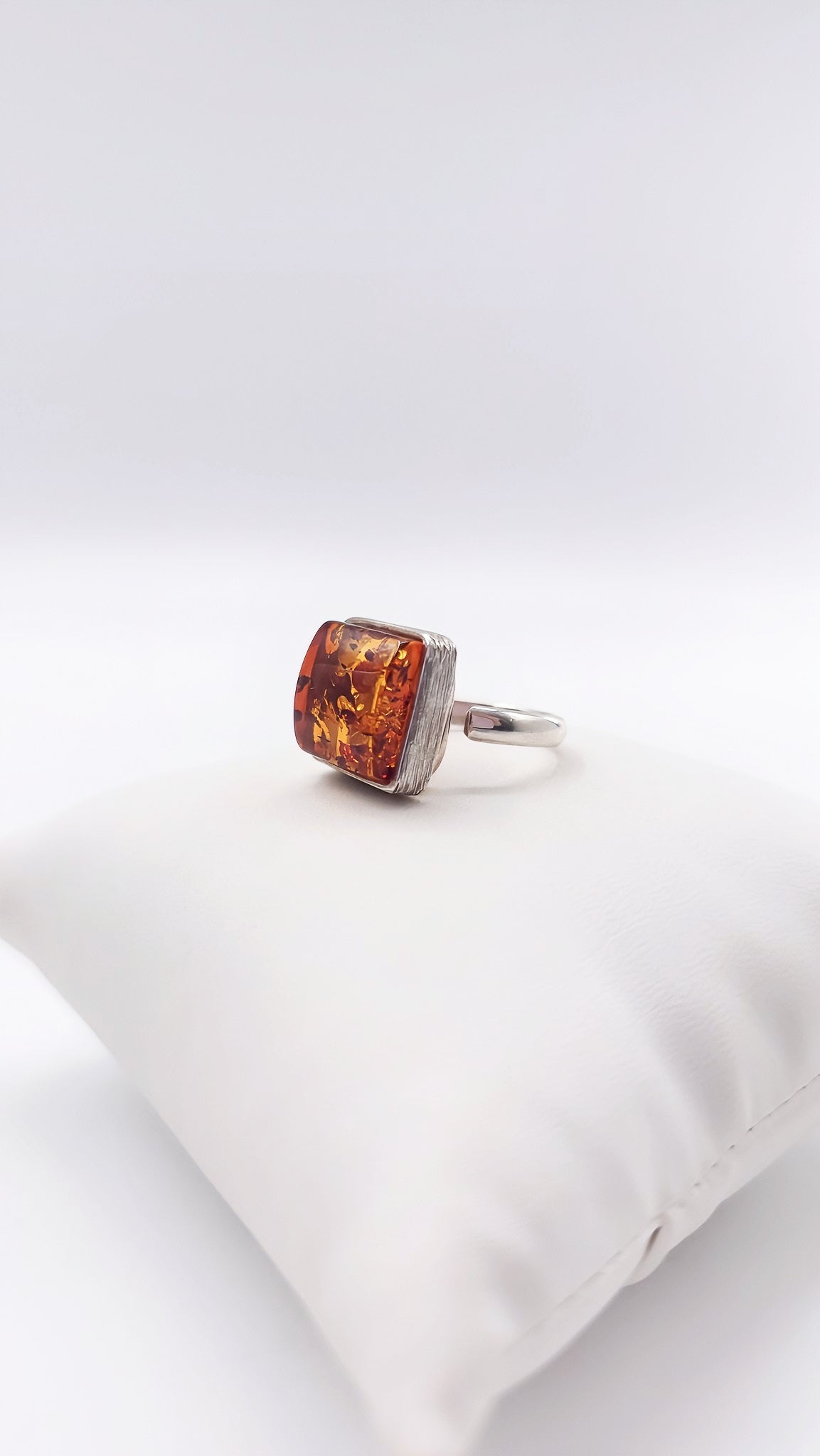 This elegant ring combines the beauty of genuine amber with delicate silver embellishments. Crafted from high-quality 925 sterling silver, it's not only eye-catching but also practical: Its adjustable design ensures a perfect fit on every finger. The natural amber shimmers in warm golden tones and is framed by artistic engravings on the ring band. This handcrafted, unique piece is a symbol of timeless elegance and natural beauty.