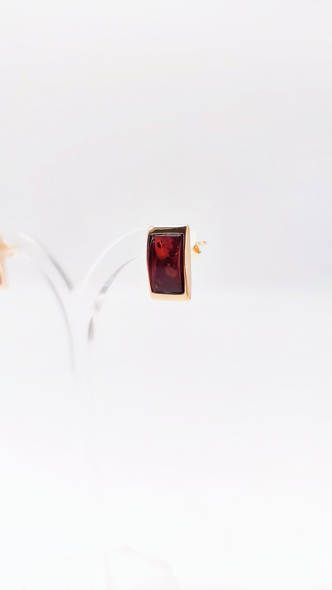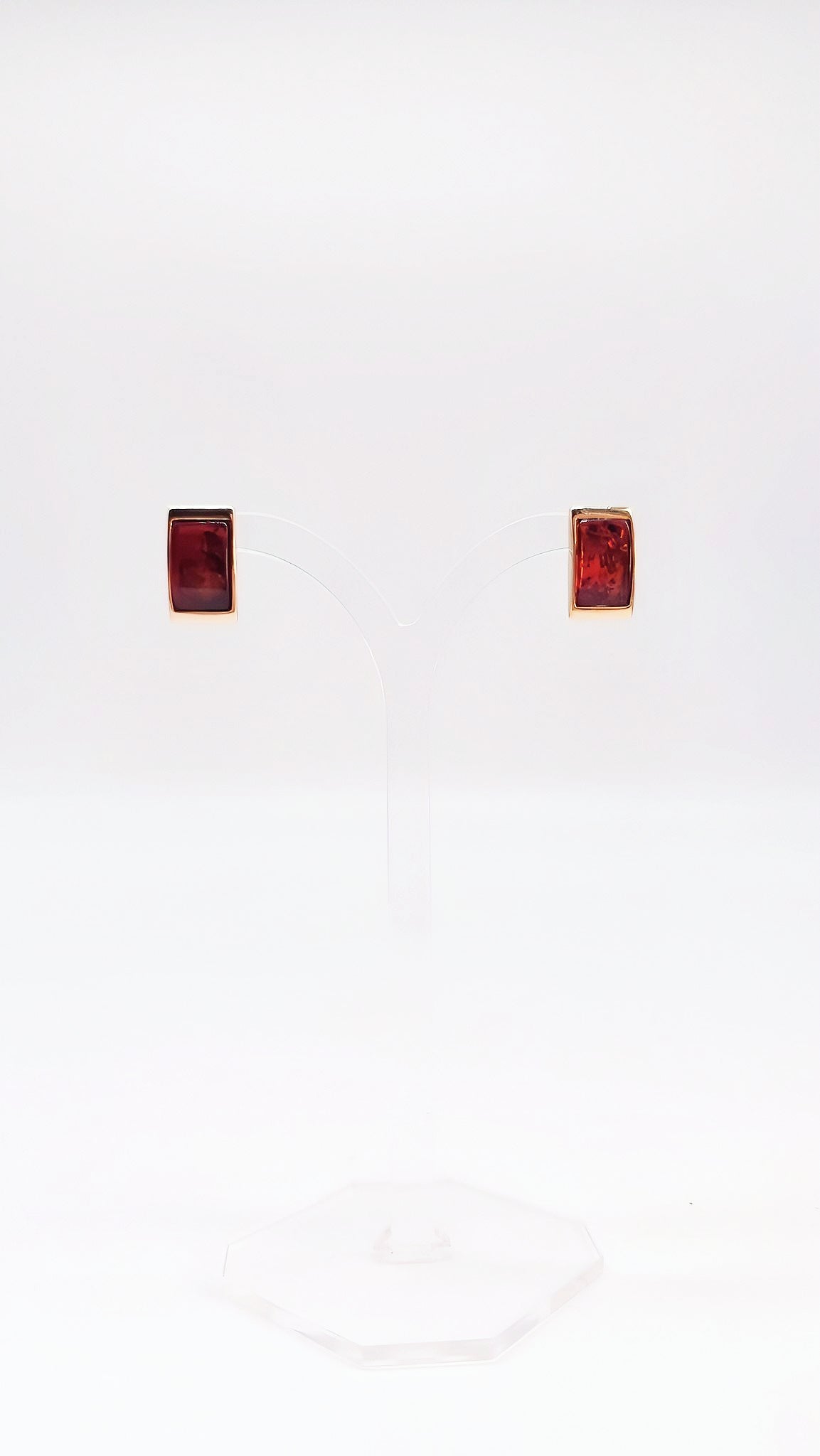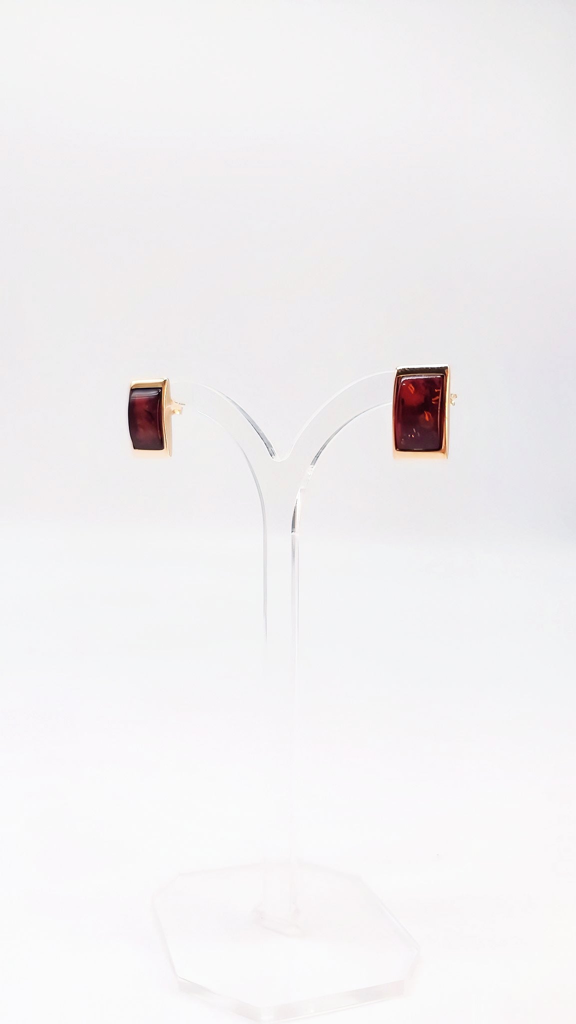 These elegant stud earrings made of gold-plated 925 sterling silver with a rectangular amber stone add a touch of sophistication to any outfit. The warm orange amber shimmers in a luxurious gold frame, perfectly complementing the modern design. This piece of jewelry is ideal for women who appreciate timeless style and high-quality materials. Perfect as a gift for special occasions such as birthdays and anniversaries, or as an elegant addition to your jewelry collection.