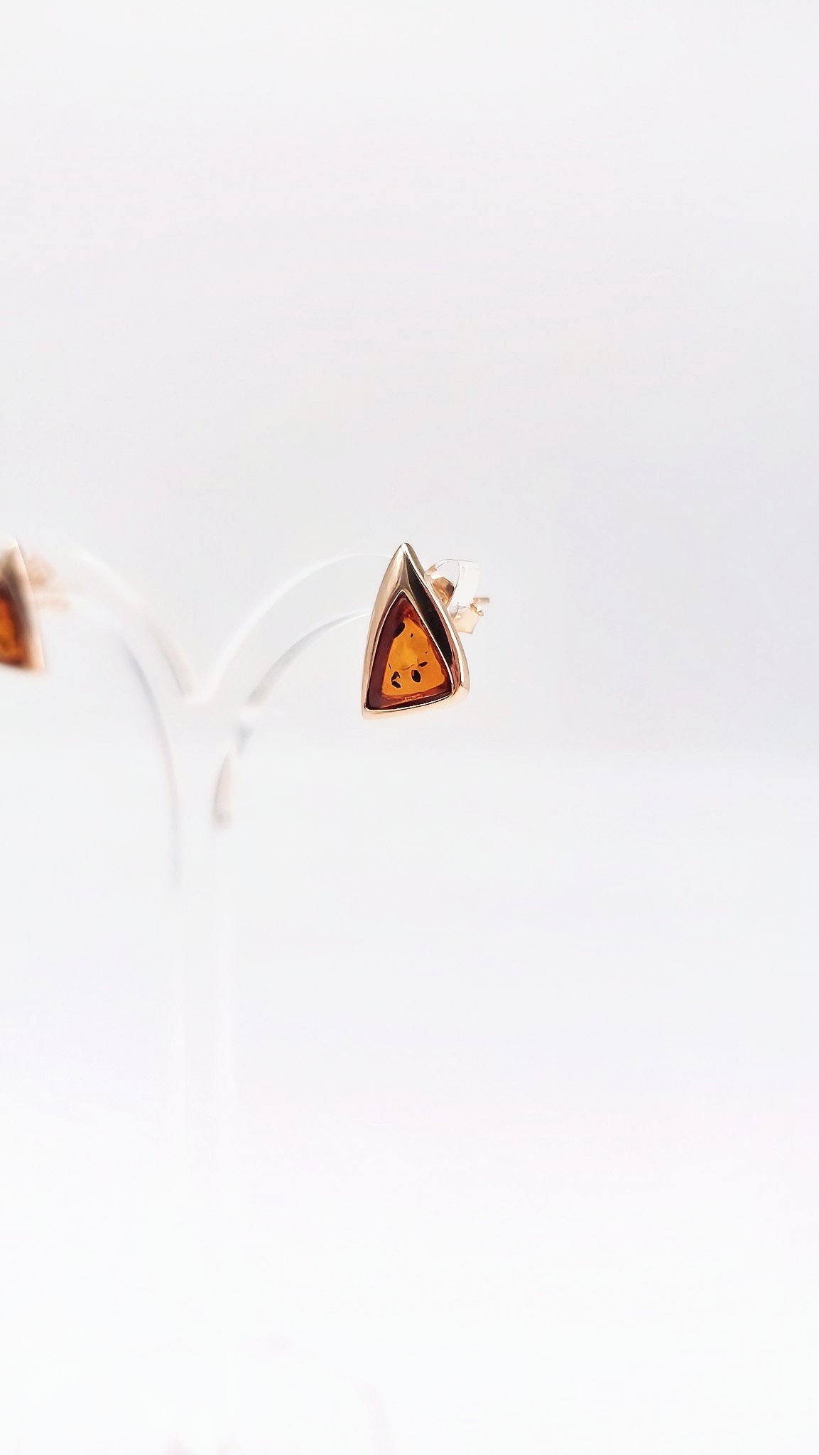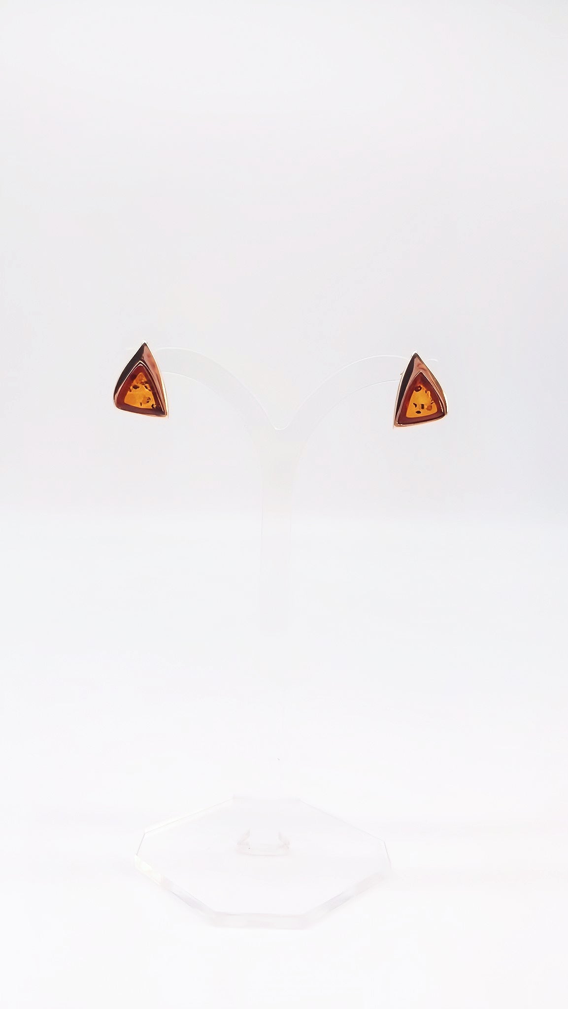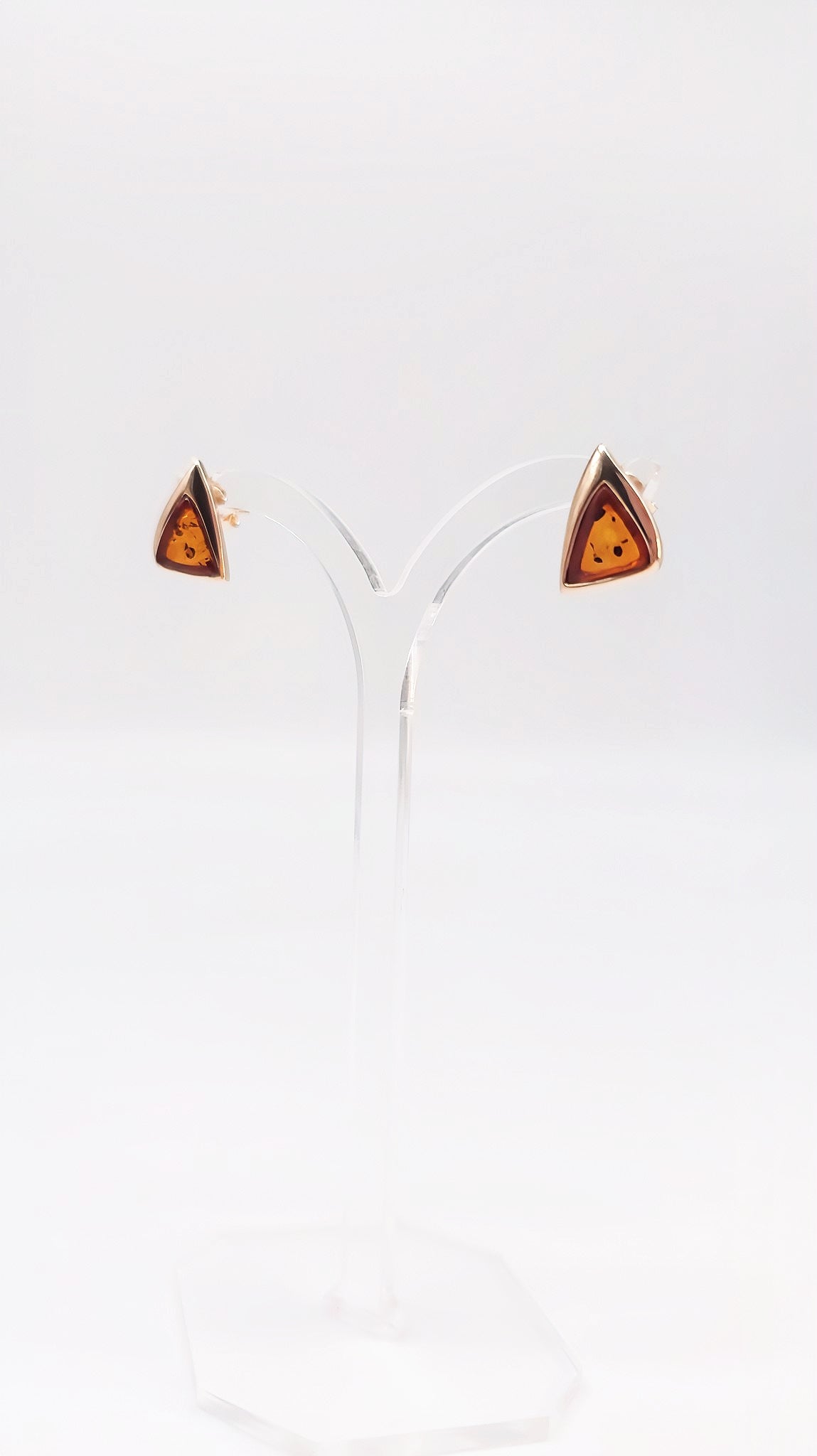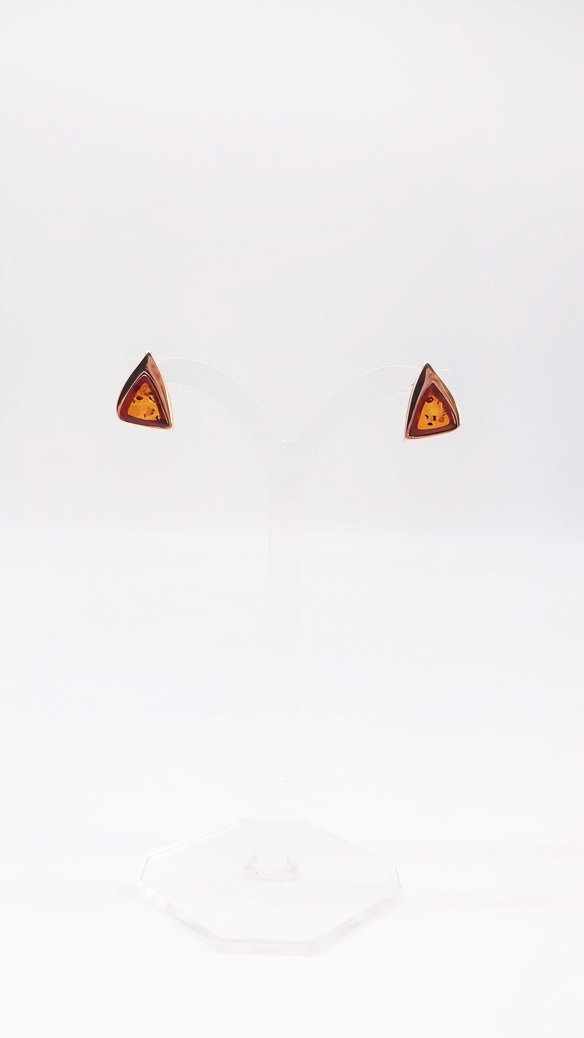 Orange amber stud earrings – triangular design
