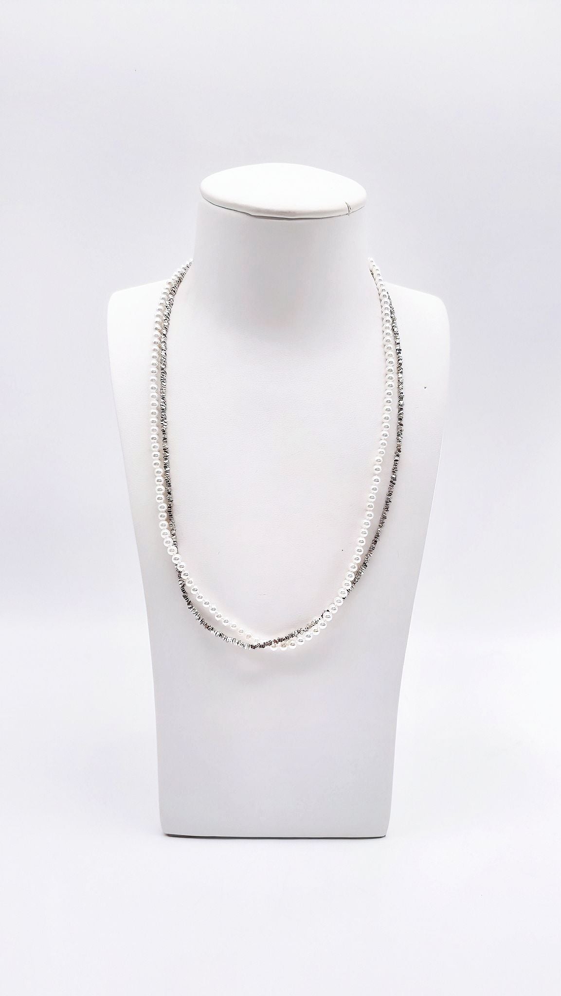 This luxurious necklace combines timeless elegance with exquisite craftsmanship. It consists of two delicate strands crafted from genuine freshwater cultured pearls and 925 sterling silver elements. The combination of shimmering pearls and lustrous silver makes this piece a special highlight for elegant looks. This exquisite necklace is ideal for women who appreciate classic elegance and high-quality materials. It's perfect as a gift for special occasions such as weddings, anniversaries, or birthdays. A true statement for style-conscious jewelry lovers!